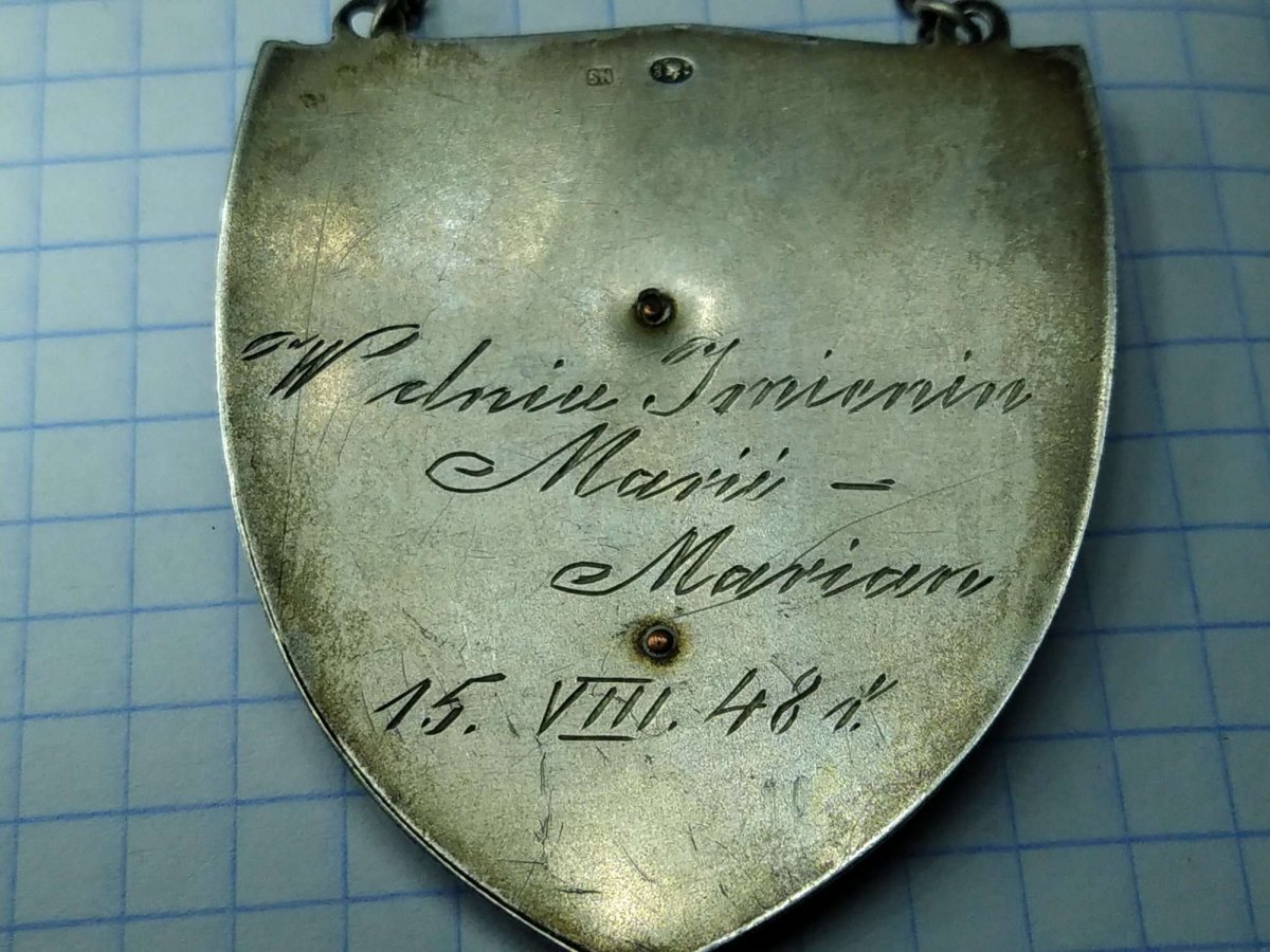 Я польский не знаю, но прочитать смог. Написано "В день именин Марии-Мариан". Год 48-й, но какого века 20 или 19?