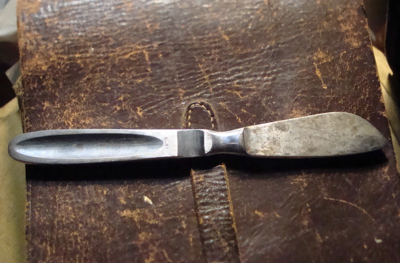 Скальпель ампутационный большой. Шел в брезентовом чехле. Попадается часто, в том числе, на слетах. Я когда-то такой купил в нулевом состоянии в чехле за 200 грн.