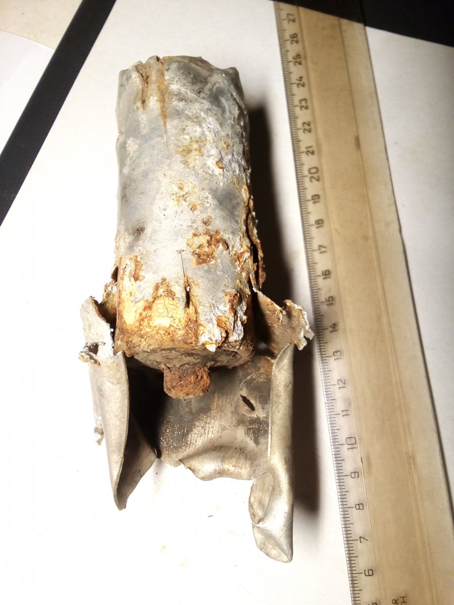 мне тоже увиделось в этом что-то реактивное, и нагар присутствует внутри тубуса. А то, что камрады назвали батарейкой, может быть контейнером для парашюта ? Давайте я его вскрою аккуратно, ничего не бабахнет?
