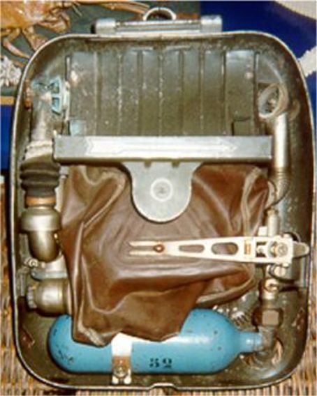 По поводу хрома я еще самом начале предпологал, что это медецина. Сходство с клапаном газмаски наталкивает на мысль что связано с дыханием ( мягкость пружины). Тем более найден на месте санбата. За пол дня нашел только похожую деталь. на фото обвел. Думаю что найденая деталь с этой оперы. Жду может кто-то точно определит. С Уважением.