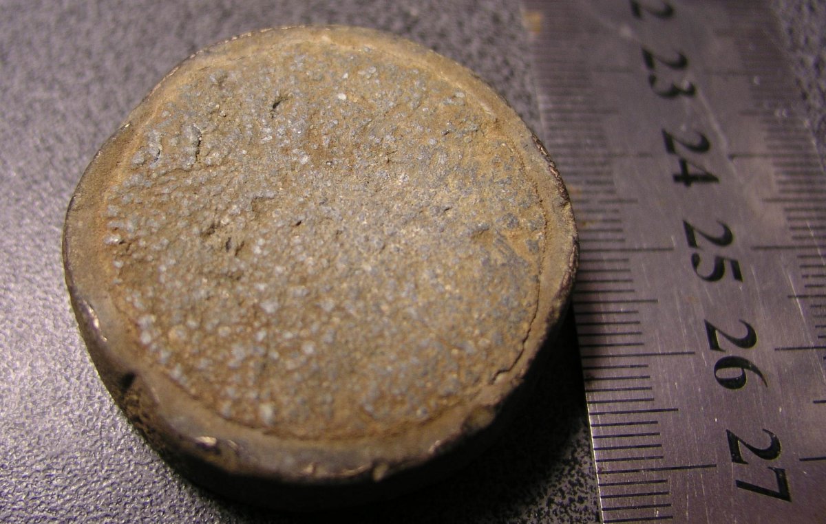 Ободок медь или латунь? Начинка свинец? Возможно игровая фишка, например для табулы.