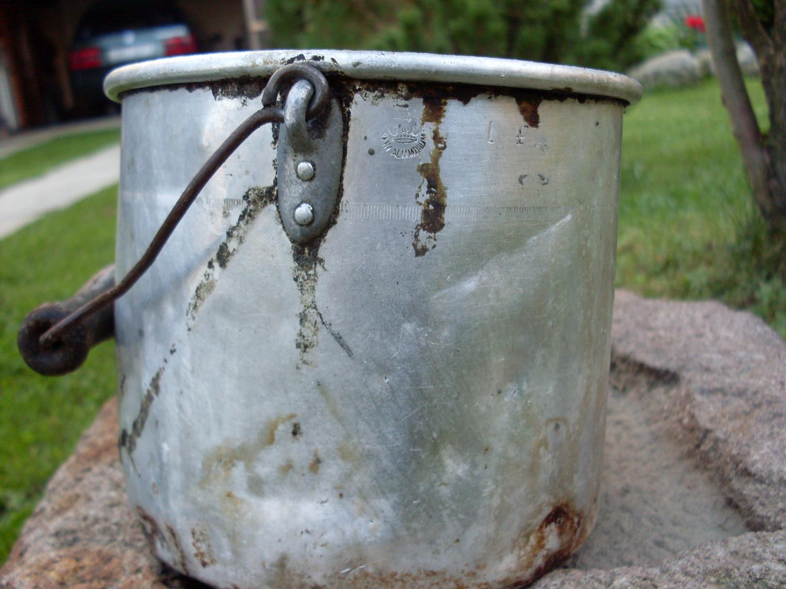 Помогите пожалуйста с определением предмета!Похож на котелок. Видна печать изготовителя Рейн аллюминиум и корона.Имеет ли он отношение к войсковому или обыкновенная бытовуха.Найден у соседей во дворе.Заранее благодарен.