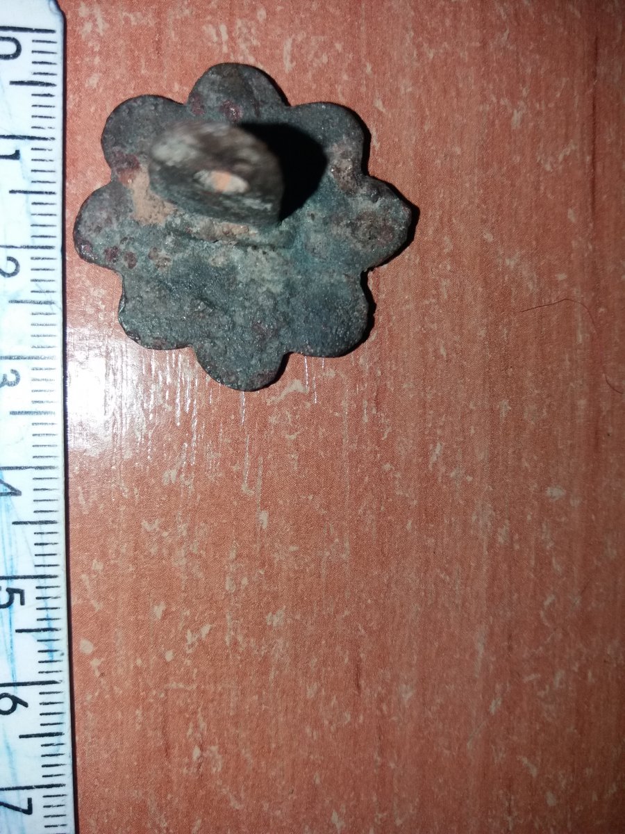 Не, не пуговица это........ с конской упряжи декор, вплоть до совка ими украшали.
