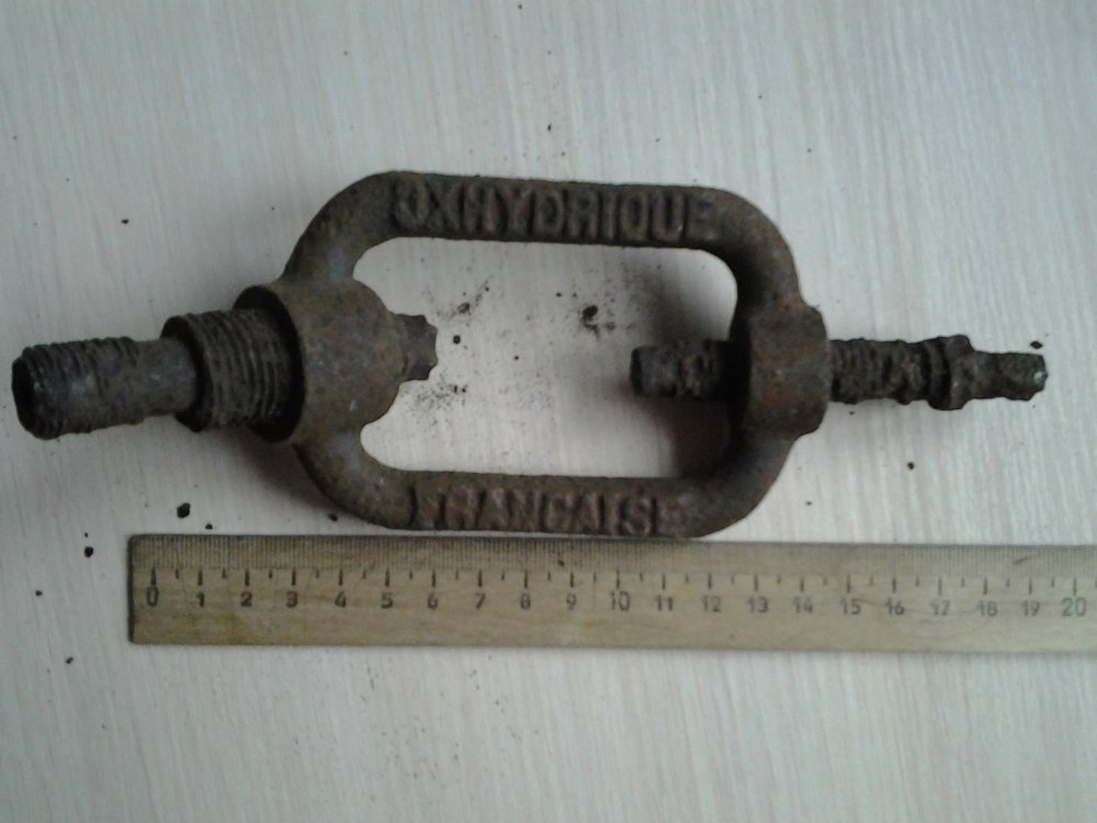 L"OXHYDRIQUE FRANCAISE SOC.- французская фирма, еще с начала прошлого века занимавшаяся разработкой и производством оборудования для газовой сварки и резки металлов с использованием водорода. В частности, ее специалистами в 1901 году была предложена методика смешивания водорода с кислородом непосредственно в газовой горелке: http://www.chestofbooks.com/crafts/metal/Welding-Cutting/Hydrogen-Welding.html Вот еще ее патент на способ и аппарат для получения водорода под давлением от 1927 года: http://www.google.com/patents/DE489932C?cl=en По найденной Вами железяке возник вопрос: а резьба большего диаметра слева и резьба меньшего диаметра справа на фото1 обе правые или одна из них правая, а другая левая? Честь имею!