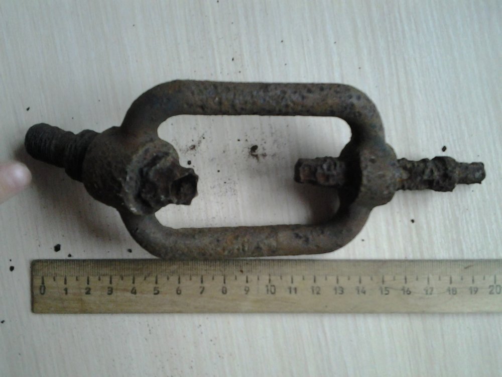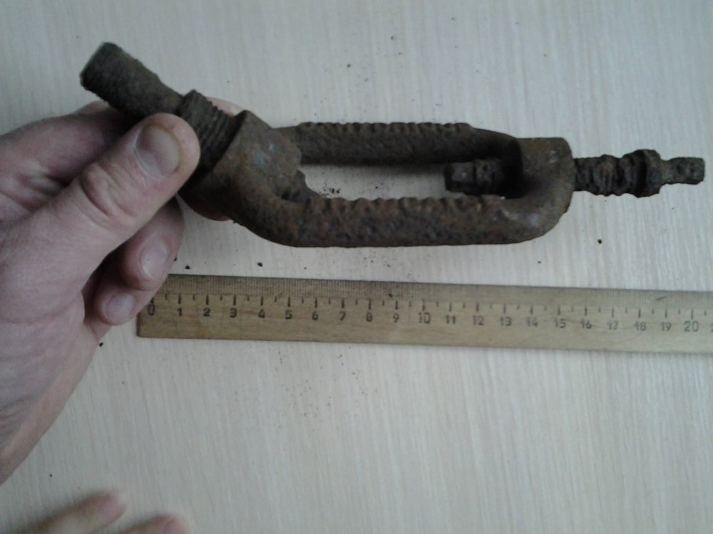 Тогда это не натяжитель троса типа вот такого , как я поначалу думал. Может быть это винтовой зажим наподобие такого , но только закрытого типа. Как и у Вашей находки, один винт имеет резьбу большего диаметра и, возможно, большего шага, чем другой, - а это удобно для упрощения работы с таким зажимом. Честь имею!