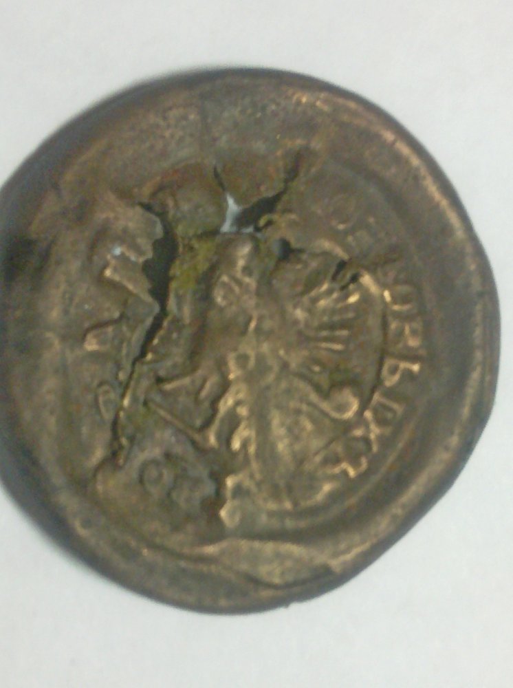 Добрый день,камрады!Подскажите ,что это было и какое его предназначение.Материал - листовая медь,0,2 мм толщина,диаметр 28 мм.Посредине остатки стилизированого герба с двуглавым орлом, примерно как на деньге. Можно прочитать надписи : на 7 часов Т-во , дальше потери, а примерно с 1 часа "ионтовыхъ".С ув.