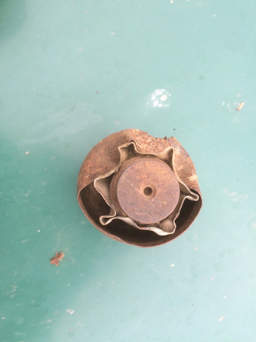 Приветствую. На металоприёмке попалась такая стальная гильза, подскажите что за боеприпас когда то был?