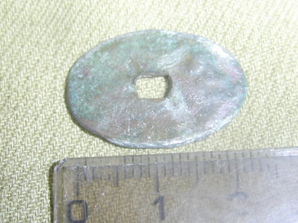 А не может ли это быть частью ножа?Что-то типа гарды,для усиления торца рукояти куда вставляеться лезвие?Вроде того что на фото.Но Ваша деталь вроде не современщина,с одной стороны похоже рисунок просматривается... С ув.