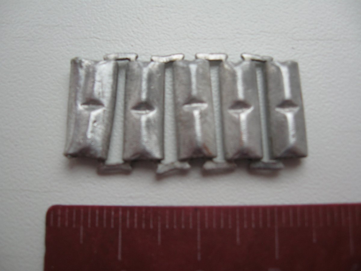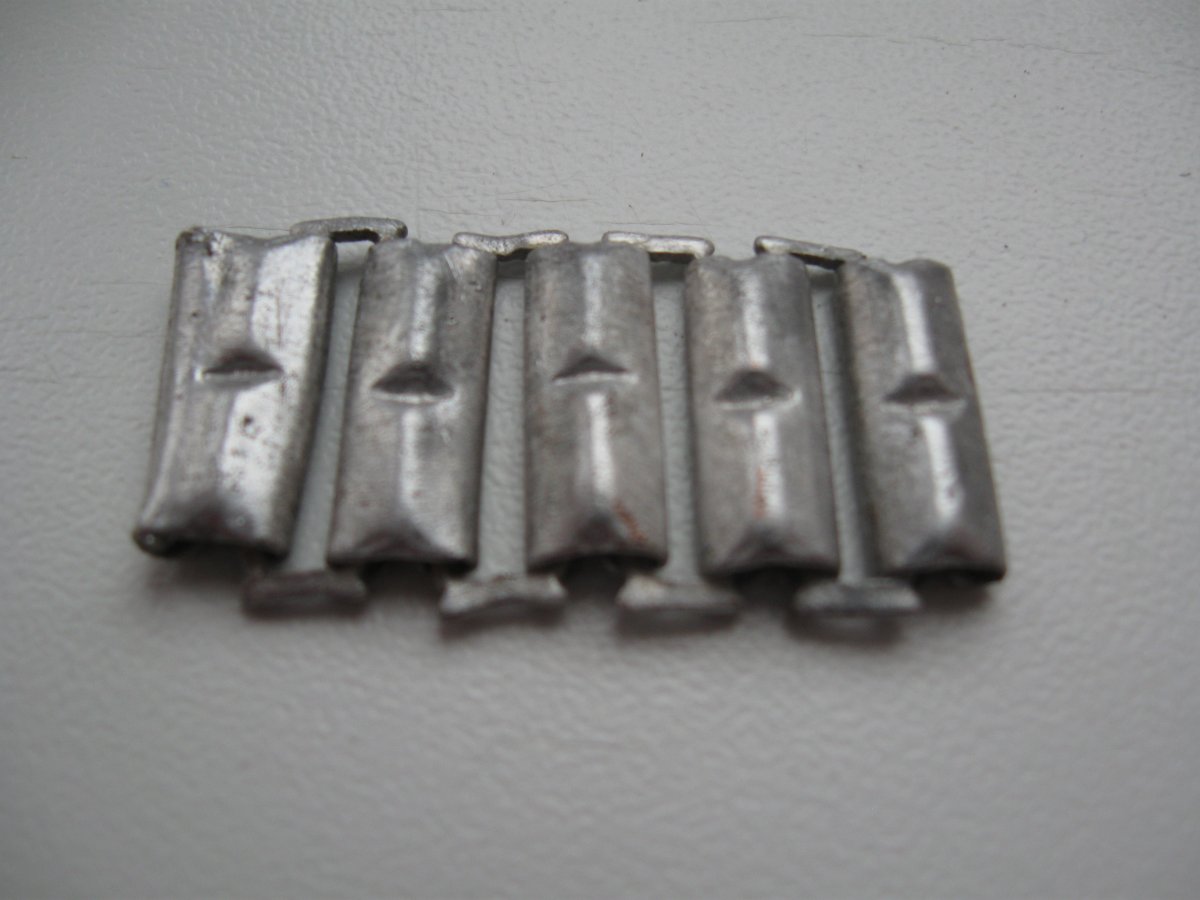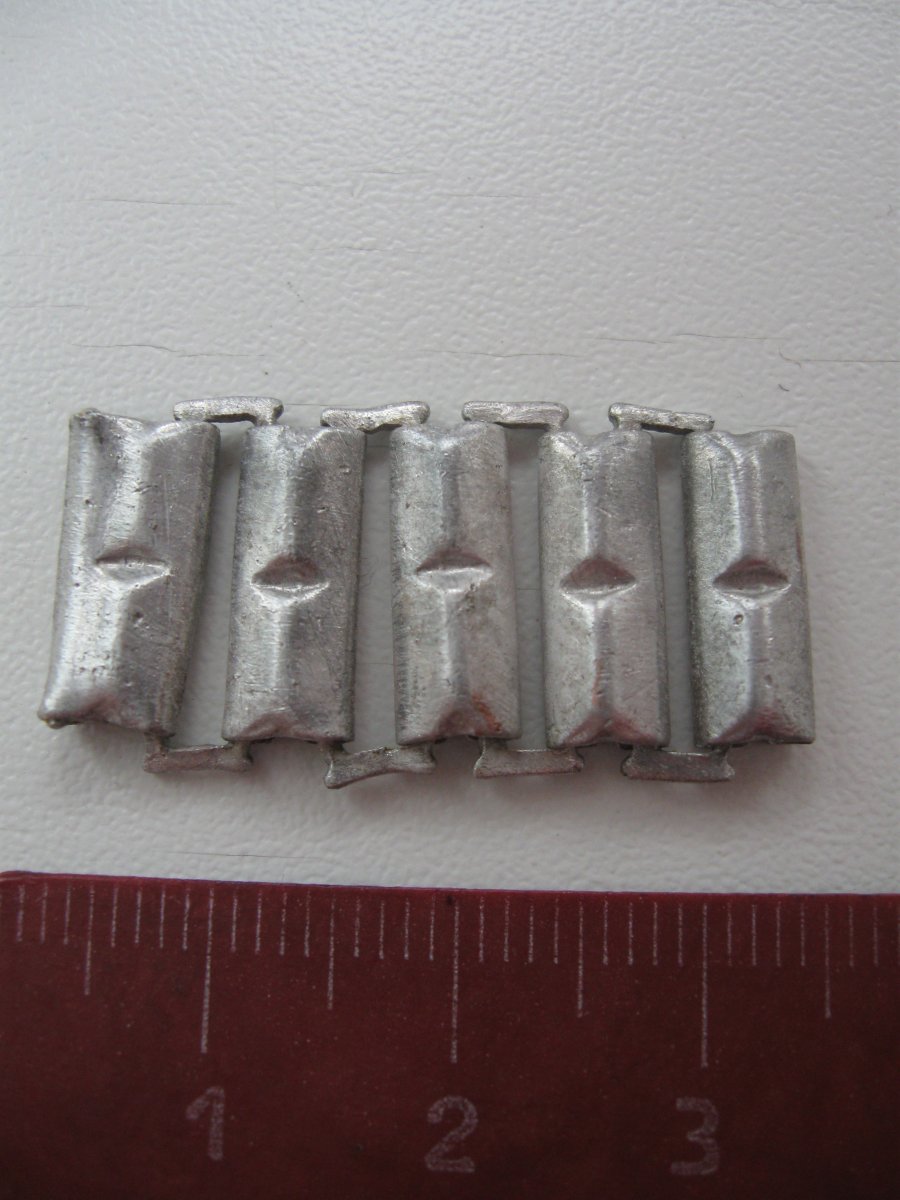 День добрый. Прошу подсказать по предмету. Звено алюминиевой цепи. Чье оно? Ну однозначно не с советских наручных браслетов от часов. Рядом был найден люверс от плащ-палатки. Заранее благодарен за ответ.
