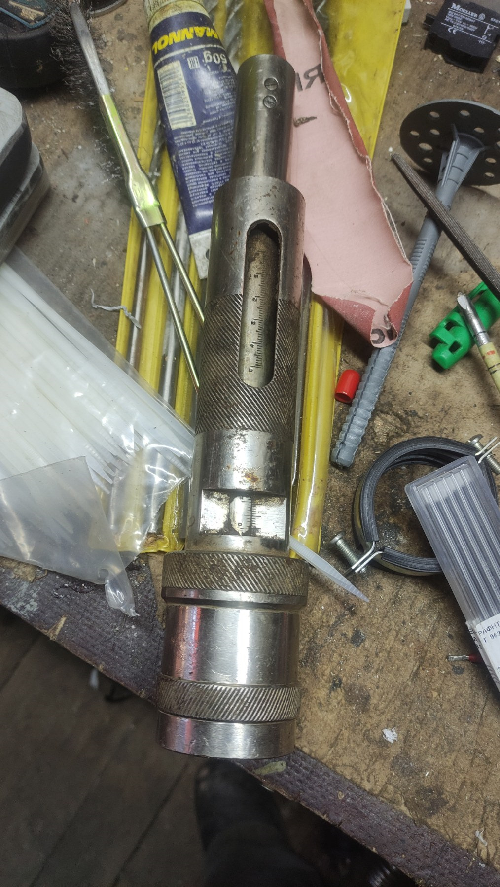 Доброго. В принципе, наверное, не дорого для не известной штуки, но фото побольше: https://www.olx.ua/d/uk/obyavlenie/yakiys-pribor-pk-2-IDXMfMI.html Измерительный прибор ПК-2. ПК-2 (прибор контроля) — это ручной измерительный инструмент, который используется для контроля геометрических параметров различных деталей, в частности, для измерения диаметров и овальности отверстий. Принцип работы: Прибор имеет подвижный измерительный шток с пружинным механизмом и шкалой, видимой через прорезь в корпусе. Измерение производится путем введения штока в отверстие и считывания показаний по шкале. Конструкция: Корпус прибора выполнен из металла, имеет рифленую поверхность для удобства захвата и регулировочные винты на одном конце. На изображении инструмент выглядит изношенным и ржавым. Очень полезная, интересная и ненужная вещь.