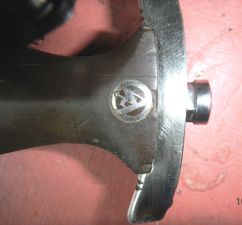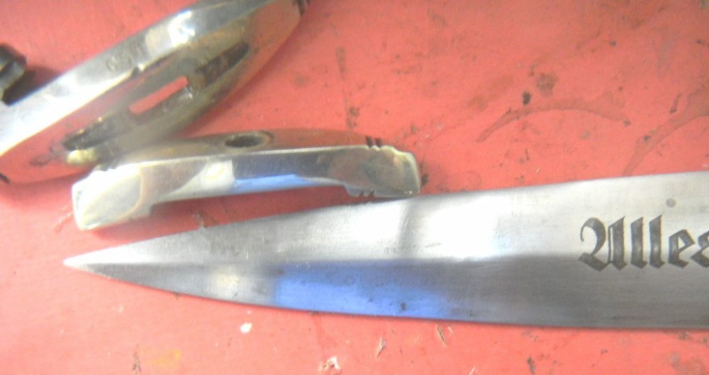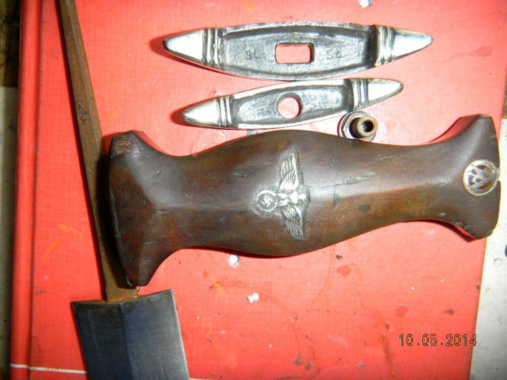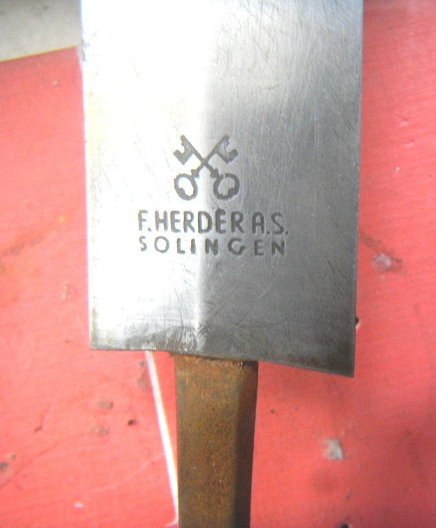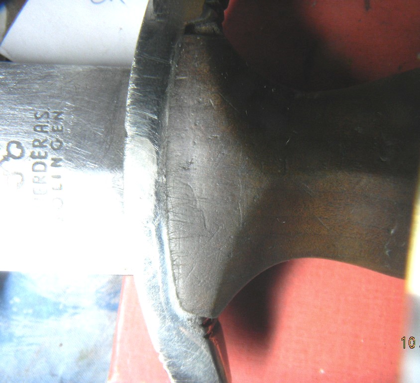 С такими гуляющими литерами на клейме клинков еще не встречал, не говоря уже о неожиданно поржавевшем хвостовике клинка. Черен рукоятки не похож на оригинальный...