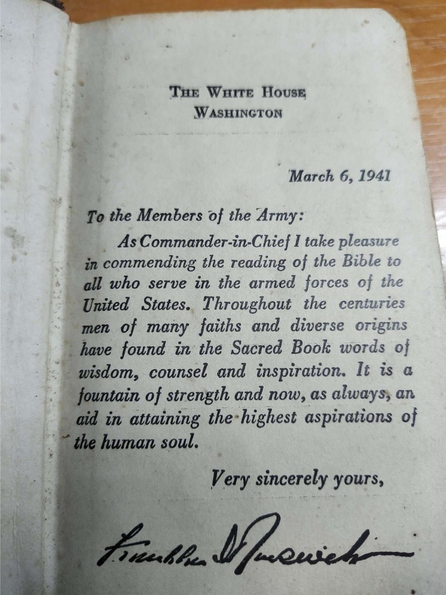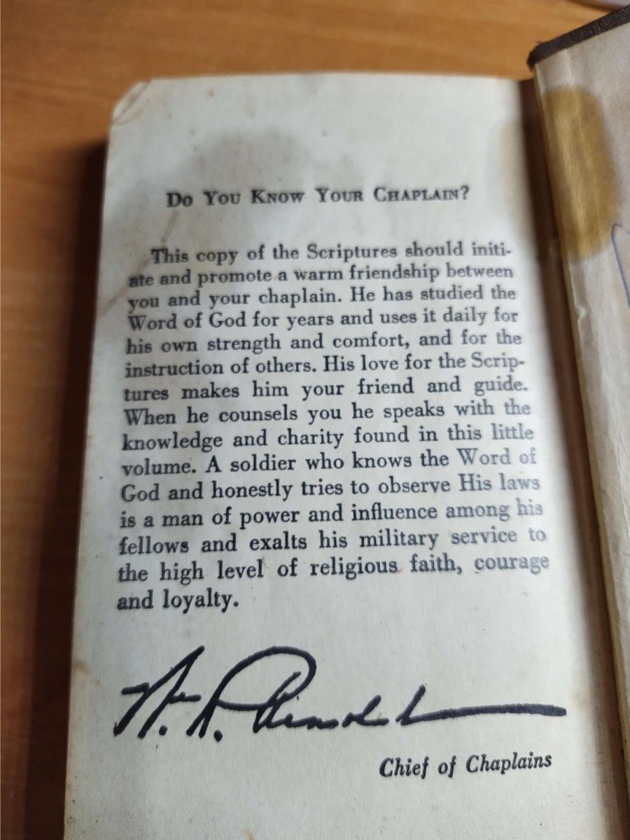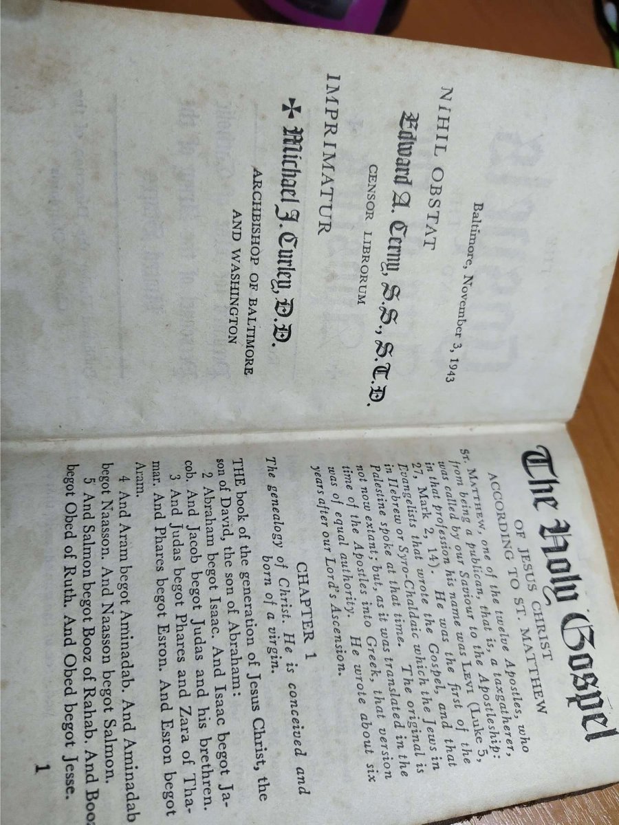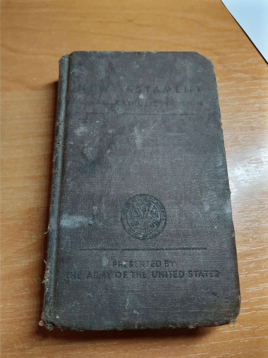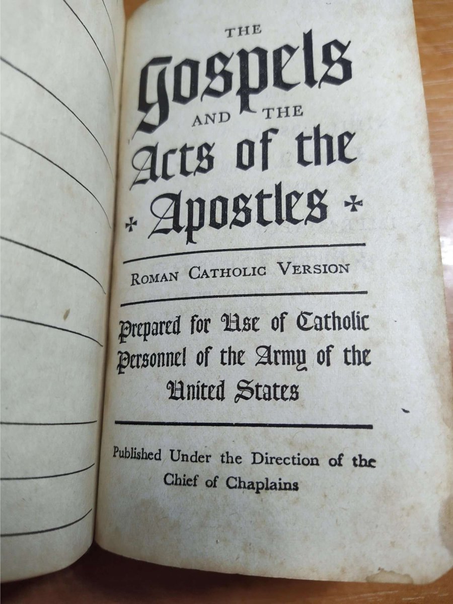 Тут пишут 1943 год, Молитвенник для католических военнослужащих в армии Соединенных Штатов: https://www.worthpoint.com/worthopedia/1943-gi-roman-catholic-new-testament-prayer С ув.