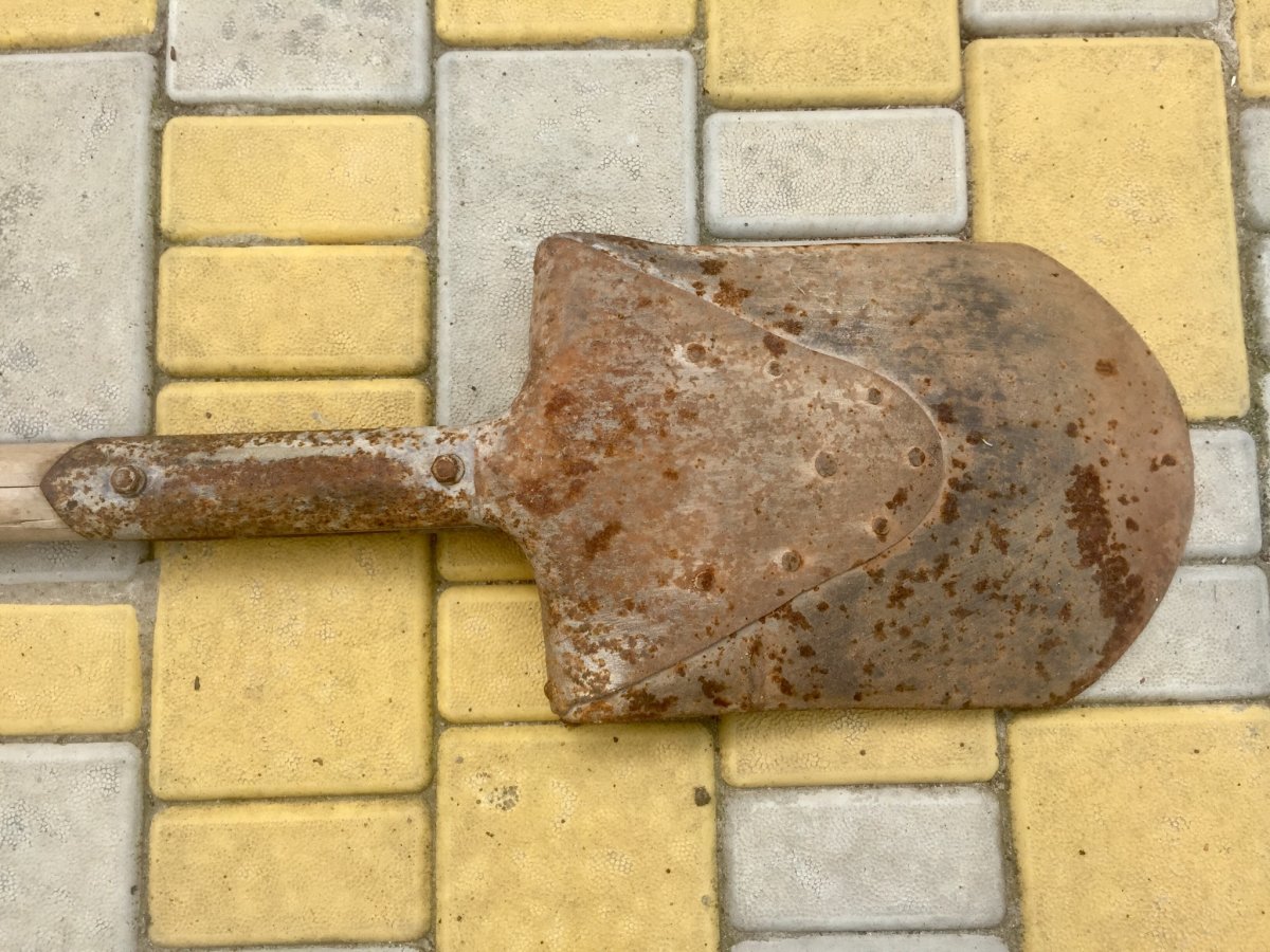Лопата СССР 60-70 гг ХХ ст. с ремонтными вставками на штыке. Для начинающего копаря хватит на сезон