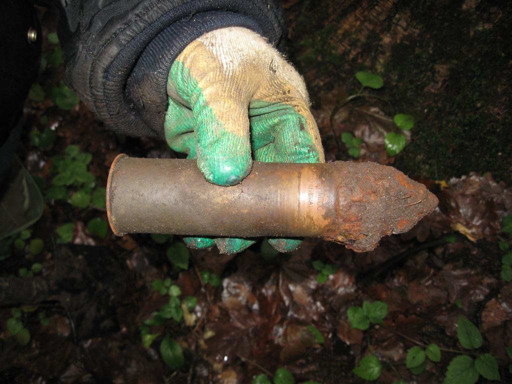 Комрады, помогите в определении данного снарядика. Линейки не было, на вид калибр между 30-45 мм., судя по клейму что-то ленд-лизовское. Фото капсуля не получилось сделать. Заранее благодарен.