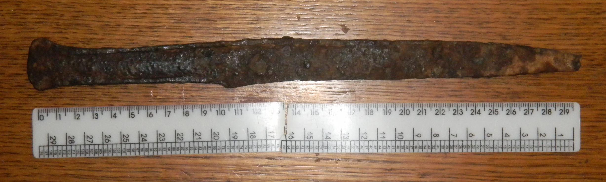 День добрый. Был найден на обочине старой дороги на глубине 25 сантиметров, сопутка монета 1 копейка 1900 г. На нож грибника не похож, заточка с одной стороны, на другой кант.