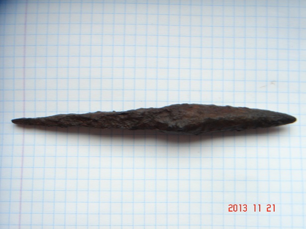 Всех приветствую! Поплись сегодня на старом добром месте, где прежде случались находки по славянам 13-14 веков, и половцам, такие штуки: На счет маленькой, почти уверен что копоушка, может у кого будут другие мнения? С удовольствием выслушаю.. А на счет большой, хотелось бы понять, чьих будет, как правильно называется, и какой длинны у нее было древко? Полагаю, что это не копье,которое бросали, а пика, коей наносили смертельные колющие удары.. Конец, который вставлялся в древко, имеет фотму и заточку сверла, тобишь не просто вставлялся, а проватачивался,дабы случайно не соскочить.. Кончик острия, повилимому обломан.. Относительно не далеко от него, раньше попадались фрагменты кольчуги..