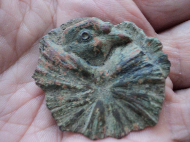 Вот нашел на месте старого немецкого дома вчера медный кусок какого-то знака с головой птицы. Подскажите, пожалуйста, что это может быть.