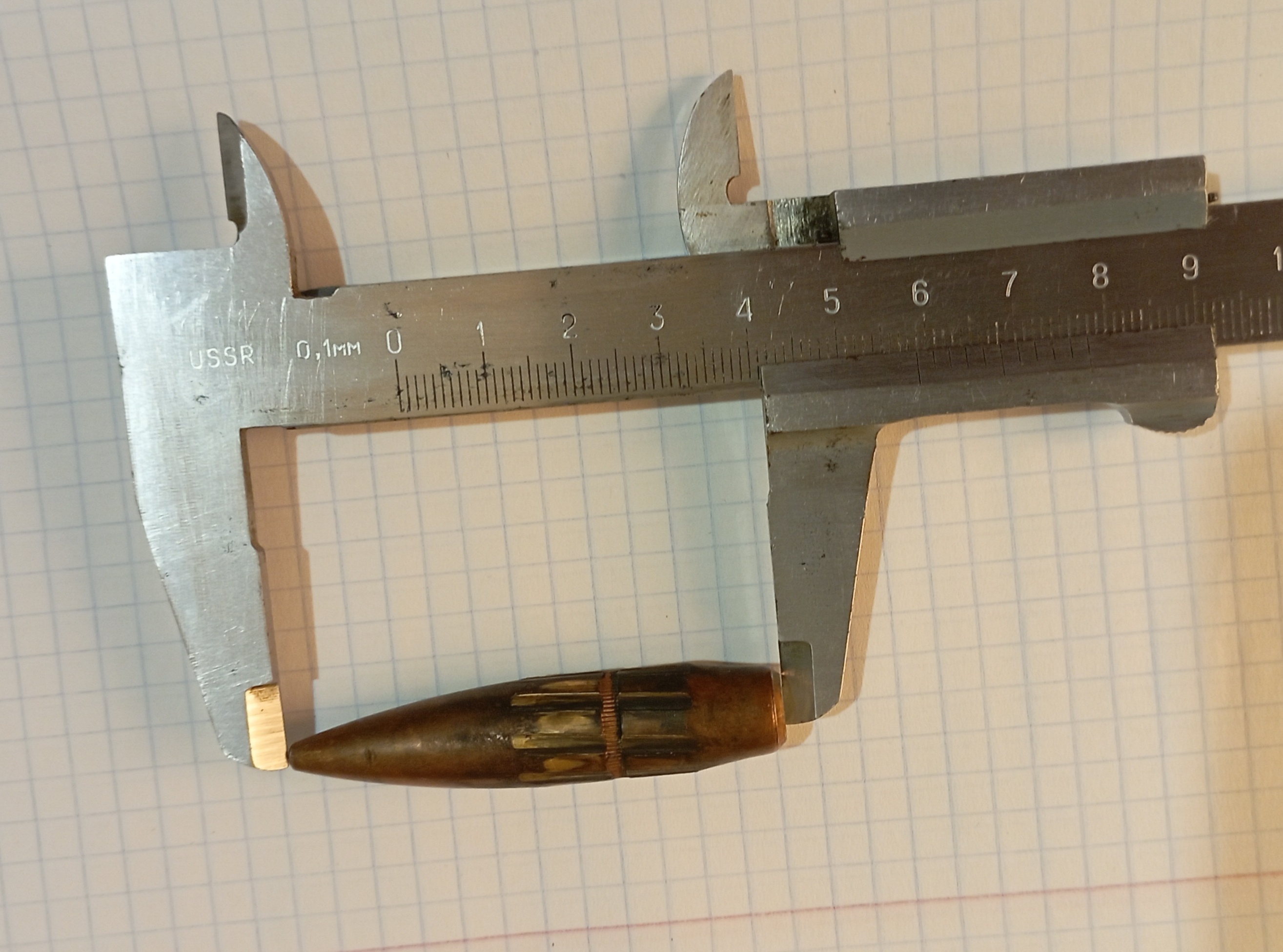 бачиться - куля .50 BMG (набій 12.7x99), М-33 (Ball), 660 грейн, флет метал джекет, Американського виробництва.... ..нарізи відповідають стволу кулемета М2 "хеві баррел"... ...якось так...