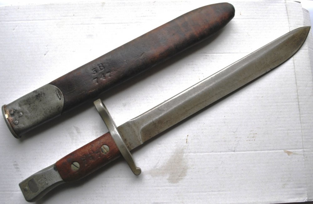 Если Вы желаете получить более полную информацию про данный штык, то было бы крайне желательно выложить фото клейм на рукояти, как на нижеприведённой ссылке: http://arms2armor.com/Bayonets/ross1910.htm Исходя из того, что на штыках данной модели по ссылке http://www.collectiblefirearms.com/Bayonets.html#Canada нет маркировки по типу "Вашей", осмелюсь предположить, что она была нанесена уже в войсках. На просторах интернета видел пример такого клейма ... CR ... (поставил точки ибо не помню цифр) - Canadian Riflels, данный вариант клейма расшифровывают как: ... Канадский стрелковый батальон, ... (номер в ячейке, козлах). Соответственно "Ваш" - 3-й батальон, № 747. По аналогии с современностью, 747 - последние цифры в серийном номере винтовки.