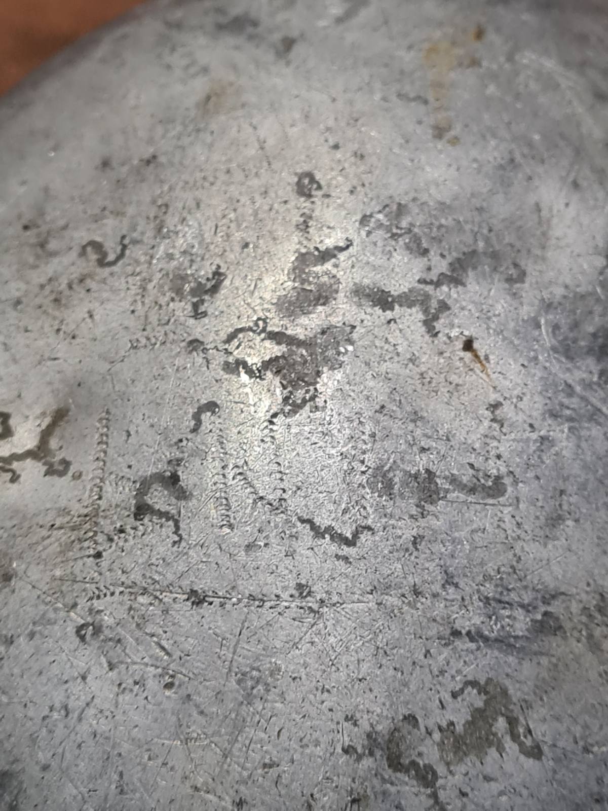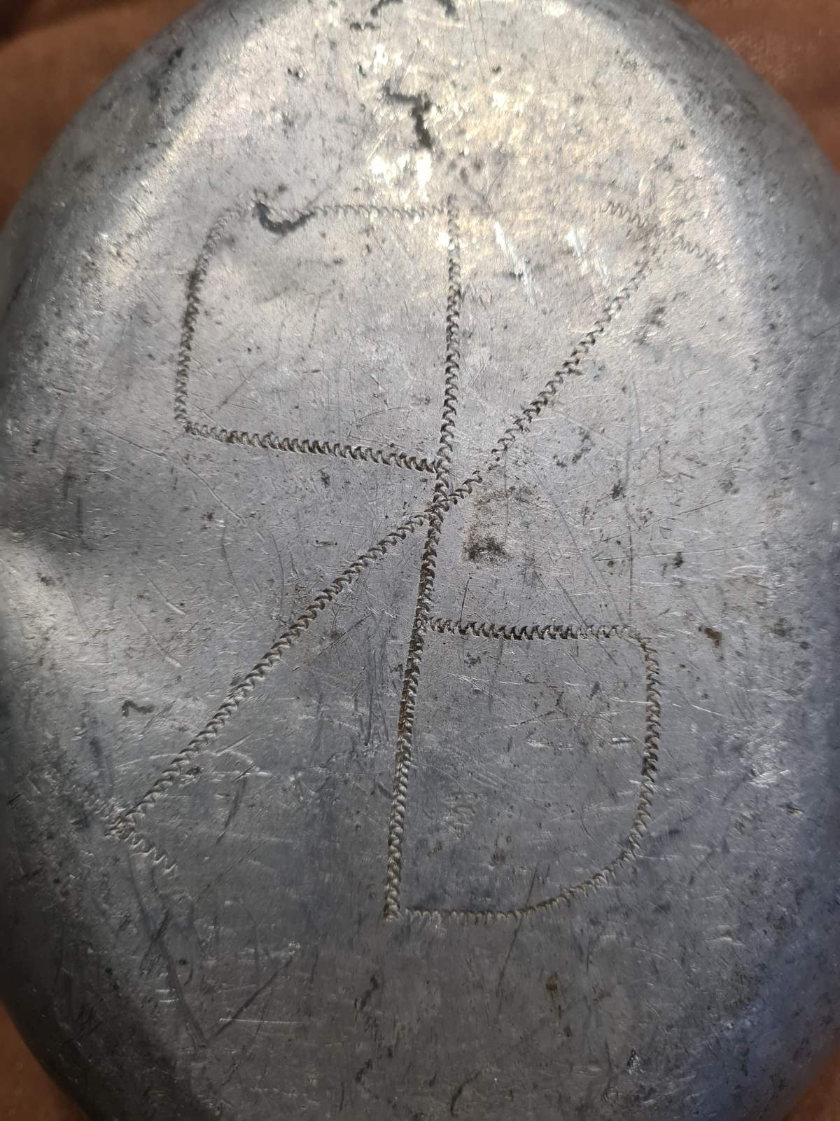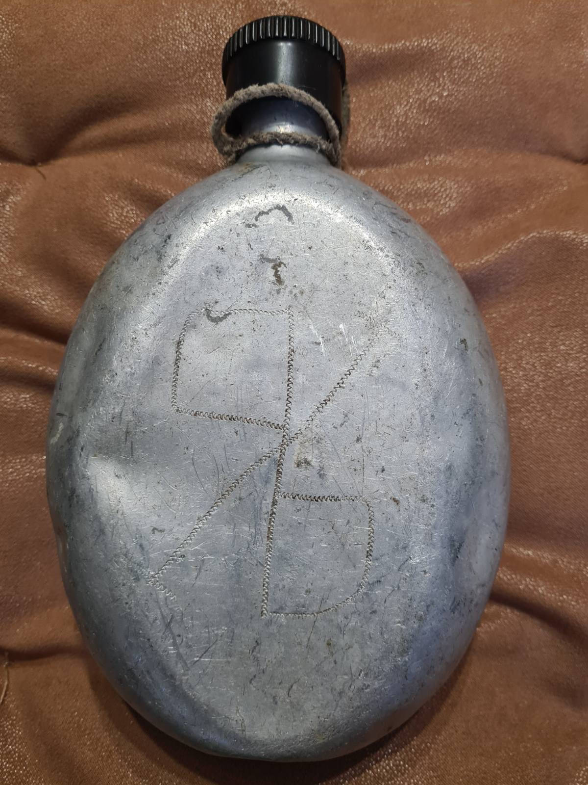 Всем привет. Не знаю куда выставить, выставлю в эту тему. Интересует,что за символы нацарапаны на немецкой фляге? Особенно большой.