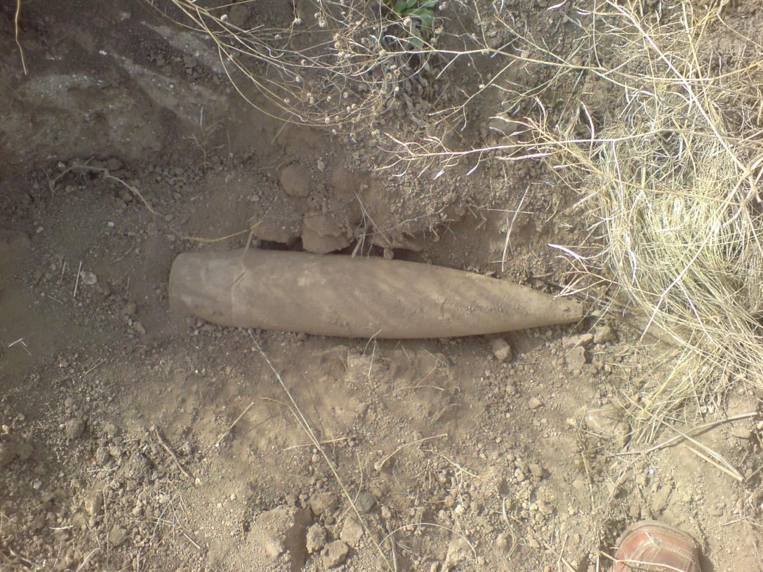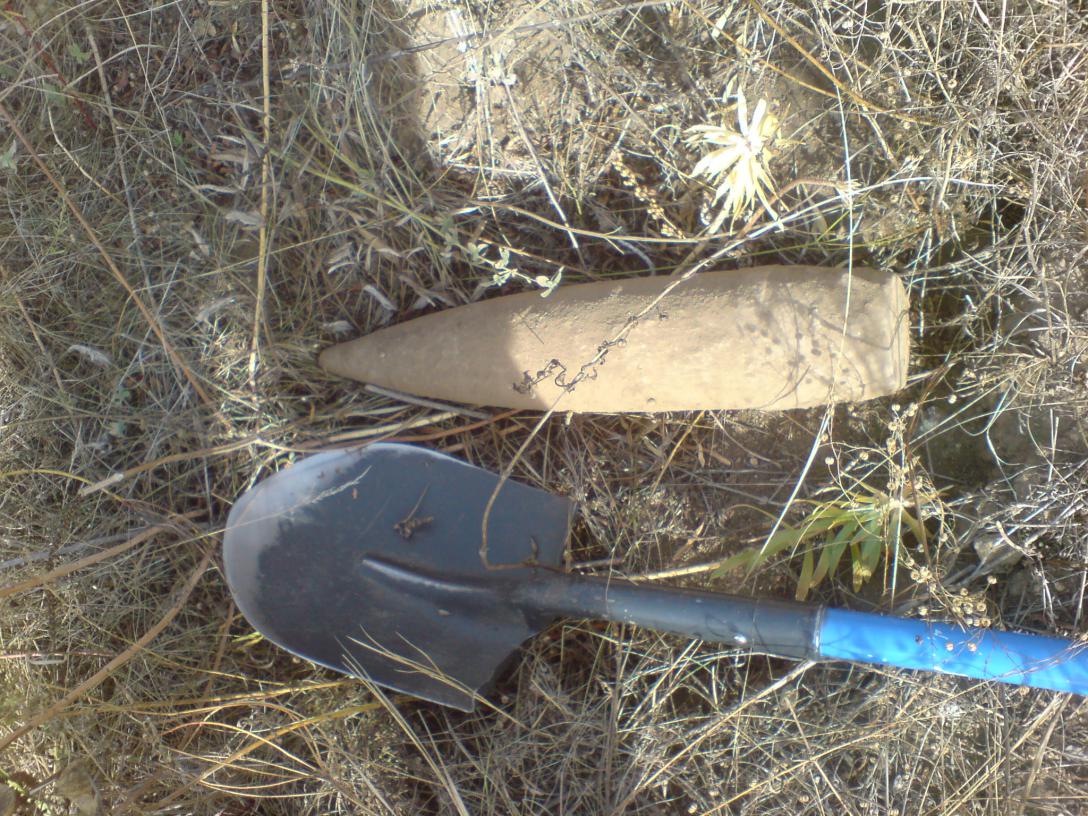 Если лопата "Фискарь" то снаряд 122мм наш О.Ф !!! Особо опосен!!!!!!!!!!!!p.s. осколочно-фугасный или просто фугас!!!!!!!! Трогать нельзя!!!!!