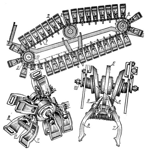 Часть поврежденной цепи теребильного аппарата свеклоуборочного комбайна. (наверное камень затащило и обломало "хваталки")