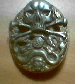 Доброго!Похож на "За борьбу с партизаноми",но вместо черепа с костми должен быть меч,убивающий змей.Вообще он какойто стремный.