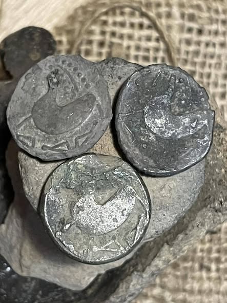 Ну ок, якщо точніше, це кельтська тетрадрахма 200-100 рр.до.н.е., Карпатського регіону (Україна, Словаччина, Румунія, Угорщина), зроблена із оригінальної монети Філіпа ІІ Македонського.