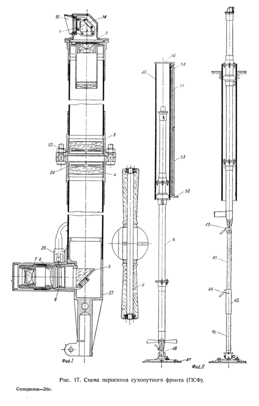 "....Согласно штатному расписанию 1935 года, в пулемётных ДОТах устанавливался перископ сухопутного фронта ПСФ с 1,5× кратным увеличением. Оптика перископа представляла собой две самостоятельные телескопические системы, верхнюю и нижнюю, которые могли быть раздвинуты до заданных размеров одна от другой, не нарушая коррекции и оптических данных перископа.