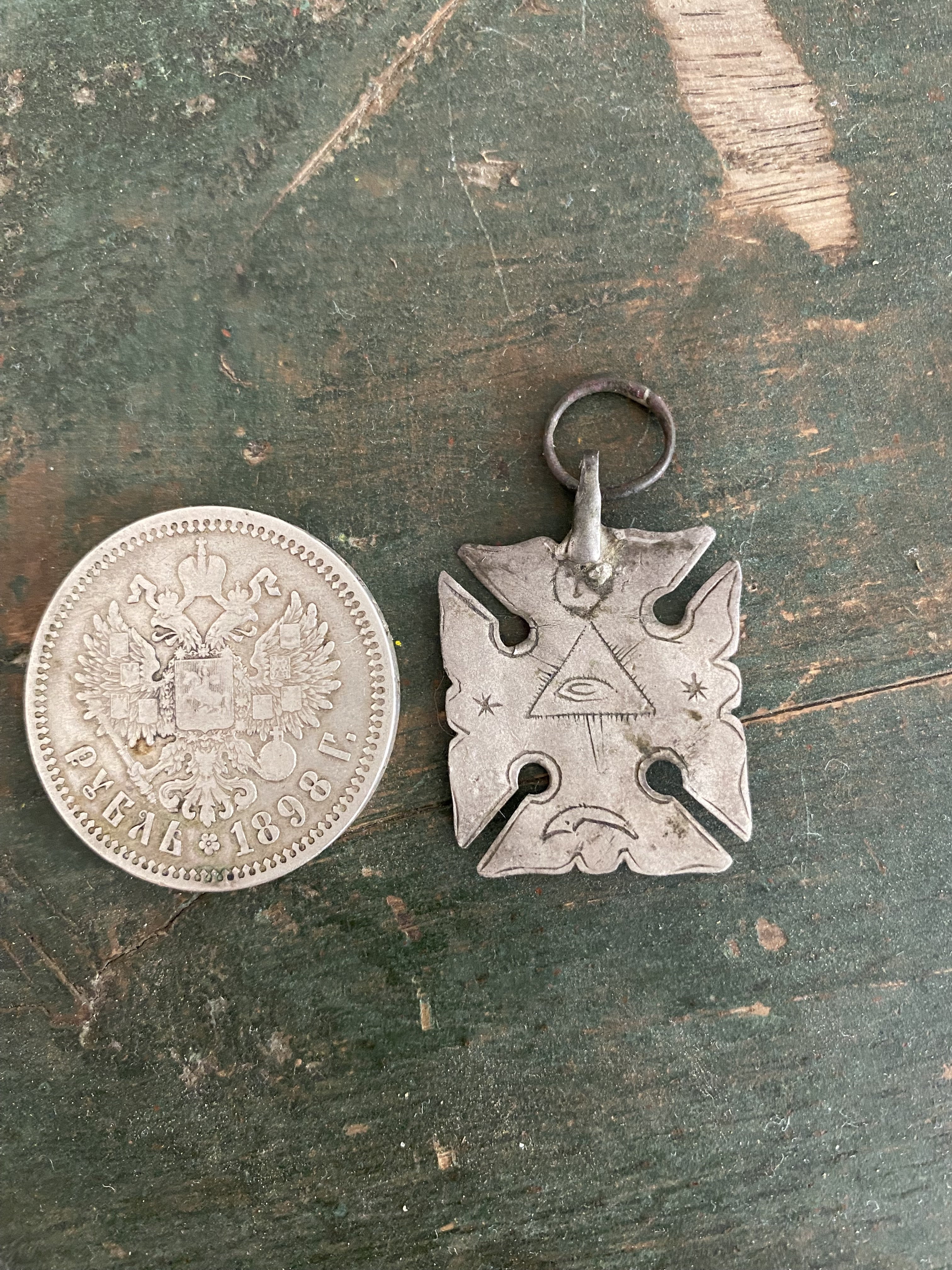 По цьому напрямку: Ваш дійсно цікавий (18ст?), у такому виконанні і розмірі можливо дійсно ієзуітський, плюс, крім христограми IHS, релігійно-масонські символи...Ще регіон знахідки підкажіть.