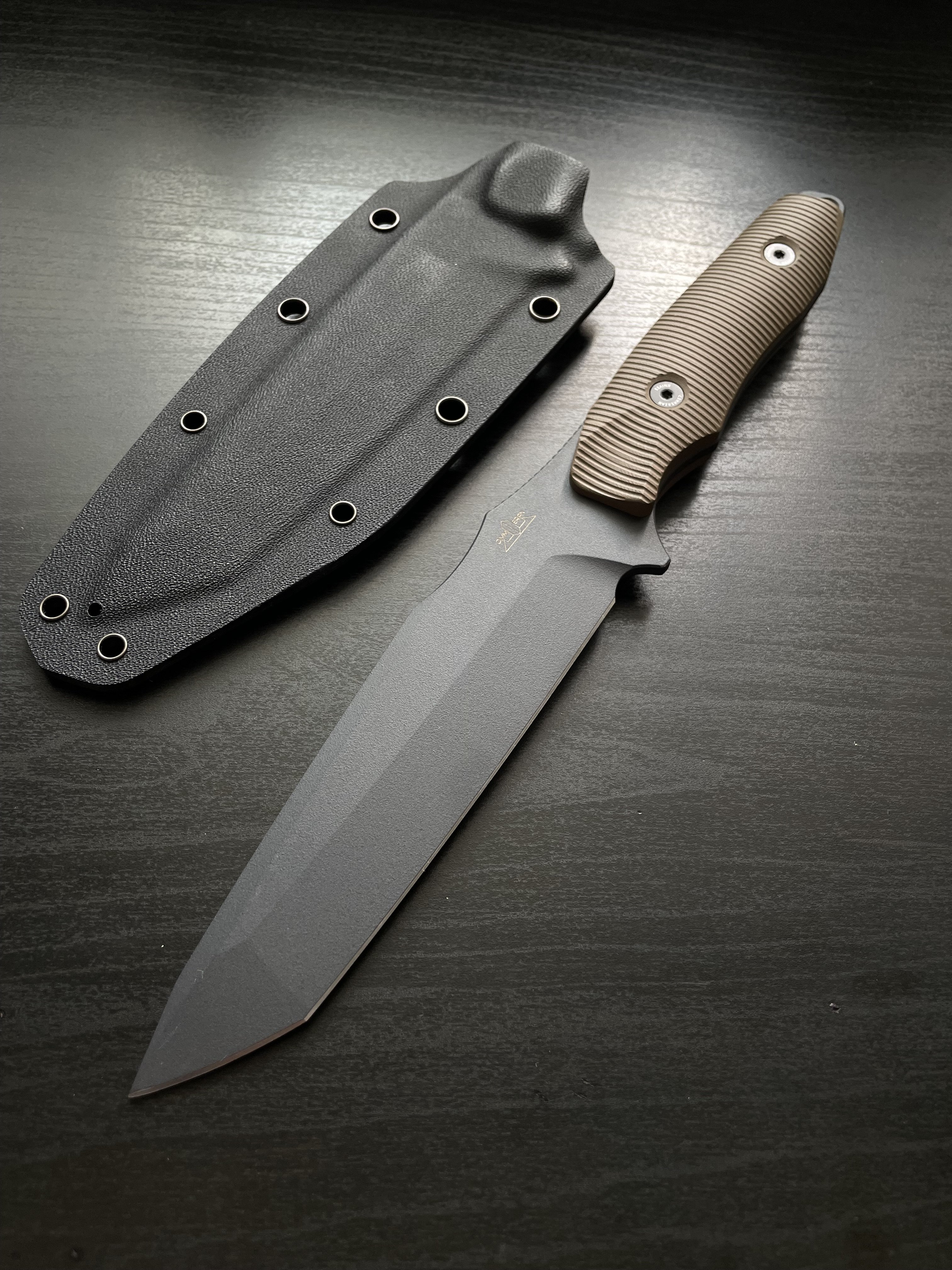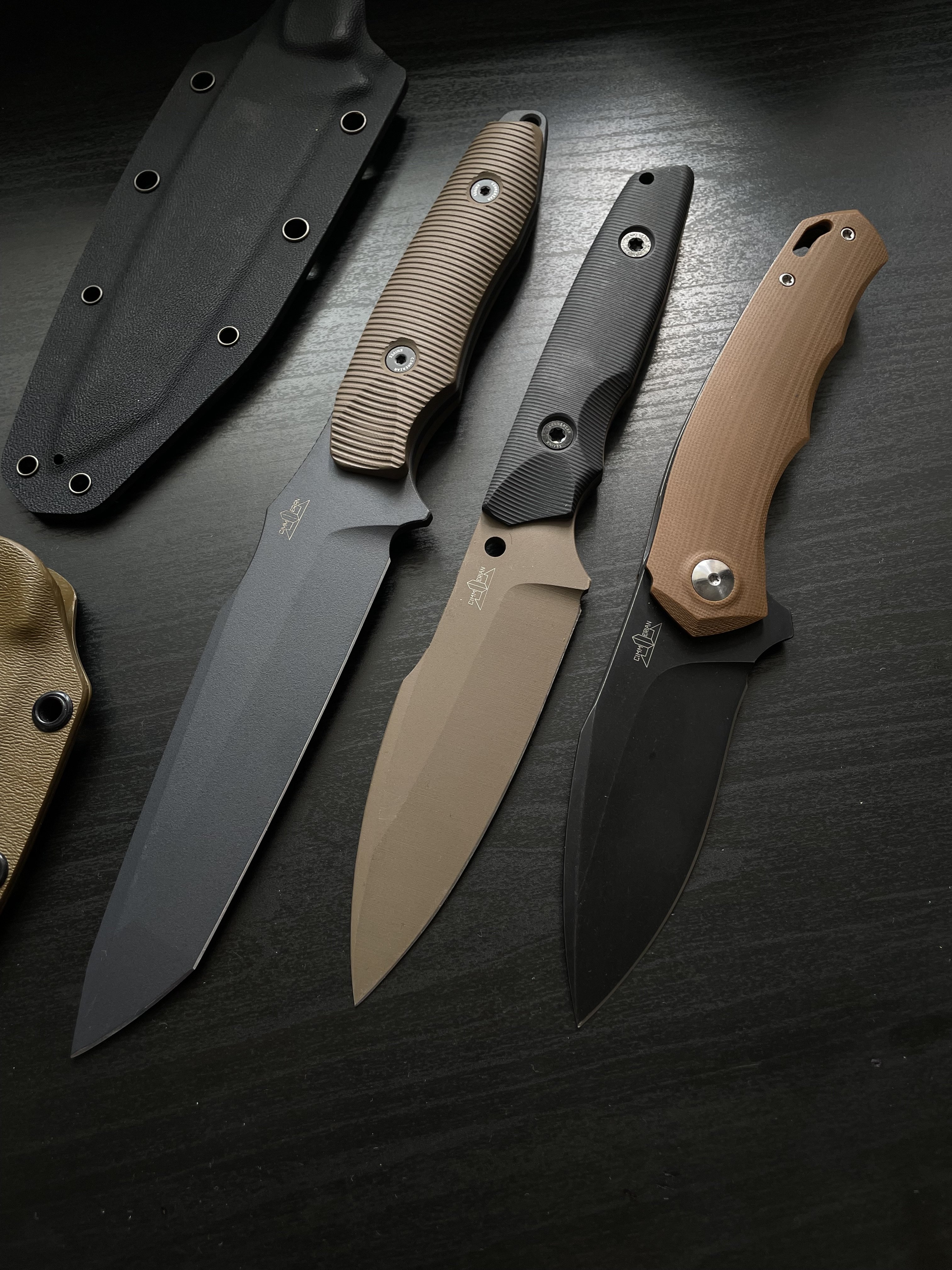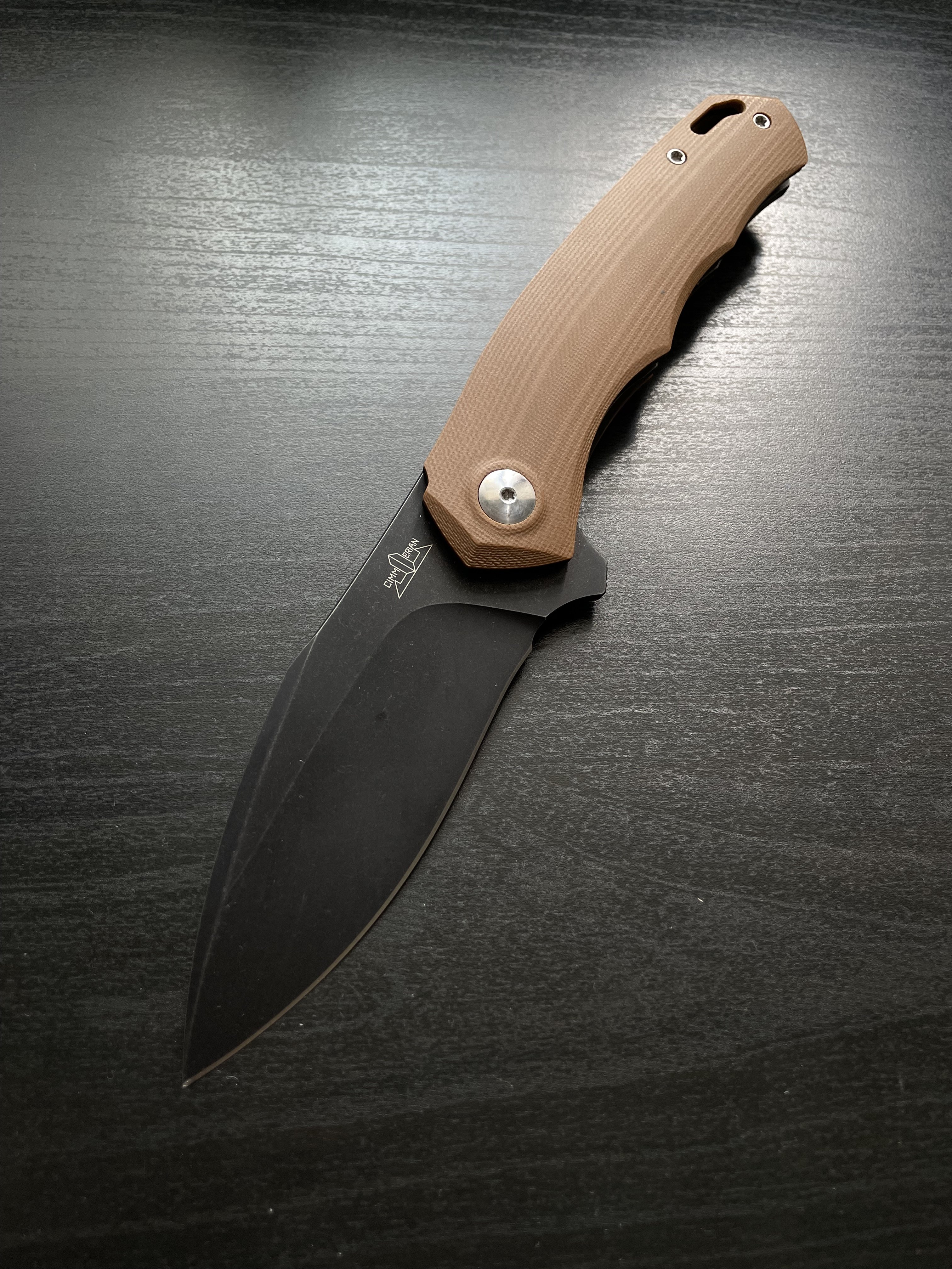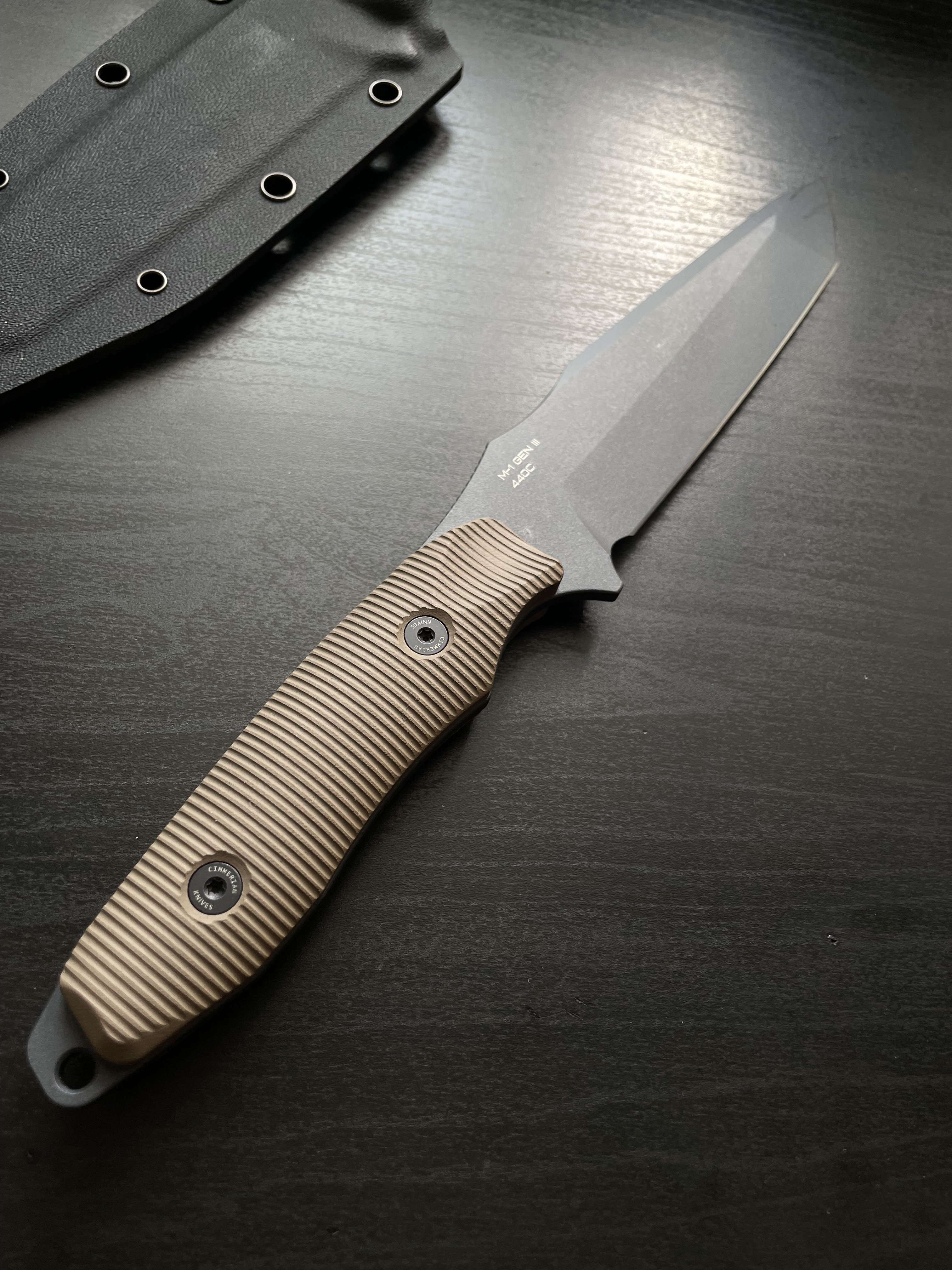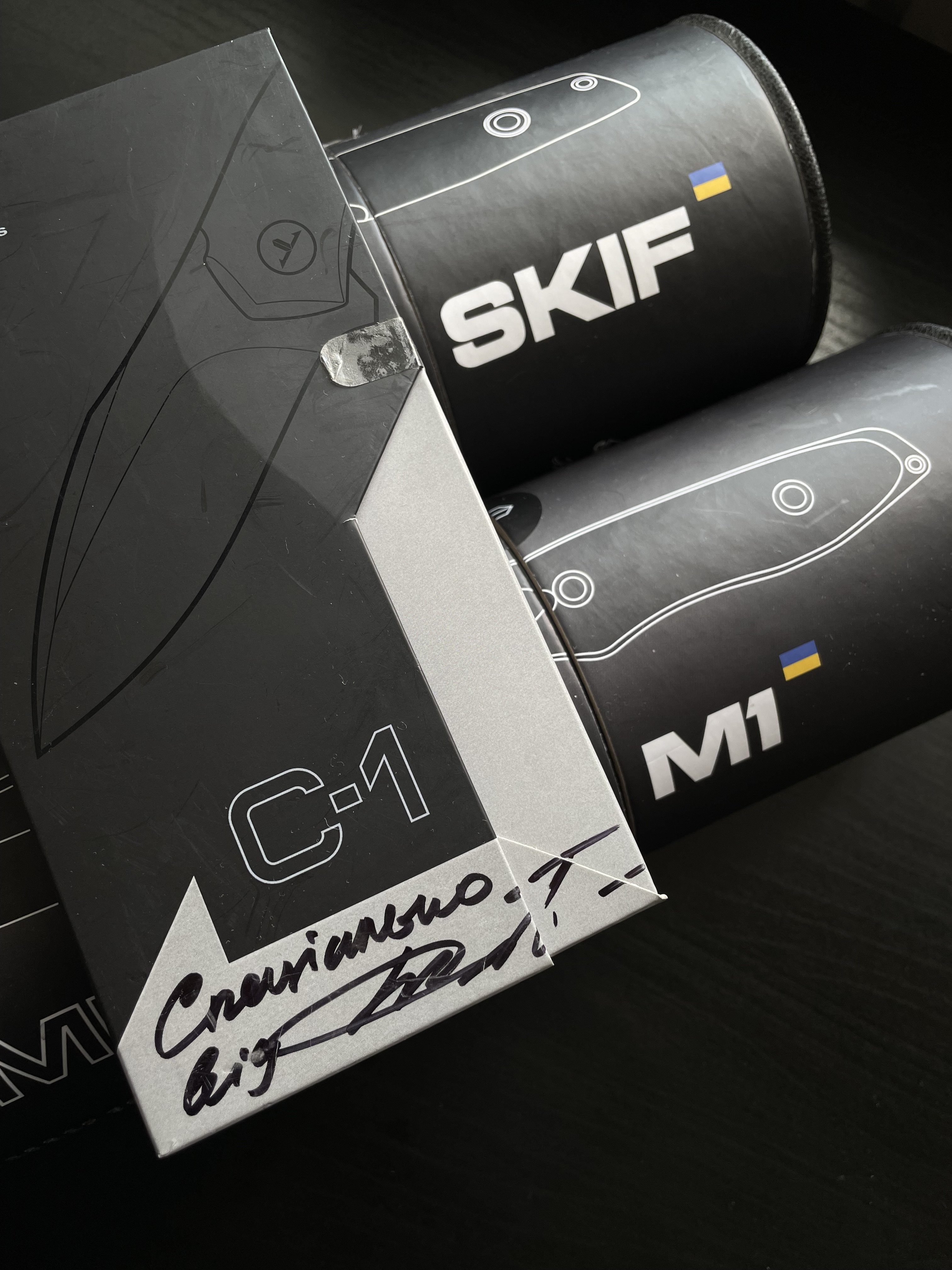 Cimmerian C1 Blackwash Coyote Стан: 9.5/10 практично новий, майже не юзаний ніж. Підпис Романа Кондрашова на коробці. Характеристики: Загальна довжина: 215 мм Довжина клинка: 90 мм Товщина клинка: 3,5 мм Сталь: D2 Матеріал руків'я: G-10 Вага: 125 гр. Ціна: 5600 грн Cimmerian M1 Grey Стан: 9.9/10 Відкрите пакування, різав один раз коробку Характеристики: Загальна довжина: 270 мм Довжина клинка: 150 мм / 135 рк Товщина клинка: 4 мм Сталь: 440С Матеріал руків'я: G10 Вага: ~200 гр. Ціна: 6000 грн Cimmerian Skif Coyote Стан: 9.9/10 Відкрите пакування, різав один раз коробку Характеристики: Загальна довжина: 228 мм Довжина клинка: 118 мм / 105 рк Товщина клинка: 4 мм Сталь: N690 Матеріал руків'я: G10 Вага: ~150 гр. Ціна: 6000 грн