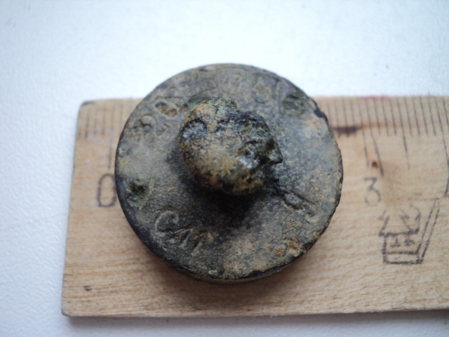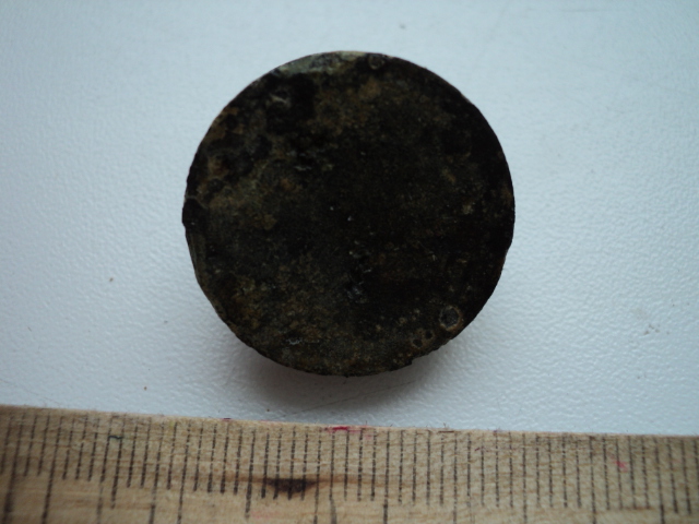 Комрады с копа подарили среди прочего, зная что я собираю,непонятные и интересные штуки. На гладкой стороне ничего нет, а там где пимпочка надписи: "20", "С.11", цифра 6 или 9, на двух щитах числа 43 и 44, рядом ленточка, но на ней ничего не разобрать. Что это может быть? Гирька? Часть печатки или пробка? И что означают эти надписи? Весит она 19 грамм. Без коррозии, наверное, вес был 20 грамм.