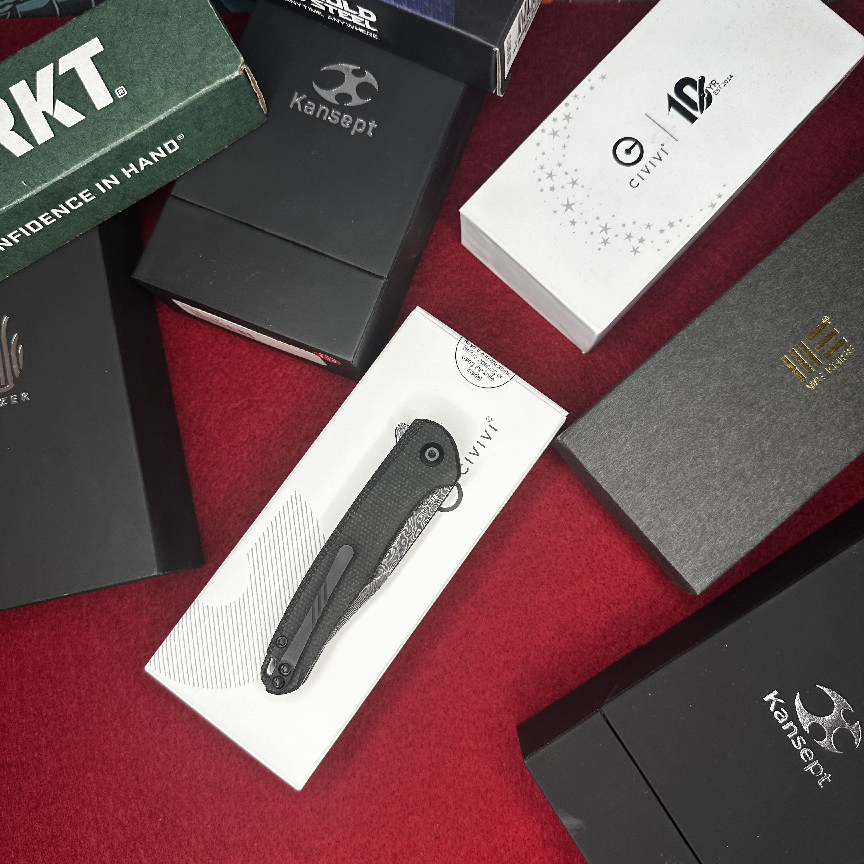 Також в наявності WeKnife Primoris , CIVIVI Mini Sandbar , CIVIVI Appalachian II Damascus & Rose Carbon , Kansept Shard Limited Stone Grain, Colibri Tech, Kizer Doberman, Kunwu Pulsar XL DLC, CRKT Linchpin Full Black Serrated !