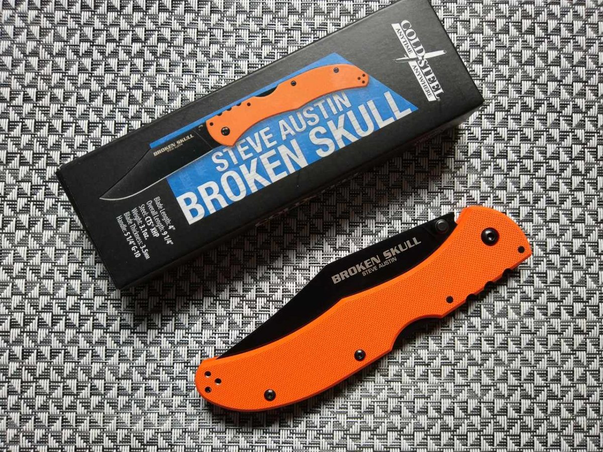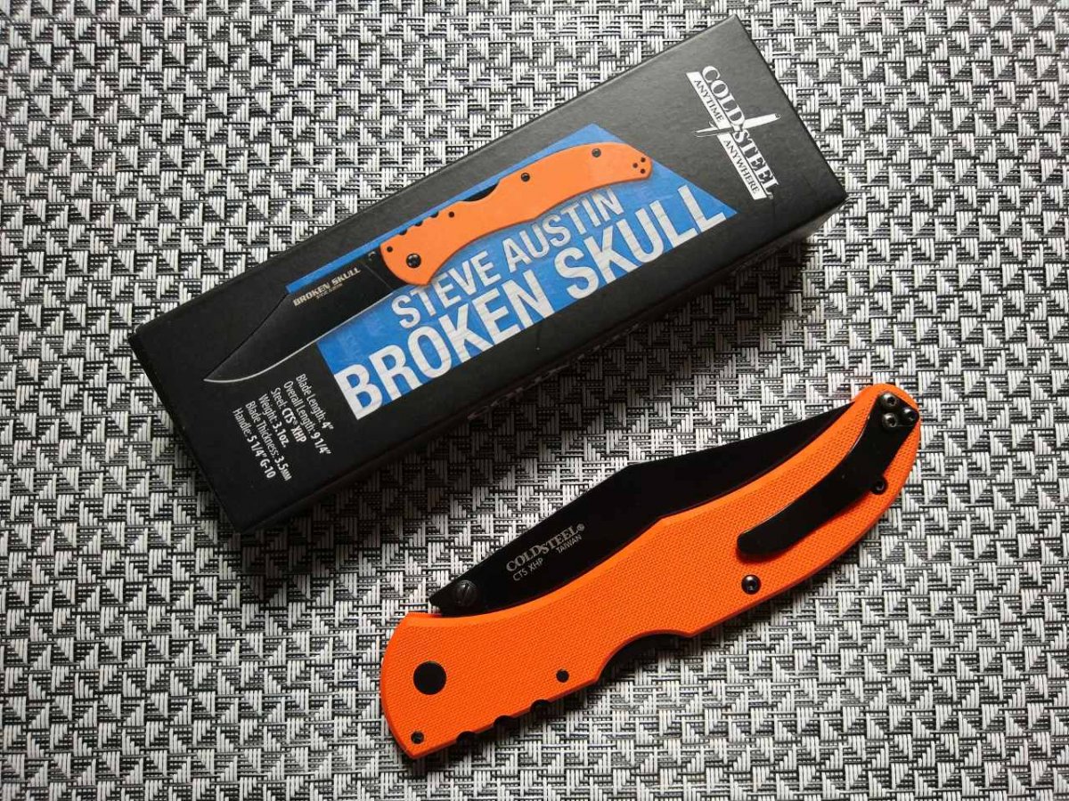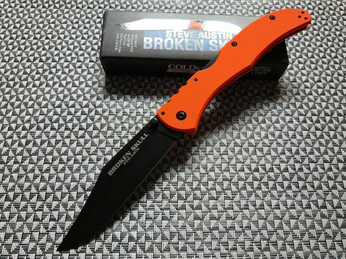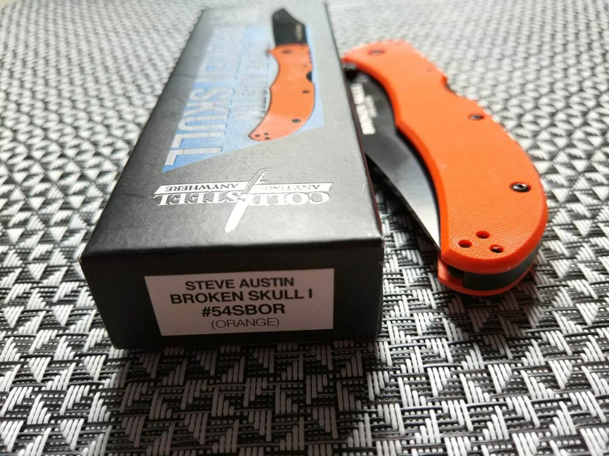 Предлагаю складной нож от компании Cold Steel (Колд Стил). Модель Broken Skull I (Orange) 54SBOR. Оригинал. Cold Steel в сотрудничестве с профессиональным рестлером, охотником и ножеманом Стивом Остином (Steve Austin) создали интересную и даже в своём роде уникальную серию ножей - Broken Skull. Это если по информации компании.… На мой же взгляд - это слегка изменённый визуально и выпущенный в гораздо более интересных материалах нож Lone Star Hunter. Но от этого эта модель хуже не стала, а компания имеет право на интересный и яркий «маркетинг», так что простительно . Нож имеет одноимённое название с состязанием на силу ловкость и выносливость Broken Skull challenge, которое проводит сам Стив. Чем же этот нож так необычен? Да взять хотя бы соотношение габаритов к весу – при длине клинка в честных 100 мм и общей длине в 235 мм, вес ножа Broken Skull Orange составляет всего 88 г, а это уже огромное преимущество. Толщина рукояти менее 1 сантиметра, при этом нож Cold Steel Broken Skull I отлично сидит в руке, он действительно удобен, разве что для серьёзной силовой работы лучше надевать перчатки. Нож Broken Skull получился действительно интересный и более чем универсальный, он с одинаковым успехом может быть EDC инструментом горожанина или верным помощником охотника. Даже в кармане костюма этот нож не станет инородным телом и способен потеснить многих конкурентов в нише джентльмен фолдеров. Cold Steel Broken Skull – нож способный удивлять. Сталь CTS-XHP, используемая для изготовления клинка Cold Steel Broken Skull Orange – выпускается американской металлургической компанией Carpenter CTS и является порошковой нержавеющей сталью премиум-класса. Для клинка Cold Steel Broken Skull Orange выполненного из стали CTS-XHP характерна высокая твёрдость и отличная коррозионная стойкость. Clip-point, или щучка по-нашему, форма исключительно удобная для многоцелевого рабочего ножа, такой профиль присущ клинку Cold Steel Broken Skull 1. Спущен клинок от обуха, рез получается агрессивный и хорошо контролируемый. Открывается клинок традиционно для Cold Steel при помощи шпеньков, как левой, так и правой рукой. Отдельно стоит отметить финишную обработку клинка. В случае с Cold Steel Broken Skull Orange это DLC – Diamond-Like Coating (алмазоподобное углеродное покрытие), очень прочное и стойкое, благодаря слоистой структуре. Помимо красоты и некоторой тактичности, покрытие DLC так же предохраняет клинок от воздействия агрессивных сред. Особенность строения рукояти ножа Broken Skull является то, что в ней нет стальных лайнеров, решение хоть и не новое, но эффективное – это значительно снижает вес всей конструкции, при сохранении достаточной прочности. Рукоять Cold Steel Broken Skull I Orange плоская с прямоугольным сечением, выполнена из G-10. Прочности накладок из этого материала более чем достаточно, чтобы рукоять ножа не играла при нагрузках и была достаточно монолитна. Ближе к клинку на спинке рукояти есть специальные выемки, создающие надёжный упор для большого пальца. Вся фурнитура, элементы замка и клипса ножа Cold Steel Broken Skull Orange чёрного цвета – создаётся приятный контраст с оранжевым цветом рукояти. Замок - Tri-Ad Lock, пожалуй, самый крепкий и мощный на сегодняшний день, он способен выдерживать огромные нагрузки, не позволяя клинку Cold Steel Broken Skull сложиться при этом и остаться полностью работоспособным. Ссылка модели на сайте производителя: http://www.coldsteel.com/products/broken-skull-1-orange.html Пара видео, от производителя: Еще несколько, для наглядности: Разнообразных 