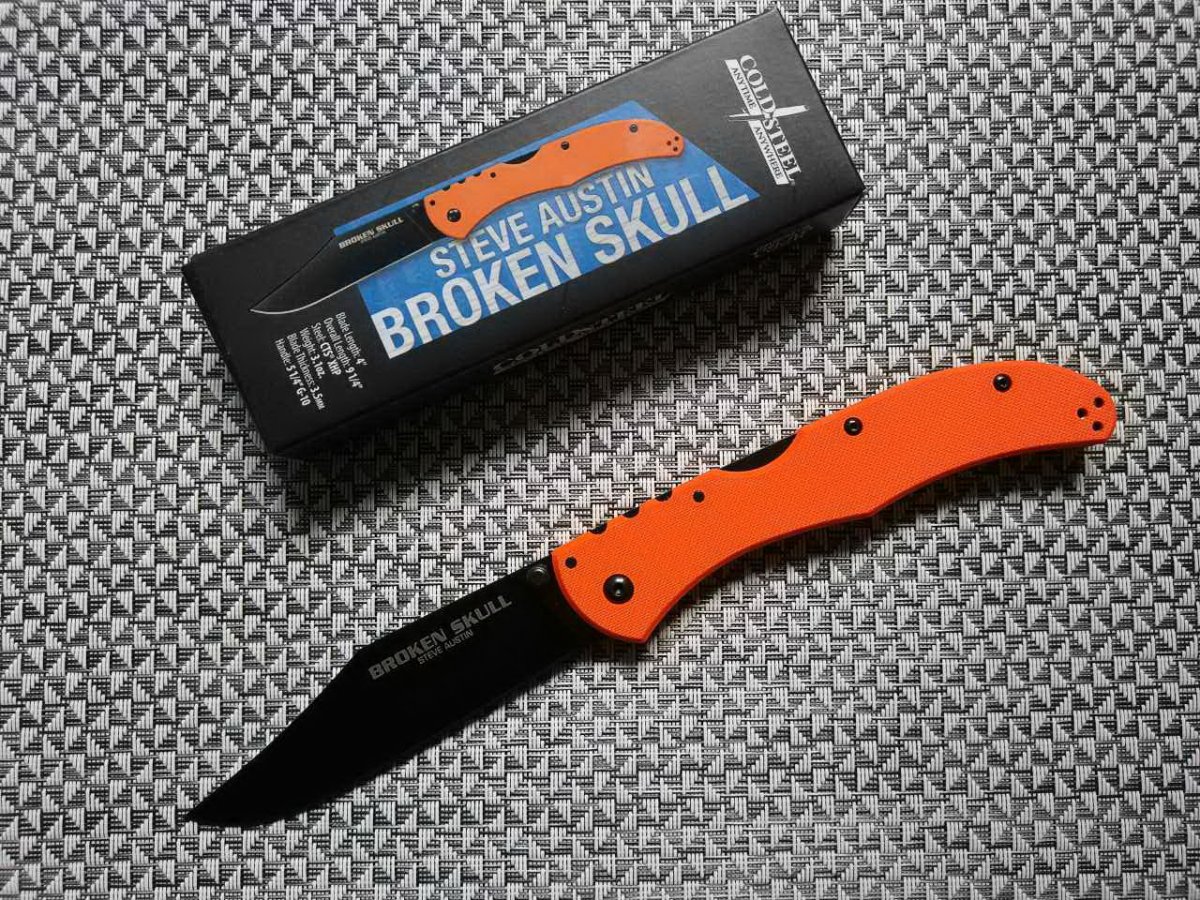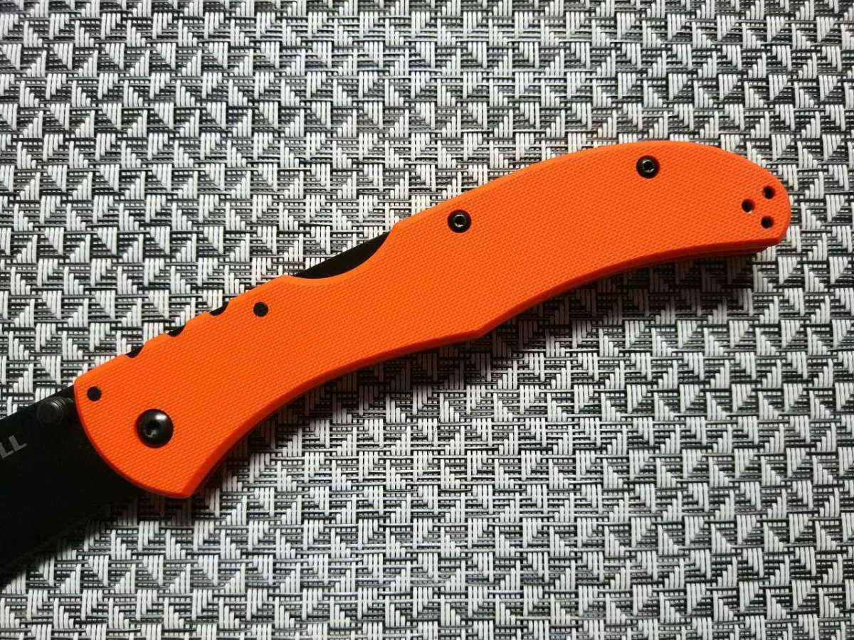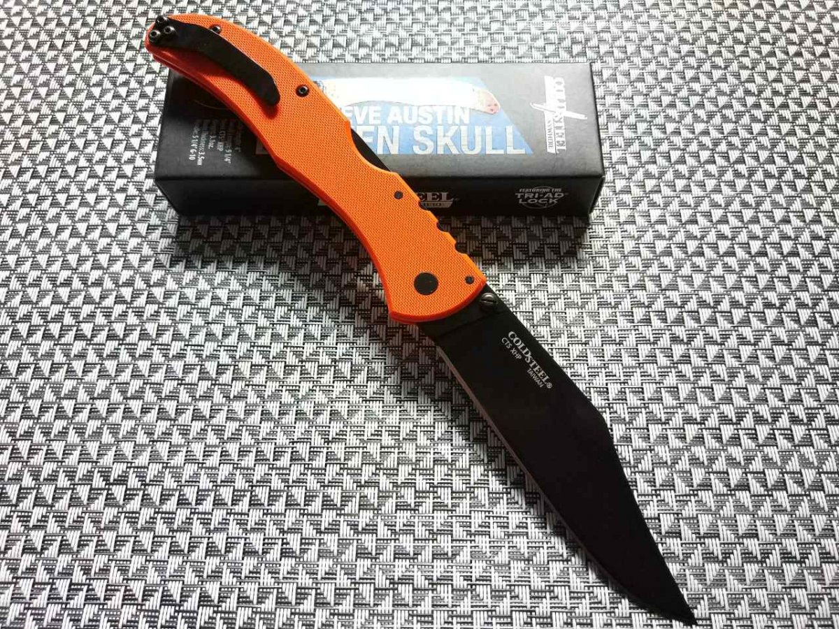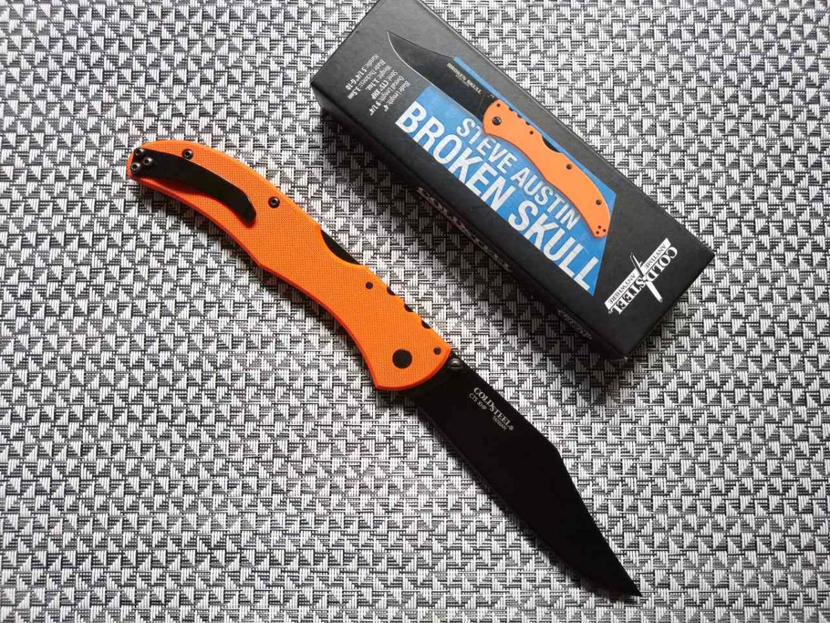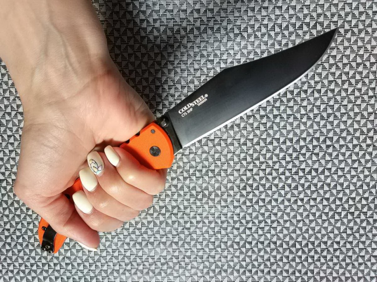 Предлагаю складной нож от компании Cold Steel (Колд Стил). Модель Broken Skull I (Orange) 54SBOR. Оригинал. Cold Steel в сотрудничестве с профессиональным рестлером, охотником и ножеманом Стивом Остином (Steve Austin) создали интересную и даже в своём роде уникальную серию ножей - Broken Skull. Это если по информации компании.… На мой же взгляд - это слегка изменённый визуально и выпущенный в гораздо более интересных материалах нож Lone Star Hunter. Но от этого эта модель хуже не стала, а компания имеет право на интересный и яркий «маркетинг», так что простительно . Нож имеет одноимённое название с состязанием на силу ловкость и выносливость Broken Skull challenge, которое проводит сам Стив. Чем же этот нож так необычен? Да взять хотя бы соотношение габаритов к весу – при длине клинка в честных 100 мм и общей длине в 235 мм, вес ножа Broken Skull Orange составляет всего 88 г, а это уже огромное преимущество. Толщина рукояти менее 1 сантиметра, при этом нож Cold Steel Broken Skull I отлично сидит в руке, он действительно удобен, разве что для серьёзной силовой работы лучше надевать перчатки. Нож Broken Skull получился действительно интересный и более чем универсальный, он с одинаковым успехом может быть EDC инструментом горожанина или верным помощником охотника. Даже в кармане костюма этот нож не станет инородным телом и способен потеснить многих конкурентов в нише джентльмен фолдеров. Cold Steel Broken Skull – нож способный удивлять. Сталь CTS-XHP, используемая для изготовления клинка Cold Steel Broken Skull Orange – выпускается американской металлургической компанией Carpenter CTS и является порошковой нержавеющей сталью премиум-класса. Для клинка Cold Steel Broken Skull Orange выполненного из стали CTS-XHP характерна высокая твёрдость и отличная коррозионная стойкость. Clip-point, или щучка по-нашему, форма исключительно удобная для многоцелевого рабочего ножа, такой профиль присущ клинку Cold Steel Broken Skull 1. Спущен клинок от обуха, рез получается агрессивный и хорошо контролируемый. Открывается клинок традиционно для Cold Steel при помощи шпеньков, как левой, так и правой рукой. Отдельно стоит отметить финишную обработку клинка. В случае с Cold Steel Broken Skull Orange это DLC – Diamond-Like Coating (алмазоподобное углеродное покрытие), очень прочное и стойкое, благодаря слоистой структуре. Помимо красоты и некоторой тактичности, покрытие DLC так же предохраняет клинок от воздействия агрессивных сред. Особенность строения рукояти ножа Broken Skull является то, что в ней нет стальных лайнеров, решение хоть и не новое, но эффективное – это значительно снижает вес всей конструкции, при сохранении достаточной прочности. Рукоять Cold Steel Broken Skull I Orange плоская с прямоугольным сечением, выполнена из G-10. Прочности накладок из этого материала более чем достаточно, чтобы рукоять ножа не играла при нагрузках и была достаточно монолитна. Ближе к клинку на спинке рукояти есть специальные выемки, создающие надёжный упор для большого пальца. Вся фурнитура, элементы замка и клипса ножа Cold Steel Broken Skull Orange чёрного цвета – создаётся приятный контраст с оранжевым цветом рукояти. Замок - Tri-Ad Lock, пожалуй, самый крепкий и мощный на сегодняшний день, он способен выдерживать огромные нагрузки, не позволяя клинку Cold Steel Broken Skull сложиться при этом и остаться полностью работоспособным. Ссылка модели на сайте производителя: http://www.coldsteel.com/products/broken-skull-1-orange.html Пара видео, от производителя: Еще несколько, для наглядности: Разнообразных 