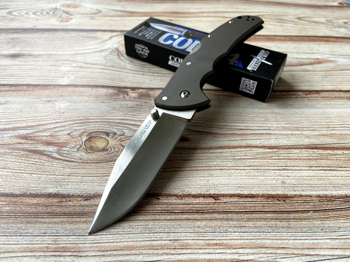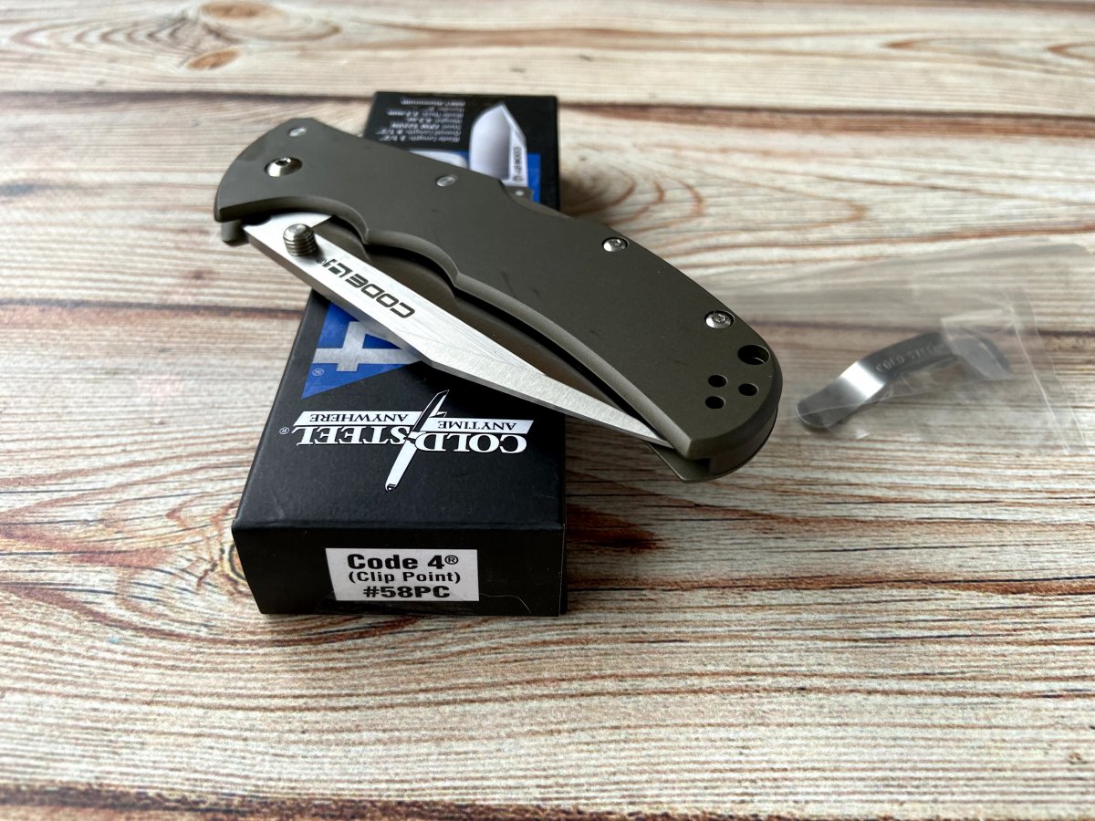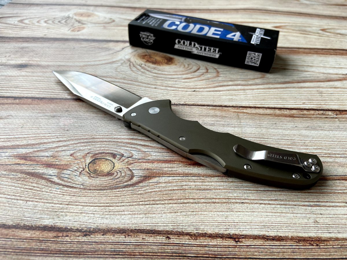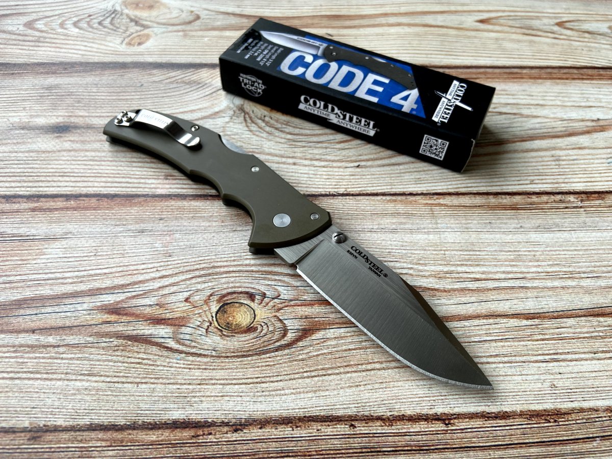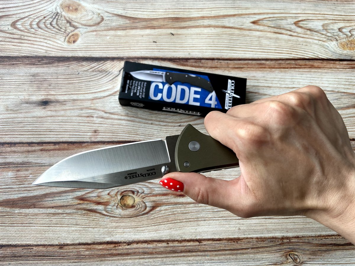 Предлагаю складной нож от компании Cold Steel (Колд Стил). Модель Code 4 Clip Point Plain Edge (58PC) CPM-S35VN. Оригинал. Серия ножей Code 4 от Cold Steel после появления на рынке, мгновенно завоевала любовь покупателей своим удобством, характеристиками и внешними данными. Представленная версия, это новинка 2018 года. Основное отличие от предшественников - используемая сталь, поэтому остановимся на ней немного подробнее. Компания Crucible Indusriesl в Нью-Йорке создала сталь CPM-S30V как сталь, специально разработанную для ножевых клинков. Впервые усилия ножевой промышленности были направлены на достижения такой цели. Вскоре после выпуска CPM-S30V Chris Reeve (Chris Reeve Knives) начал работать с Dick Barber, металлургом в Crucible Steel (в настоящее время). Цель состояла в том, что бы создать еще лучшую версию стали, которая имела бы лучше механические свойства и другие полезные качества. Результатом нескольких лет тестирования и исследования и стала сталь CPM-S35VN. CPM S35VN является мартенситной нержавеющей сталью и разработана как улучшенный вариант CPMS30V по ударной вязкости. Кроме того, данную сталь легче обрабатывать и полировать, чем CPMS30V. Химический состав CPM S35VN сбалансирован таким образом, чтобы образовались карбиды ниобия ванадия и хрома. Это делает CPM S35VN на 15-20% тверже, чем CPMS30V без потери износостойкости. Улучшенная прочность CPMS35VN делает ее более устойчивой к выкрашиванию. Карбид ванадия и карбид ниобия по износостойкости эффективнее, чем карбид хрома, поэтому сталь лезвия лучше держит кромку по сравнению с обычными «высокохромированными» сталями. Сталь изготавливается по технологии аморфных металлических сплавов, более известной среди производителей и любителей ножей под аббревиатурой СРМ (Crucible Particle Metallurgy). Процесс CPM позволяет производить очень однородную, высококачественную сталь, которая характеризуется превосходной стабильностью, однородностью и жесткостью по сравнению со сталями традиционного производства плавок. В остальном же это «старый, добрый» и знакомый многим - «Код». Представитель городских ножей, с премиальной сталью на клинке – нож Cold Steel Code 4 Clip Point. Имея плоскую рукоять, выполненную из анодированного алюминиевого сплава, этот нож отлично вписывается в карман даже узких джинсов, да и вес в 120 г более чем приемлем для EDC инструмента. Рукоять из алюминия приятно холодит руку, её матовая поверхность качественно обработана и на удивление не стремится выскользнуть из рук. Нож симметричен - будет одинаково удобен правше и левше. Code 4 Clip Point обладает отличной механикой, какие-либо люфты отсутствуют – это хороший пример бескомпромиссного качества и надёжности Cold Steel. Cold Steel Code 4 Clip Point обладает отменной проникающей способностью, за счёт своего профиля и наличия фальшлезвия, а толщина клинка в 3,5 мм, обеспечивает приличный запас прочности. Вогнутые спуски клинка являются залогом вкуснейшего реза. Для открытия ножа на клинке предусмотрен двусторонний шпенёк – открыть нож будет удобно как правой, так и левой рукой Отсутствие в конструкции рукояти Code 4 стальных лайнеров снижает вес ножа. Все сомнения о прочности можно смело отбросить, зная, что этот нож в разложенном состоянии и клинком, закреплённым в тисках, спокойно выдерживает вес в 113 кг, подвешенный на рукоять, и после этого прекрасно работает. Спинка рукояти закрыта спейсером и коромыслом замка. Подпальцевые выемки позволяют точно