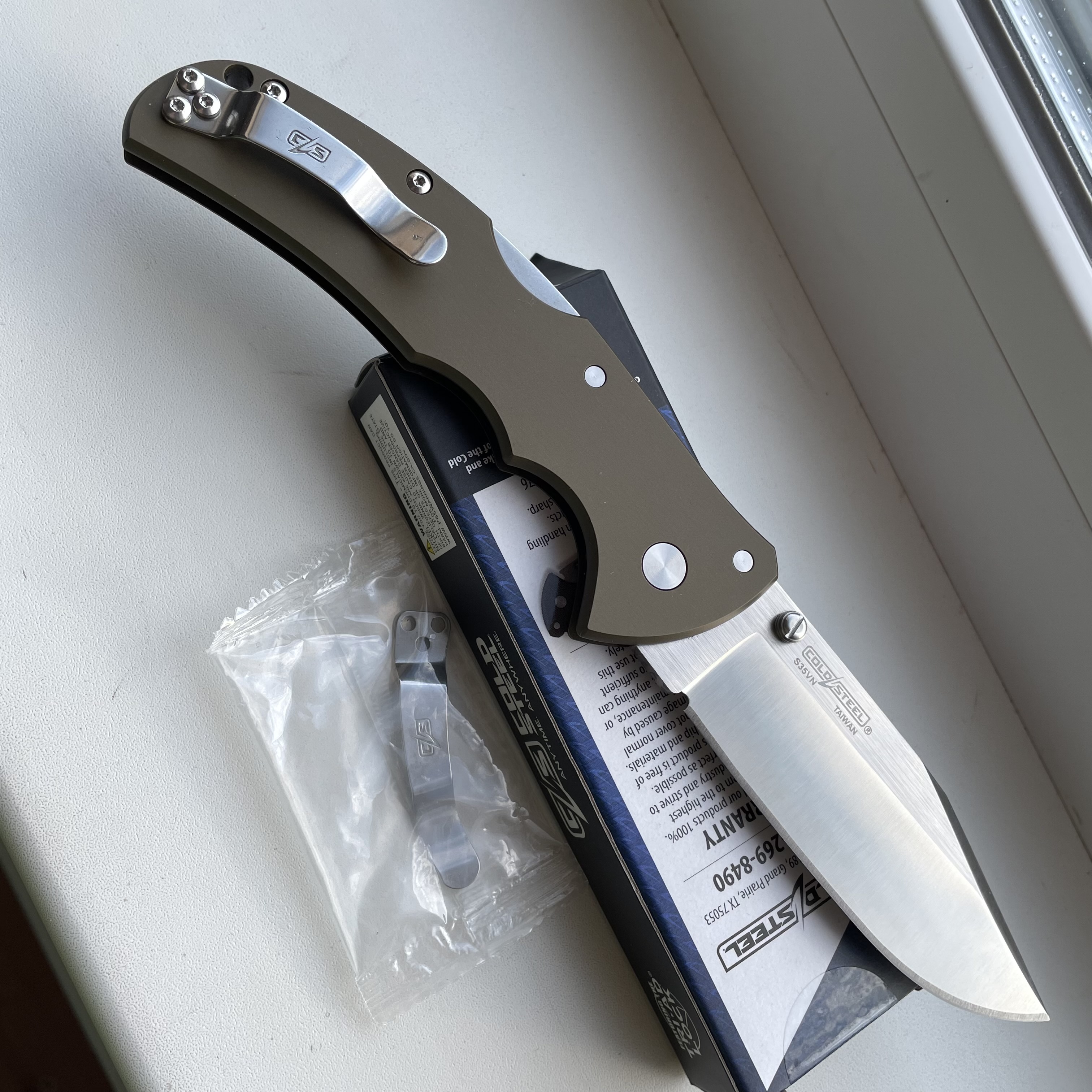 Cold Steel Code 4 Clip Point S35VN (б/в, гарний стан) Ціна - 4200грн. ТТХ: Марка сталі - S35VN Довжина клинка - 89мм Механізм фіксації - Tri-Ad Lock Товщина клинка - 3,5 мм Матеріал руків'я - авіаційний алюміній Кліпса - переставляється Вага - 122г Країна виробник - Тайвань #ColdSteel #Code4 #S35VN