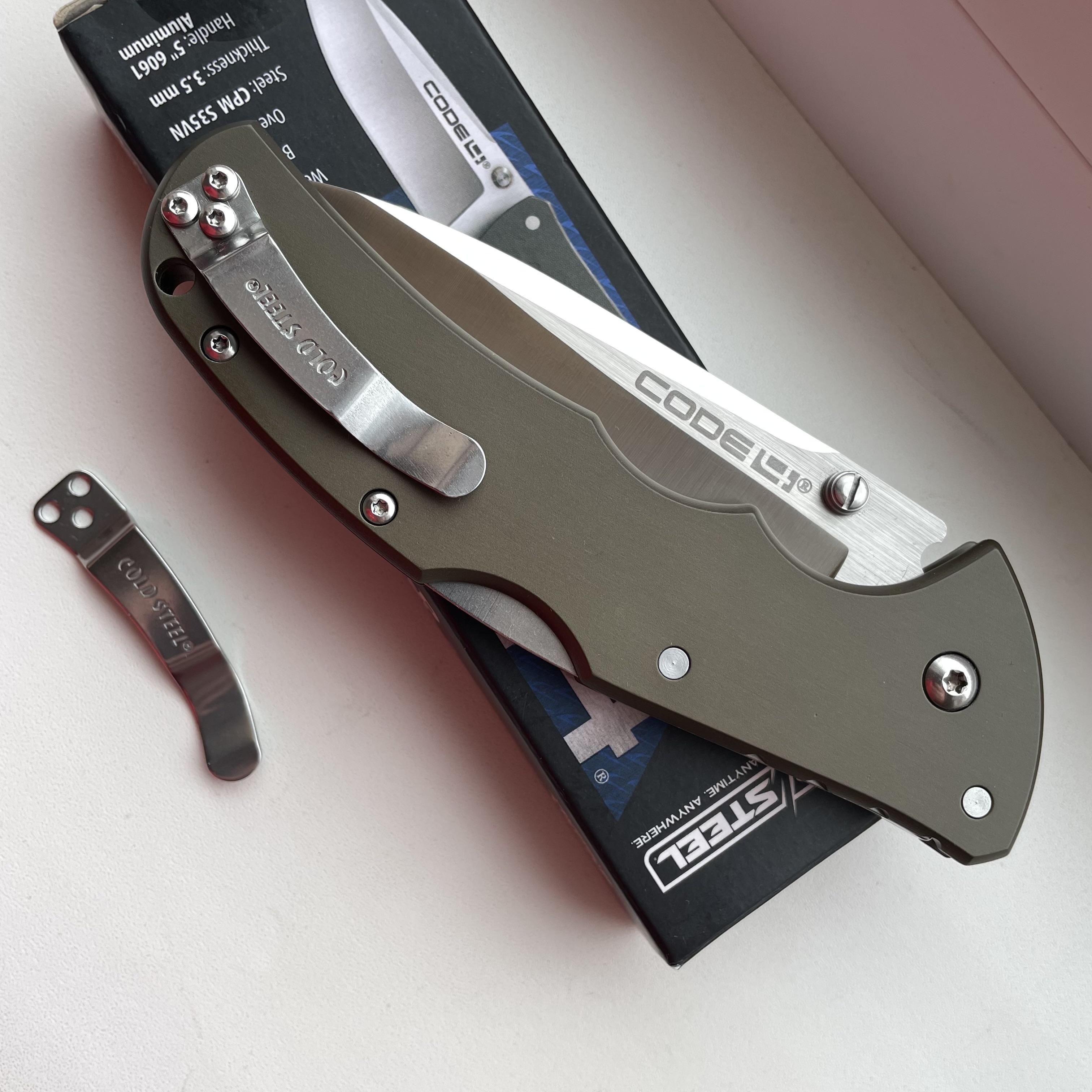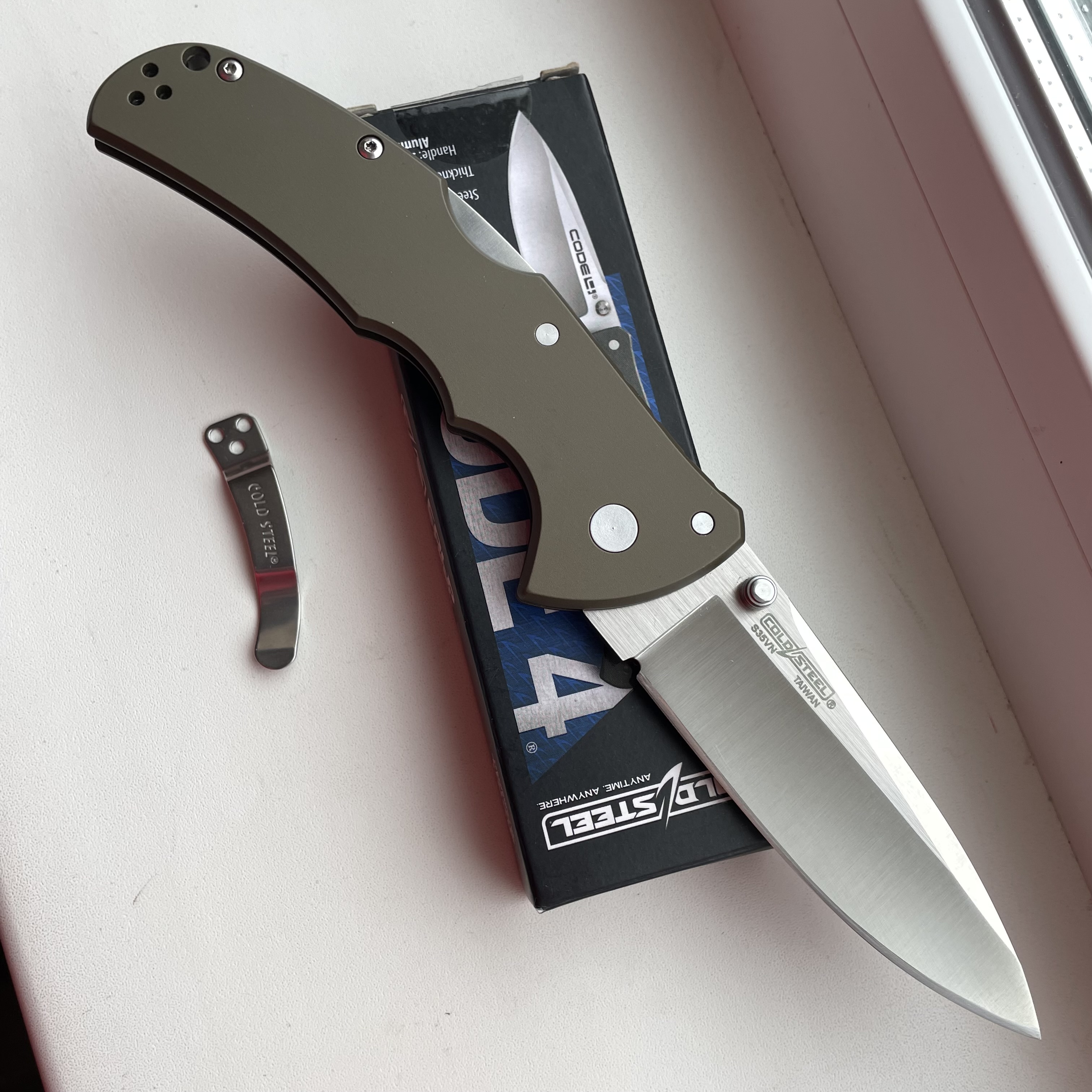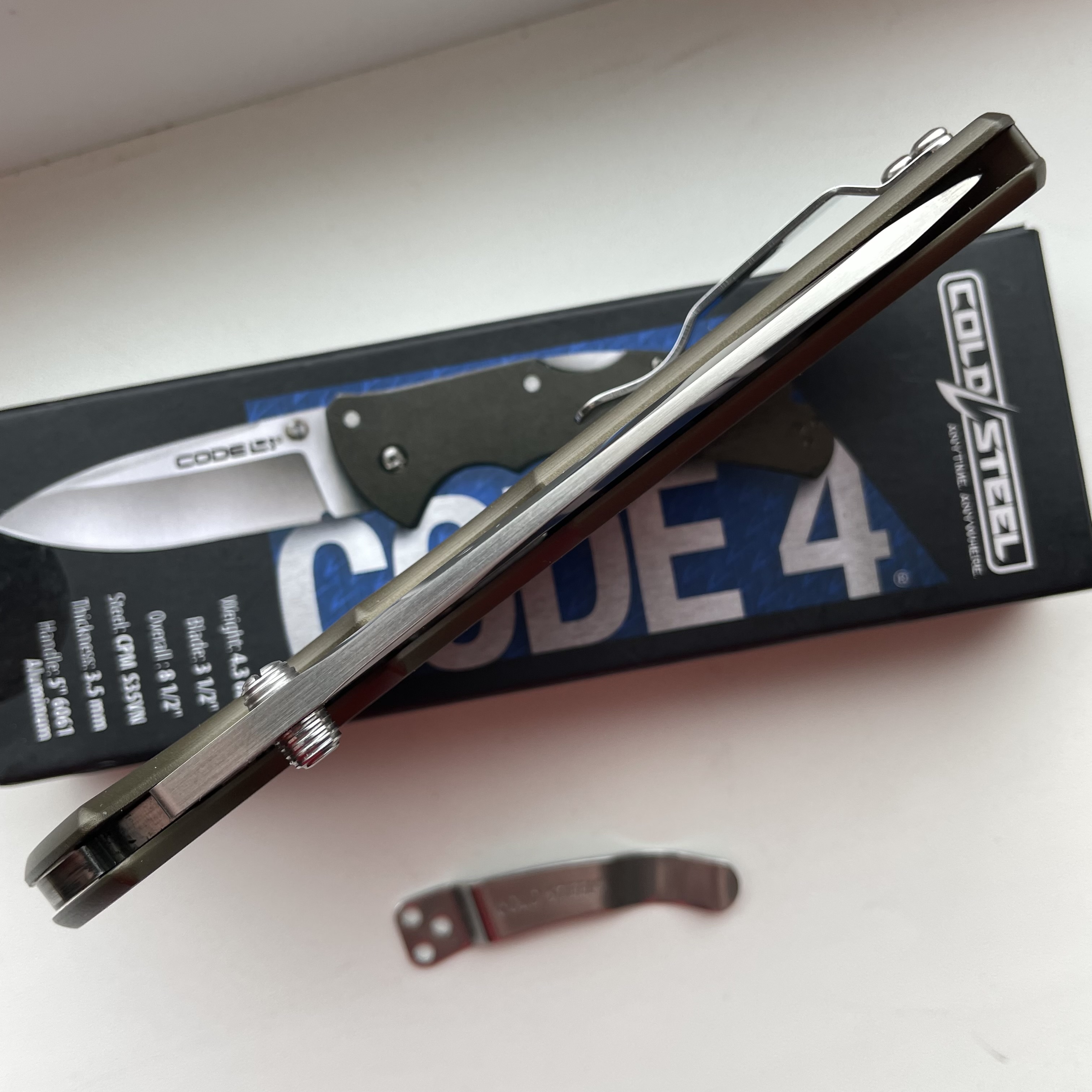 Cold Steel Code 4 Spear Point S35VN (б/в, загострен) фото додам Ціна - 4200грн. ТТХ: Марка сталі - S35VN Довжина клинка - 89мм Механізм фіксації - Tri-Ad Lock Товщина клинка - 3,5 мм Матеріал руків'я - авіаційний алюміній Кліпса - переставляється Вага - 122г Країна виробник - Тайвань #ColdSteel #Code4 #S35VN