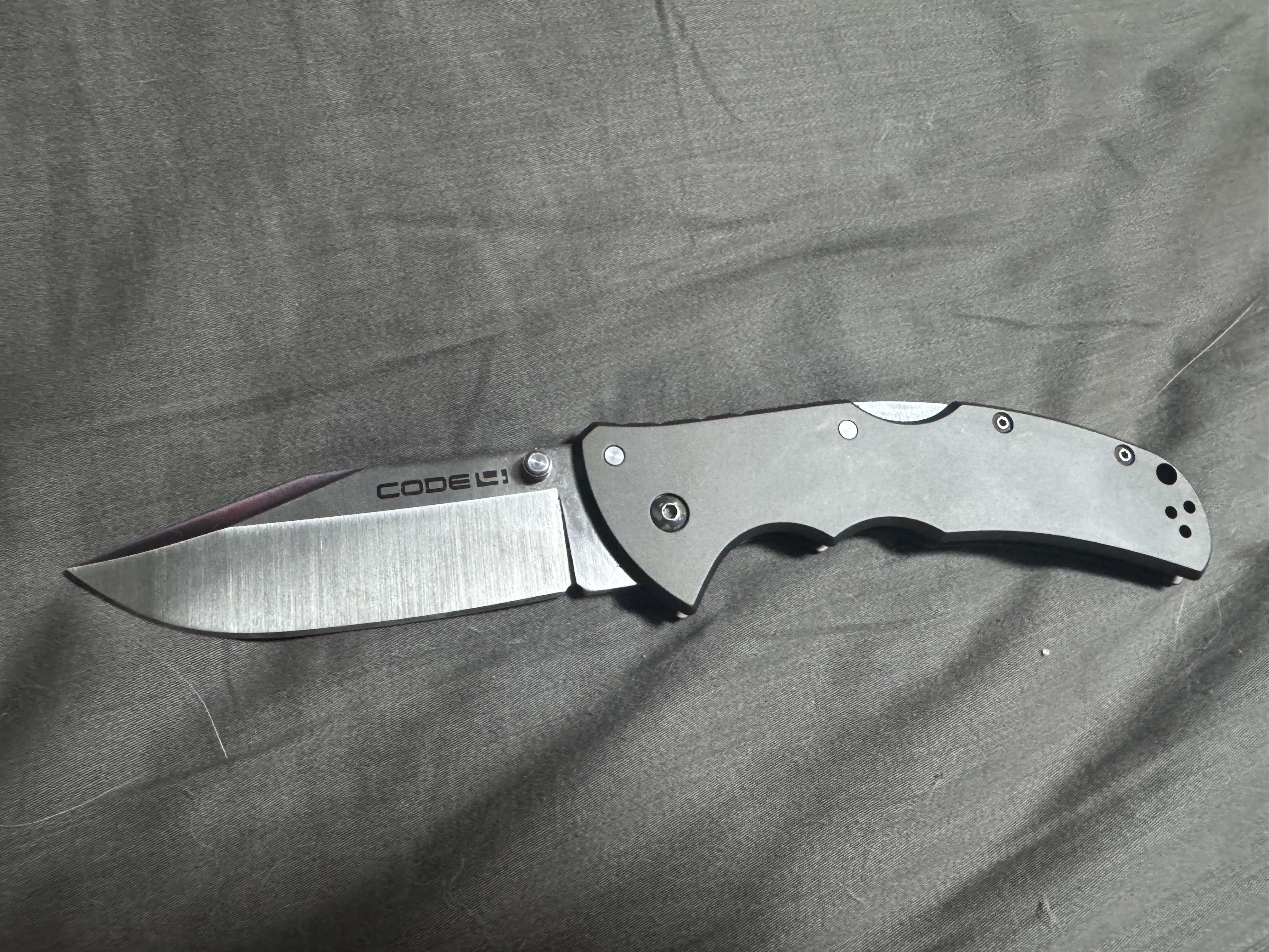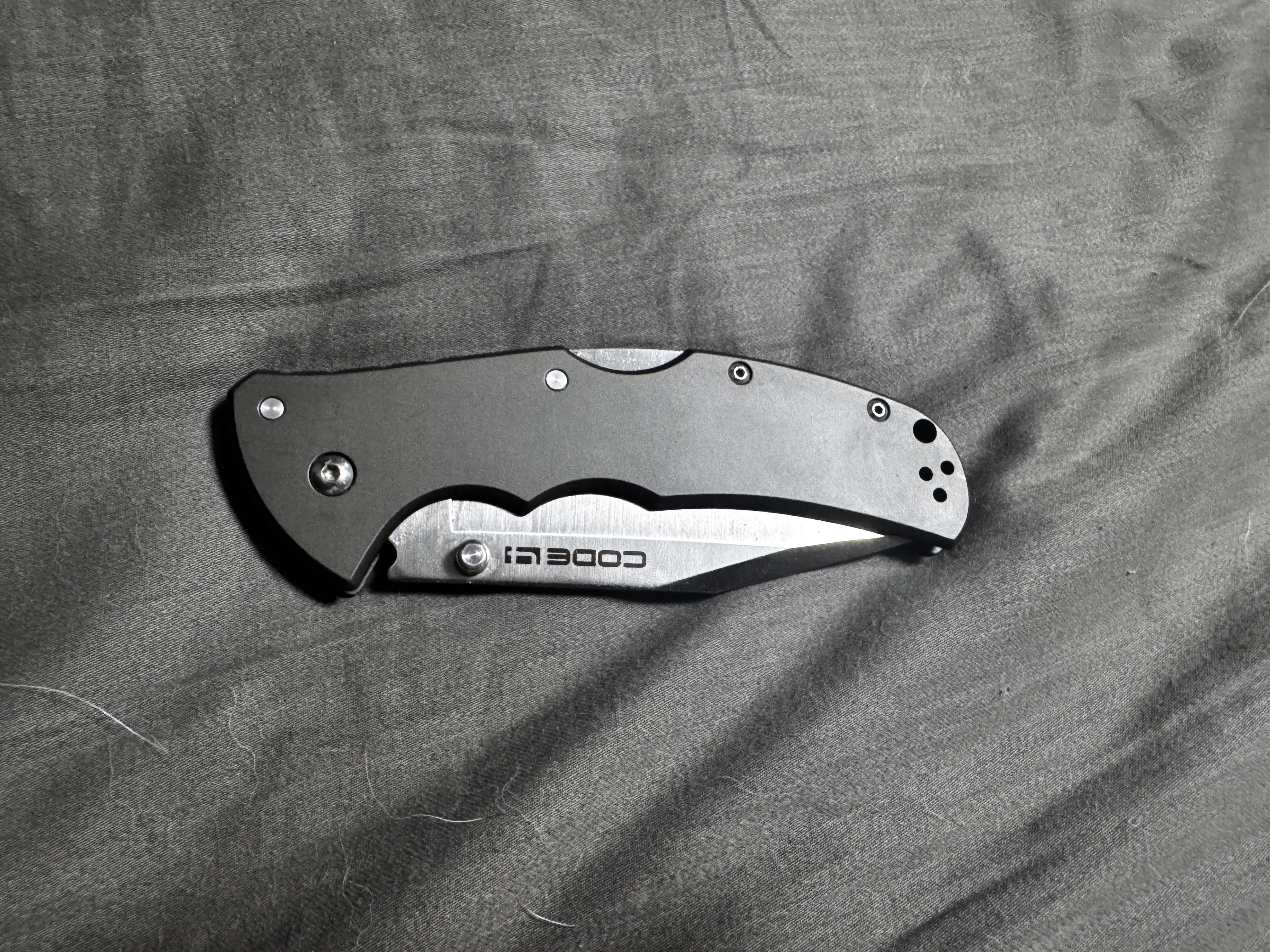 Продам Cold steel code 4 Стара версія на аус8,чудовий стан,за виключенням грубо затертого напису Taiwan Загальна довжина: 213 мм Довжина клинка: 89 мм Товщина клинка: 3,5 мм Матеріал клинка: aus-8 Обробка клинка: Satin Матеріал рукоятки: Анодований алюміній 6061-T6 Тип замка: Tri-Ad® Lock Маса: 122 г продан