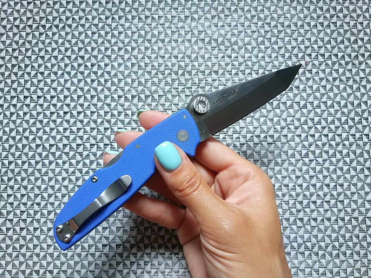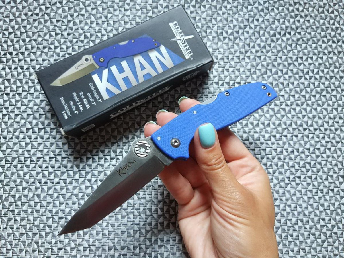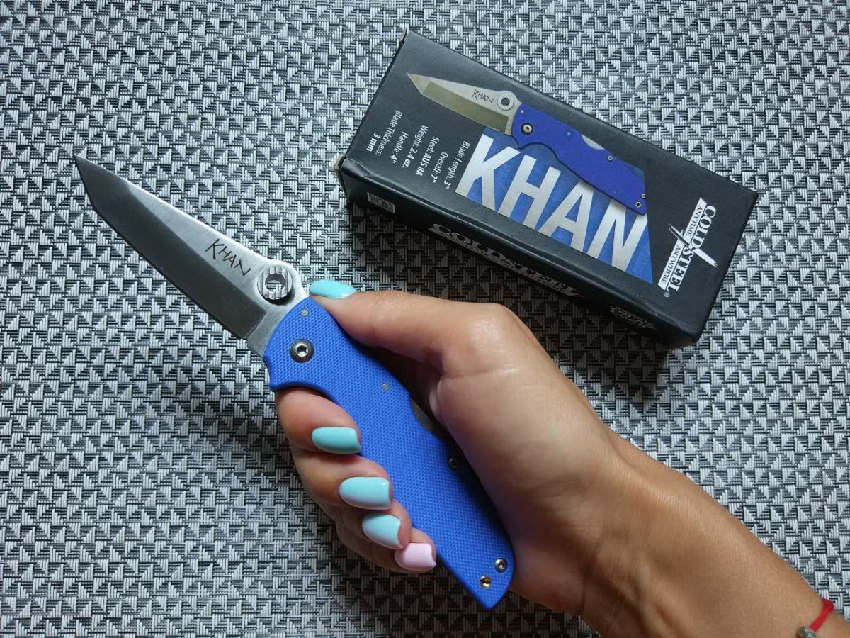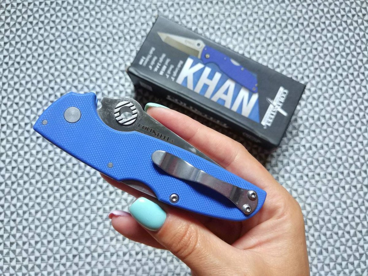 Предлагаю складной нож от компании Cold Steel (Колд Стил). Модель Khan (54T). Оригинал. В тёплую пору так не хочется обременять свои карманы многочисленными увесистыми вещами. Потому и нож на лето, как правило, подбирается лёгкий, яркий и максимально удобный - Cold Steel Khan достойный кандидат к подселению в карман лёгких брюк или пляжных шорт. Этот нож обладает компактными размерами (полная длина 178 мм), малым весом (70 г) и клинком оригинального профиля. И является одной из интересных новинок 2017 г. от Cold Steel. Клинок данного ножа изготавливается из коррозионностойкой стали AUS-8A производства японской компании Aichi Steel Works. Эту сталь любят за отличную износоустойчивость, невысокую цену, достаточную твёрдость при неплохой вязкости и хорошую коррозионную стойкость. Клинок Cold Steel Khan выполненный из этой марки стали имеет хорошие режущие свойства, долго сохраняет остроту и охотно поддаётся заточке. Как сделать клинок tanto максимально агрессивным? Нужно срезать обух по наклонной прямой линии к острию. В результате получается танто, совмещённый с профилем clip point, что на практике означает высокую проникающую способность и прочность острия. Спущен клинок от середины и за счёт небольшой толщины в обухе и тонкого сведения имеет агрессивный и контролируемый рез. Вы наверняка сразу обратили внимание на металлическую втулку, интегрированную в отверстие клинка Cold Steel Khan. Она имеет специальные ступеньки для зацепа пальца при открытии клинка и надо сказать зацеп, за счёт такого исполнения, получается отличный – раскрытие происходит контролируемо и чётко. Лёгкий и прочный материал G-10 используется при изготовлении рукояти Cold Steel Khan. Стальные лайнеры в конструкции отсутствуют, поэтому нож имеет малый вес, комфортный для ежедневного ношения. Несколько не привычно для этого производителя, но на рукояти отсутствует какая-либо злая 3D фактура, поверхность плашек просто в меру шершавая. По удобству рукоять этого ножа может сравниться с рукоятью небольшого кухонника, влипающего в ладонь при работе, отличие только в том, что в сечении она прямоугольная и имеет небольшую толщину. На брюшке рукояти Khan ближе к клинку есть подпальцевая выемка и хороший упор, предотвращающий соскальзывание руки на лезвие. Простая, в меру жёсткая клипса может быть установлена на обе стороны в положении tip up, а вот темлячное отверстие не предусмотрено. Являясь продвинутой версией Back Lock, запатентованный замок Tri-Ad Lock выдерживает огромные нагрузки. Клинок ножа Khan фиксируется самым надёжным образом и не поменяет своё положение без ведома владельца ни при каких обстоятельствах. Ссылка модели на сайте производителя: http://www.coldsteel.com/khan.html Несколько видео для наглядности: Обзоры по этой модели в сети есть, желающие могут дополнительно поискать-посмотреть. Характеристики, заявленные производителем: Длина клинка: 76,2 мм. Общая длина: 177,8 мм. Толщина клинка: 3,0 мм. Материал клинка: Japanese AUS8A. Материал накладок рукояти: G10 Blue. Механизм фиксации: TRI-AD® Lock. Клипса: Ambidextrous Pocket/Belt Clip. Вес: 70 г. Упаковка: фирменная коробка. Артикул: 54T. Производитель: Cold Steel. Страна поставщик: США. Страна изготовления: Тайвань. Не является холодным оружием по длине клинка. Нет в наличии. Стоимость: грн. Резервы в темке, вопросы, пожелания - в личку. Фото: В другие города отправляю Новой Почтой (оплата за доставку при получении, по тарифам перевоз