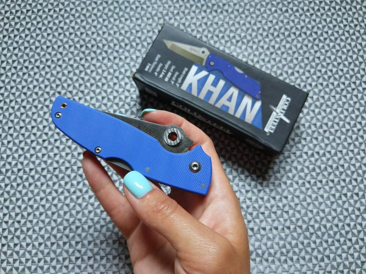 В тёплую пору так не хочется обременять свои карманы многочисленными увесистыми вещами. Потому и нож на лето, как правило, подбирается лёгкий, яркий и максимально удобный - Cold Steel Khan достойный кандидат к подселению в карман лёгких брюк или пляжных шорт. Этот нож обладает компактными размерами (полная длина 178 мм), малым весом (70 г) и клинком оригинального профиля. И является одной из интересных новинок 2017 г. от Cold Steel.