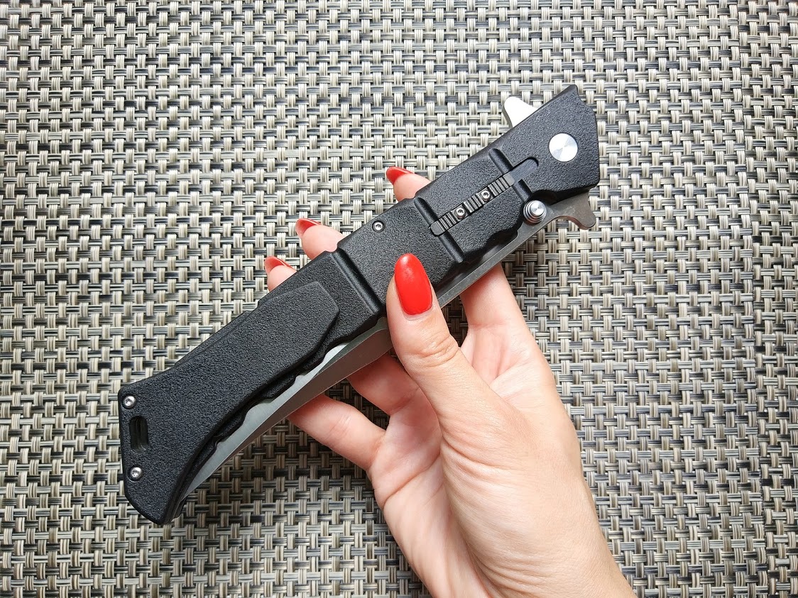 Предлагаю складной нож от компании Cold Steel (Колд Стил). Модель Luzon Large (20NQX). Оригинал. Нож Cold Steel Luzon Large это новинка 2018 года. С момента своего анонса и до самого релиза этот нож, даже не так – этот НОЖ был предметом ожидания армии почитателей «Холодной Стали». Большой Лузон поистине огромен, это реально двуручная сабля в лучших традициях компании. Если вы хоть раз доставали из кармана на глазах окружающих Ti Lite 6, то поймёте о чём речь, если нет – то вы многое потеряли, потому что это чувство трудно описать. Одним своим видом Luzon Large способен обращать в бегство причем, как союзников, таки противников J. Его клинок в 152 мм способен моментально раскрываться от одного движения пальца благодаря наличию подшипников в осевом. Ну и конечно особое удовольствие раскрыть этот флиппер в процессе извлечения из кармана, зацепившись за его край специальным выступом (рекомендую делать это аккуратно). И что самое приятное - вся эта харизма и первобытная мощь доступна за вполне вменяемые деньги. Нож рекомендуется к приобретению людям крупногабаритным и уверенным в себе, также он может занять место в вашей коллекции в качестве самого крупного и «страшного» инструмента складной конструкции J. Сталь 8Cr13MoV, применяемая при изготовлении клинка Luzon Large, привлекательна по цене и сбалансирована по своим эксплуатационным характеристикам. Множество компаний выпускают свои модели из этой стали, по праву считая её хорошо сбалансированной по сочетанию своих эксплуатационных характеристик к цене. В 2018 году и компания Колд Стил решила добавить в свой ассортимент ножи из этой стали. Клинок выполненный из этой стали способен хорошо сохранять остроту режущей кромки и отлично сопротивляется коррозии. Это уже не щучка, а настоящая матёрая щука, серьёзный и полновесный Боуи со всеми вытекающими. Сложно говорить о проникающей способности и режущих качествах при таких габаритах, потому как таким тесаком хочется просто рубить и сечь без разбора, и он это позволяет. Но желания желаниями, а в сухом остатке имеем высокие прямые спуски, адекватное сведение и агрессивное острие, что в совокупности наводит на мысли, что с качеством реза и уж тем более с уколом владелец Лузона не будет испытывать никаких проблем. Клинок тяжёлый, поэтому легко раскрывается инерционно. Имеется плавник, даже два, для открытия в одно нажатие пальцем или о край кармана, также присутствуют шпеньки, играющие ещё и роль упорной бонки, стопорящей клинок. Финиш клинка – сатин. Очень приятный на ощупь пластик рукояти – это стеклонаполненный нейлон. Накладки из этого материала имитируют своим рельефом бамбук и имеют шершавую фактуру, поэтому совершенно не скользят в ладони. Серьёзные размеры рукояти позволяют удерживать Luzon Large самыми разными хватами: ближе к клинку, ближе к навершию, прямым или обратным хватом. Под накладками сокрыты стальные лайнеры с выборками, позволяющими несколько уменьшить вес изделия. При всей своей необычности крупная широкая клипса удобна и практична – на карман садится легко, а к его краям относится бережно. Темлячное отверстие крупное и вытянутое позволяет навязать на рукоять темляк из паракорда или кожаного шнура. В модели Luzon Large специалисты Cold Steel применили распространённый замок Liner Lock, который прост надёжен и относительно не дорог. А чтобы добавить ему прочности и жёсткост