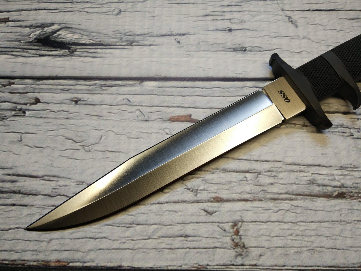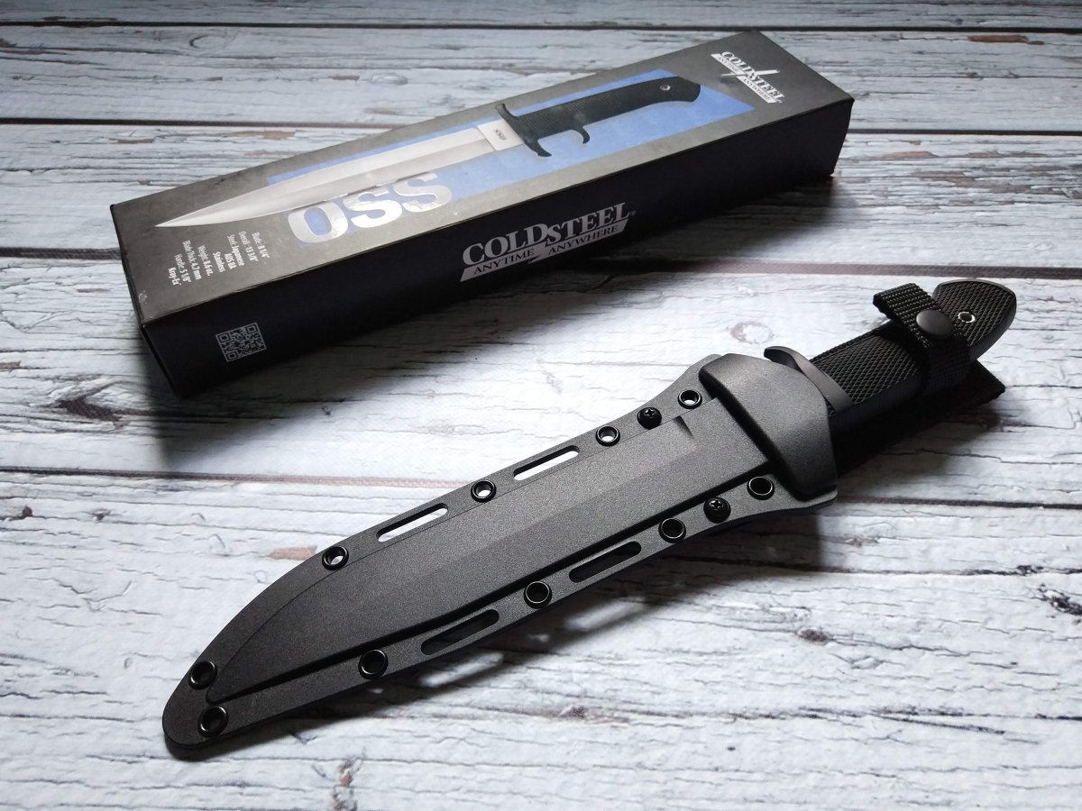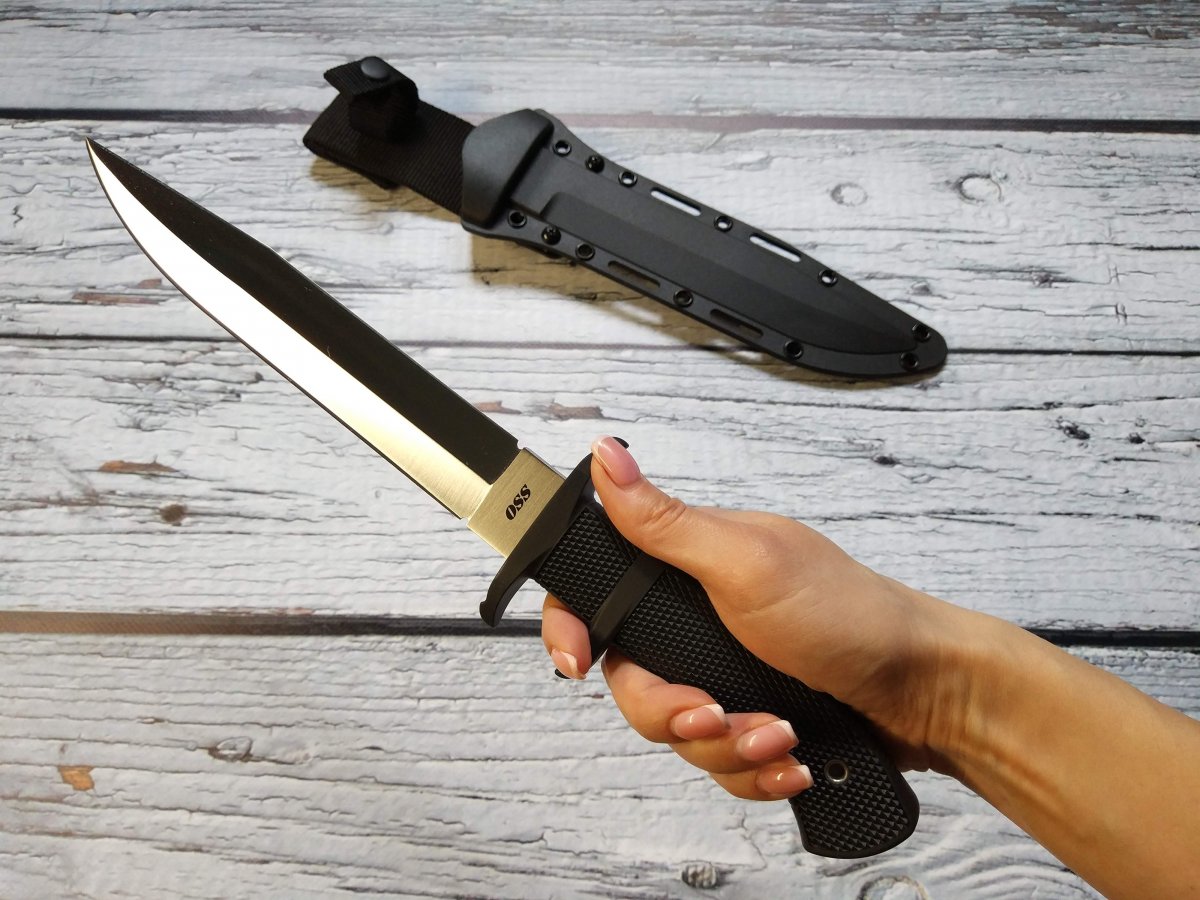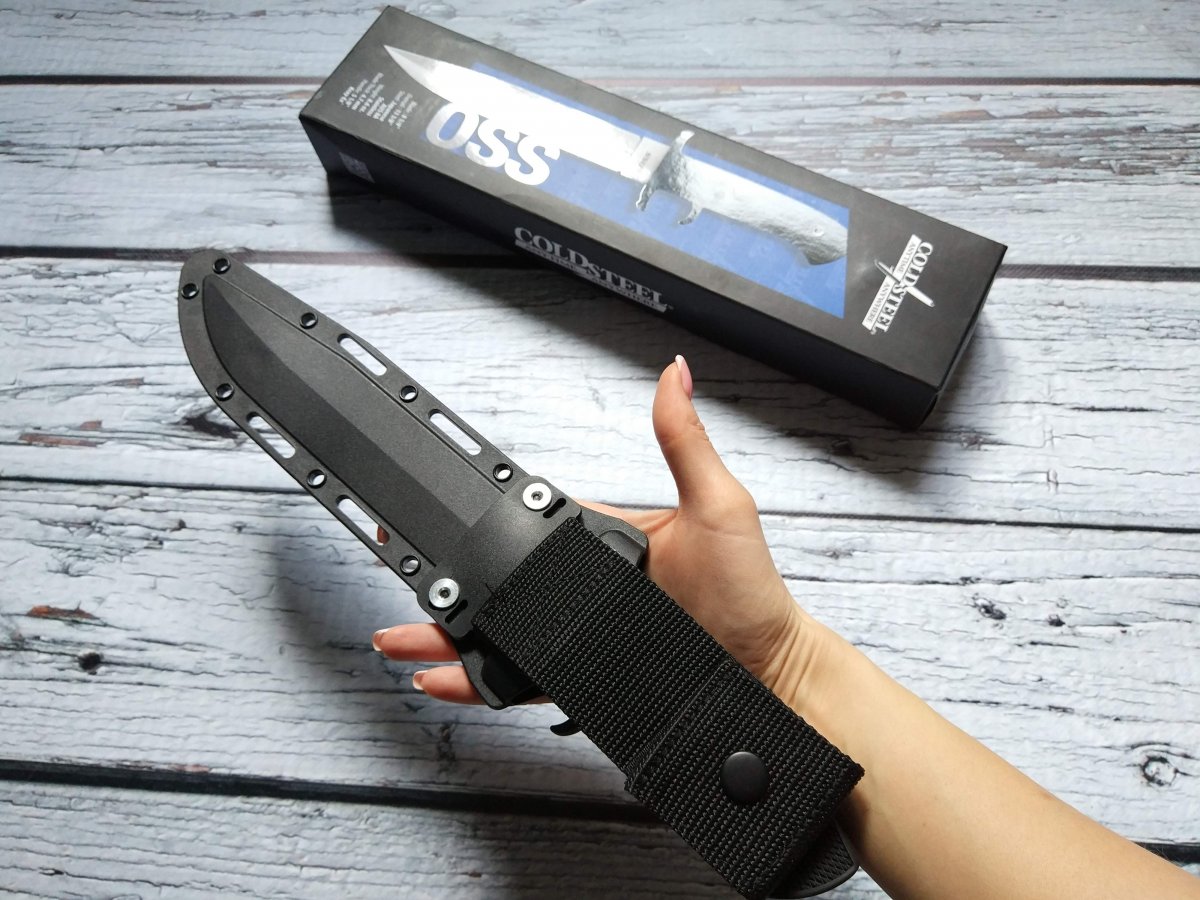 Предлагаю нож с фиксированным клинком от компании Cold Steel (Колд Стил). Модель OSS (39LSSC). Оригинал. Американская компания Cold Steel славится своими крупногабаритными ножами. Не только ими конечно, но это одно из направлений, которые там явно любят J. Работники компании, которые участвуют в съемках роликов, включая самого директора Cold Steel Лина Томпсона, довольно крупные мужчины, которые легко управляются с ножами размером выше среднего. Нож Cold Steel OSS (39LSSC) как раз из этой категории, но обладает еще некоторым рядом особенностей, которые делают его привлекательным для ценителей подобного рода изделий. Название этого ножа от Колд Стил - сокращение от Office of Strategic Services (Бюро стратегических служб) , а в просторечие обозначает тайного агента, ну типа Джеймс Бонд - OSS 007 ... J Первой особенностью модели OSS является наличие обоюдной заточки, то есть фактически это симбиоз ножа и кинжала, причем симбиоз, на мой взгляд, весьма удачный и удобный. Форма и общая геометрия позволяет выполнять очень широкий спектр работ. Рез, укол, пробивная способность – всё при нем J. Клинок данного ножа изготавливается из коррозионностойкой стали AUS-8A производства японской компании Aichi Steel Works. Эту сталь любят за отличную износоустойчивость, невысокую цену, достаточную твёрдость при неплохой вязкости и хорошую коррозионную стойкость. Клинок Cold Steel OSS (39LSSC) выполненный из этой марки стали имеет хорошие режущие свойства, долго сохраняет остроту и охотно поддаётся заточке. Второй особенностью является форма рукояти, которая, кроме «классической» гарды, имеет дополнительный упор, в который при колющем ударе упирается средний палец, а при обратном движении ножа - указательный. Рукоять вместе с упорами отлита единым целым из запатентованного материала Kray-Ex™ обладает удобными формами и крайне цепкой фактурой. Материал, из которого выполнена рукоять, тактильно напоминает резину, он как бы подлипает к рукам, особенно если рука мокрая или жирная (что относится к одной из самых важных особенностей этого материала). Так же он отлично поглощает вибрацию, поэтому нож OSS хорошо контролируется в руке, при рубке или ударах. Темлячное отверстие позволяет снабдить нож страховочным шнуром. Комбинированные ножны Cold Steel OSS представляют собой полимерный чехол (запатентованный материал Secure-Ex®), отформованный по клинку и гибкий нейлоновый подвес, регулируемый по высоте, который при желании можно и вовсе снять. Нож уверенно крепится в ножнах и дополнительно фиксируется в средней части рукояти ремешком с заклёпкой. Конструкция ножен позволяет поместить нож как на поясе, так и на элементах разгрузки, рукоятью вверх или вниз – вариантов ношения множество. Ссылка модели на сайте производителя: https://www.coldsteel.com/oss.html Видео от производителя: Ещё парочка, для наглядности: Обзоры по этой модели в сети есть, желающие могут дополнительно поискать-посмотреть. Характеристики, заявленные производителем: Длина общая: 339,723 мм. Длина клинка: 209,55 мм. Толщина клинка: 4,7 мм. Вес (без ножен): 252 г. Материал клинка: Japanese AUS 8A Stainless (58HRC). Финиш клинка: Satin. Материал рукояти: Kray-Ex™. Ножны: Secure-Ex®. Артикул: 39LSSC. Производитель: Cold Steel. Модель: OSS. Страна поставщик: США. Страна изготовитель стали: Япония. Страна изготовления: Тайвань. Упаковка: Фирменная коробка. Нет в наличии. Отправлю «для фотосессии, под залог» в размере грн. Резервы в темк