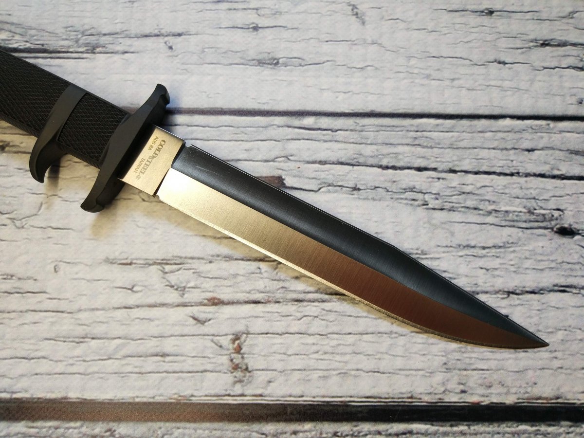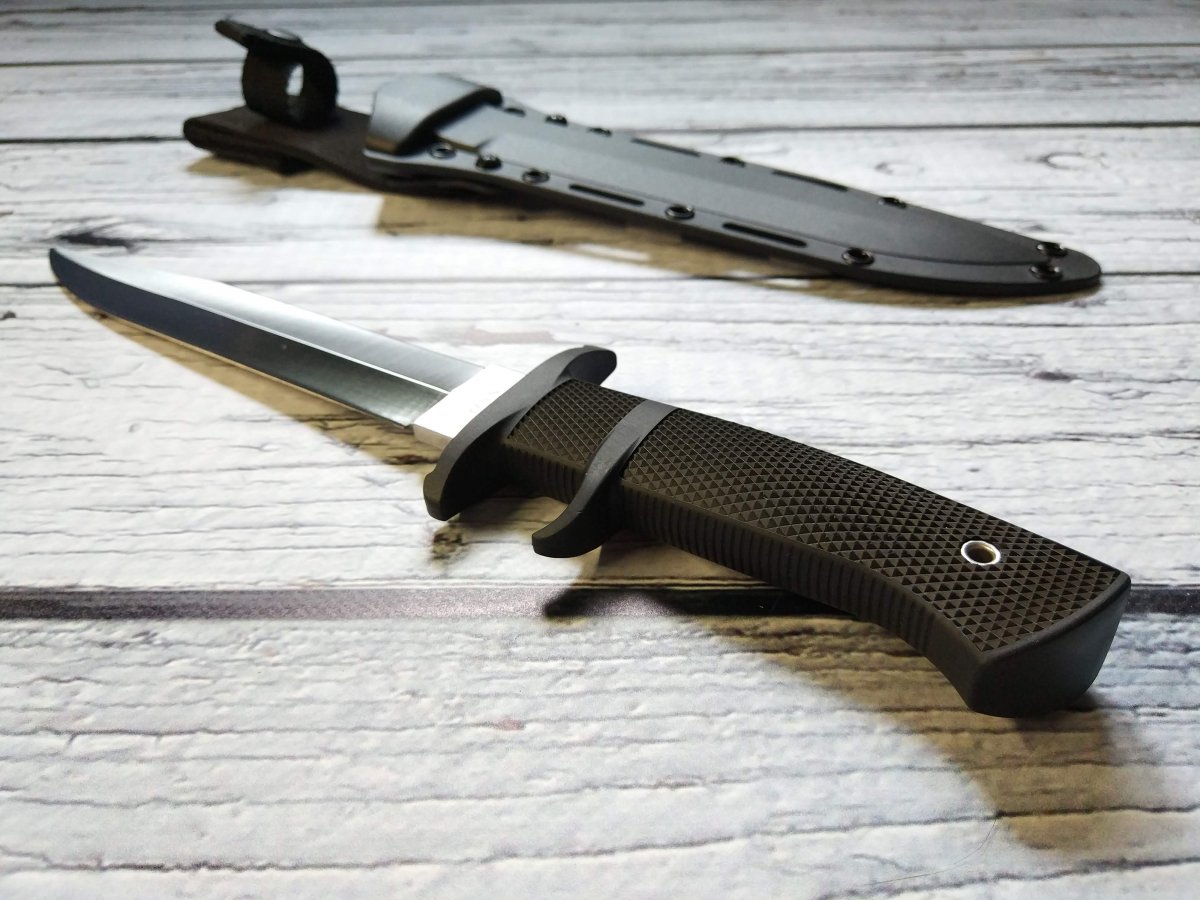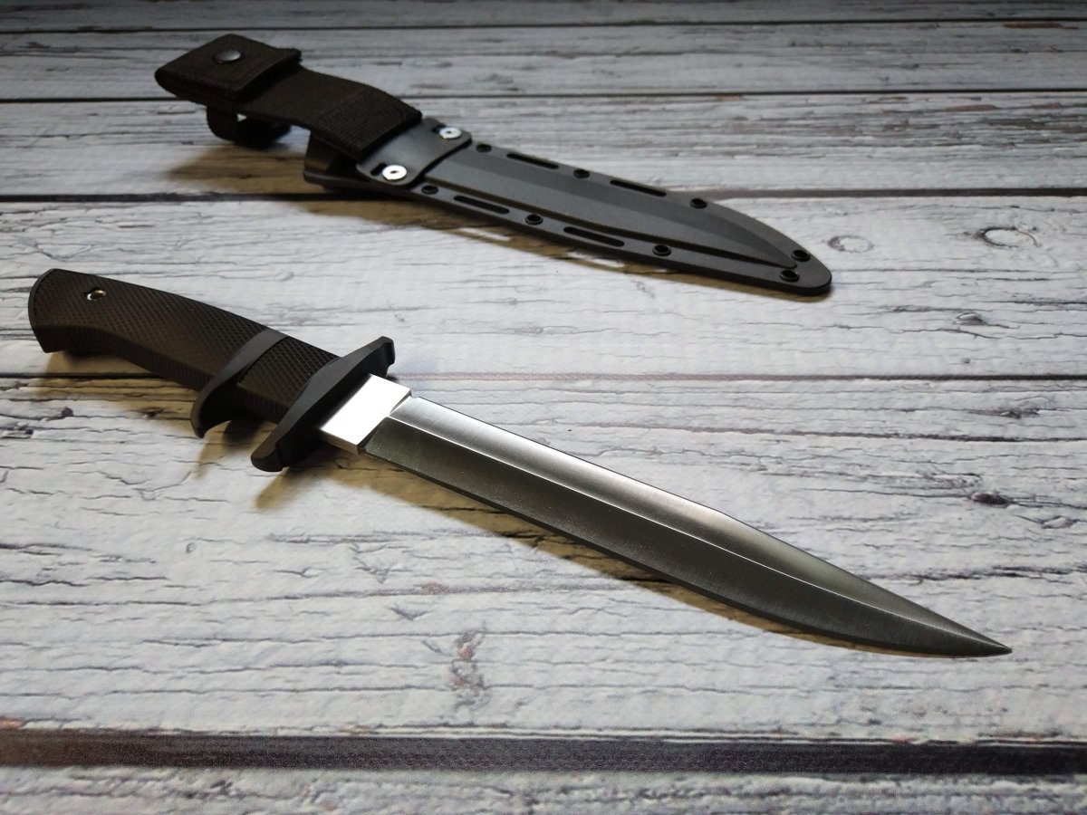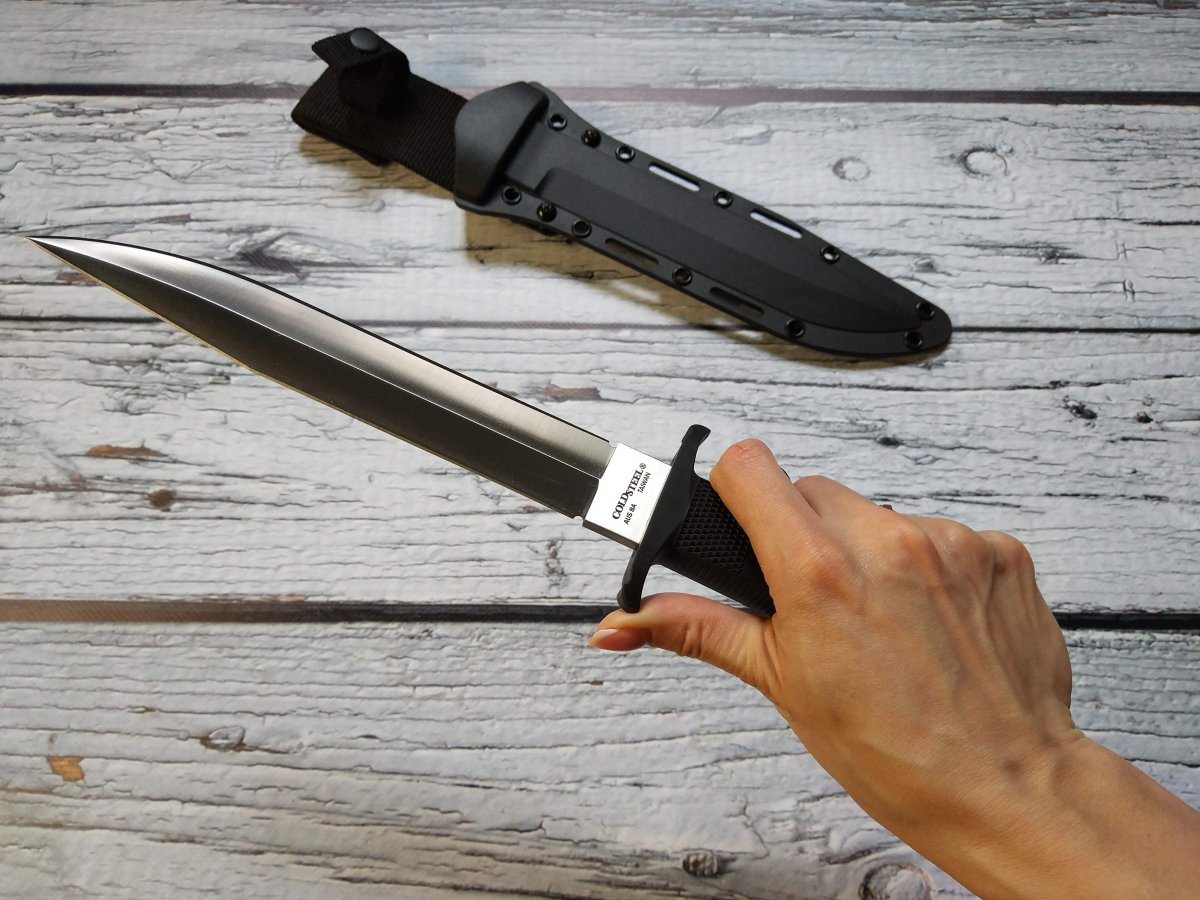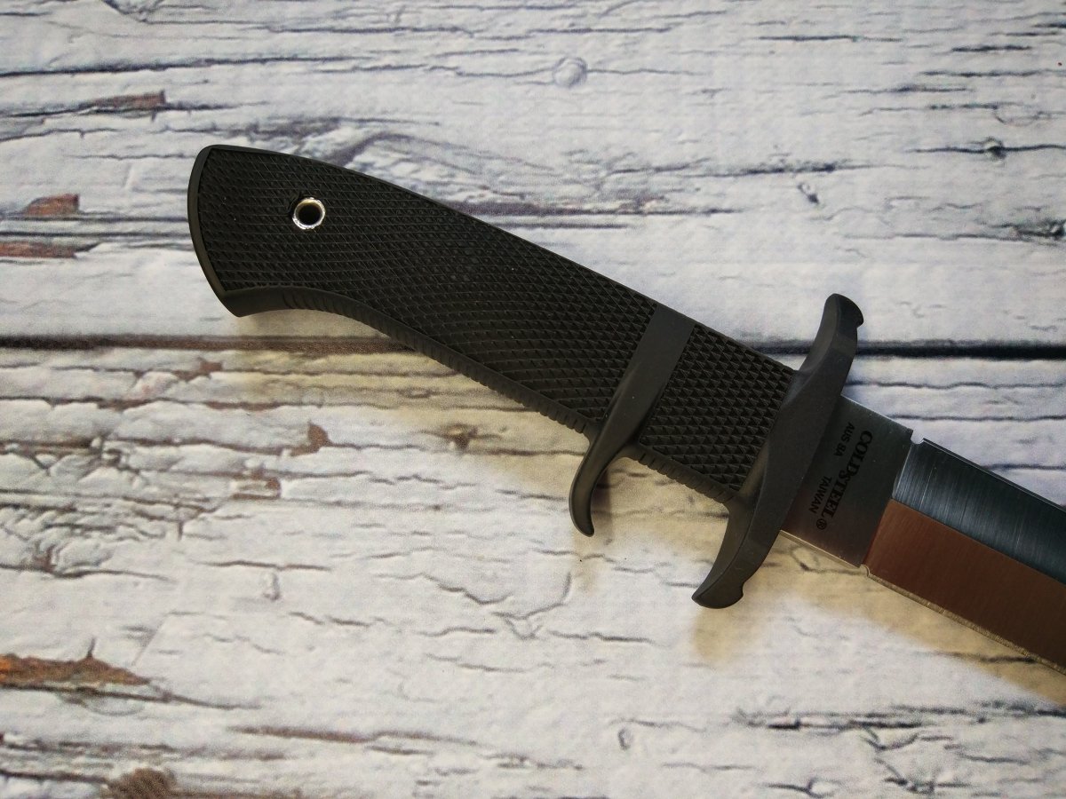 Предлагаю нож с фиксированным клинком от компании Cold Steel (Колд Стил). Модель OSS (39LSSC). Оригинал. Американская компания Cold Steel славится своими крупногабаритными ножами. Не только ими конечно, но это одно из направлений, которые там явно любят J. Работники компании, которые участвуют в съемках роликов, включая самого директора Cold Steel Лина Томпсона, довольно крупные мужчины, которые легко управляются с ножами размером выше среднего. Нож Cold Steel OSS (39LSSC) как раз из этой категории, но обладает еще некоторым рядом особенностей, которые делают его привлекательным для ценителей подобного рода изделий. Название этого ножа от Колд Стил - сокращение от Office of Strategic Services (Бюро стратегических служб) , а в просторечие обозначает тайного агента, ну типа Джеймс Бонд - OSS 007 ... J Первой особенностью модели OSS является наличие обоюдной заточки, то есть фактически это симбиоз ножа и кинжала, причем симбиоз, на мой взгляд, весьма удачный и удобный. Форма и общая геометрия позволяет выполнять очень широкий спектр работ. Рез, укол, пробивная способность – всё при нем J. Клинок данного ножа изготавливается из коррозионностойкой стали AUS-8A производства японской компании Aichi Steel Works. Эту сталь любят за отличную износоустойчивость, невысокую цену, достаточную твёрдость при неплохой вязкости и хорошую коррозионную стойкость. Клинок Cold Steel OSS (39LSSC) выполненный из этой марки стали имеет хорошие режущие свойства, долго сохраняет остроту и охотно поддаётся заточке. Второй особенностью является форма рукояти, которая, кроме «классической» гарды, имеет дополнительный упор, в который при колющем ударе упирается средний палец, а при обратном движении ножа - указательный. Рукоять вместе с упорами отлита единым целым из запатентованного материала Kray-Ex™ обладает удобными формами и крайне цепкой фактурой. Материал, из которого выполнена рукоять, тактильно напоминает резину, он как бы подлипает к рукам, особенно если рука мокрая или жирная (что относится к одной из самых важных особенностей этого материала). Так же он отлично поглощает вибрацию, поэтому нож OSS хорошо контролируется в руке, при рубке или ударах. Темлячное отверстие позволяет снабдить нож страховочным шнуром. Комбинированные ножны Cold Steel OSS представляют собой полимерный чехол (запатентованный материал Secure-Ex®), отформованный по клинку и гибкий нейлоновый подвес, регулируемый по высоте, который при желании можно и вовсе снять. Нож уверенно крепится в ножнах и дополнительно фиксируется в средней части рукояти ремешком с заклёпкой. Конструкция ножен позволяет поместить нож как на поясе, так и на элементах разгрузки, рукоятью вверх или вниз – вариантов ношения множество. Ссылка модели на сайте производителя: https://www.coldsteel.com/oss.html Видео от производителя: Ещё парочка, для наглядности: Обзоры по этой модели в сети есть, желающие могут дополнительно поискать-посмотреть. Характеристики, заявленные производителем: Длина общая: 339,723 мм. Длина клинка: 209,55 мм. Толщина клинка: 4,7 мм. Вес (без ножен): 252 г. Материал клинка: Japanese AUS 8A Stainless (58HRC). Финиш клинка: Satin. Материал рукояти: Kray-Ex™. Ножны: Secure-Ex®. Артикул: 39LSSC. Производитель: Cold Steel. Модель: OSS. Страна поставщик: США. Страна изготовитель стали: Япония. Страна изготовления: Тайвань. Упаковка: Фирменная коробка. Нет в наличии. Отправлю «для фотосессии, под залог» в размере грн. Резервы в темк