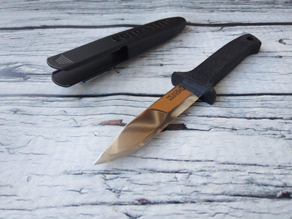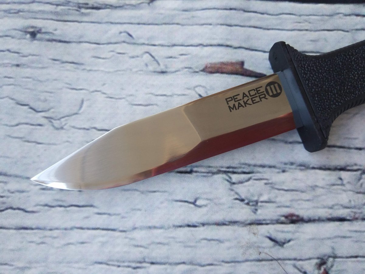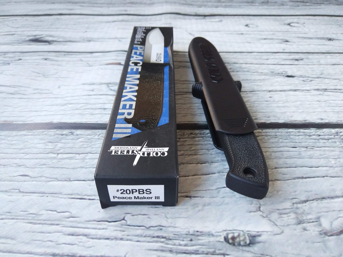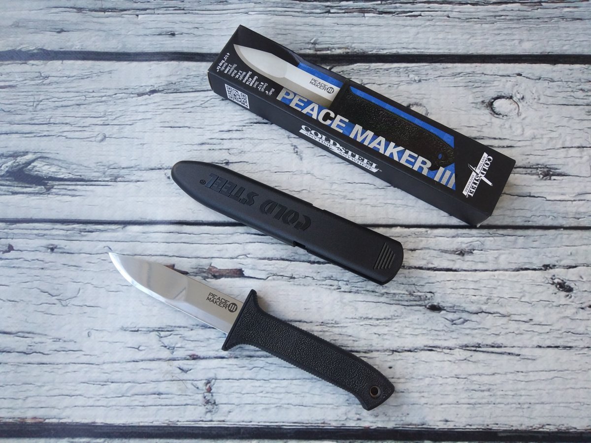 Предлагаю нож с фиксированным клинком от компании Cold Steel (Колд Стил). Модель Peace Maker III (20PBS). Оригинал. Нож Peace Maker III можно назвать симбиозом небольшого «аутдорного» и «boot knife» ножей. Многолетний опыт в работе с различными марками стали и материалами для рукояти позволил создать легкий, прочный и доступный по цене нож с фиксированным клинком, изготовленным из немецкой нержавеющей стали марки 4116. Длина, форма и «скандинавская» заточка клинка делают Peace Maker 3 хорошим вариантом для использования в полевых условиях, а компактность и форма ножен, при необходимости, обеспечат скрытое ношение. Рукоять ножа выполнена из прочного и комфортного в удержании эласто-полимера Kray-Ex™. Упор (гарда) сделан надежным и крупным и отлит единым целым с телом рукояти, обеспечивая максимальную безопасность даже при тяжелых работах. Нож комплектуется пластиковыми (симметричными) ножнами Secure-Ex®, которые компактны и, при необходимости легко моются-сушатся. Кроме того, на ножны установлена съемная стальная клипса, позволяющая закрепить ножны на ремне, ботинке или другом снаряжении. Ссылка модели на сайте производителя: https://www.coldsteel.com/peace-maker-iii-20pbs Видео (от производителя): Еще одно, для наглядности: Обзоров и тестов по этой модели в сети довольно много, желающие могут дополнительно поискать-посмотреть. Характеристики, заявленные производителем: Длина клинка: 101,6 мм. Общая длина: 215,9 мм. Толщина клинка: 2,5 мм. Материал клинка: German 4116 Stainless Cryo Quenched. Материал рукояти: Long Kray-Ex™. Материал ножен: Secure-Ex®, съемная стальная клипса. Вес (с ножнами): 123 г. Упаковка: Фирменная коробка. Артикул: 20PBS. Производитель: Cold Steel. Модель: Peace Maker III. Страна поставщик: США. Страна изготовления: Тайвань. Страна изготовитель стали: Германия. Не является холодным оружием по толщине клинка. Нет в наличии. Стоимость: грн. Резервы в темке, вопросы, пожелания - в личку. Фото: В другие города отправляю Новой Почтой (оплата за доставку при получении, по тарифам перевозчика). Оплата на карту Приват Банка. Смотрите и другие мои темки о продаже: Складной нож Cold Steel Rajah 3 Складной нож Kershaw Launch 3 Blue Нескладной нож CRKT Strafe Нескладной нож Cold Steel Master Hunter Складной нож Kershaw Leek Складной нож SOG Flashback Складной нож Cold Steel Counter Point 1 Складной нож Kershaw DuoJet Нескладной нож Gerber Mark 2 Нескладной нож Cold Steel Steel Tiger Складной нож Kershaw Natrix Нескладной нож CRKT Carson F4 Нескладной нож Cold Steel Counter Tac 2 Складной нож Kershaw Passage Складной нож Schrade SCHA5 Складной нож Cold Steel Luzon Medium Складной нож Kershaw Tension Складной нож CRKT Directive Нескладной нож Cold Steel Tanto Spike Складной нож Kershaw Thistle Складной нож CRKT Buku Складной нож Cold Steel Ti-Lite IV Складной нож Kershaw Injection 3.5 Нескладной нож Ka-Bar EK44 Складной нож Cold Steel Code 4 Spear Point (58PS) Складной нож Kershaw Natrix Black Складной нож Taylor Brands LLC (Schrade) SCH503RB Складной нож Cold Steel Recon 1 Spear Point Складной нож Kershaw Fraxion Складной нож Smith&Wesson M&P M2.0 Dual Action Складной нож Cold Steel Pro Lite Sport (Blue) Нескладной нож Cold Steel Counter Tac 1 Складной нож Buck 110 Folding Hunter Складной нож Kershaw Leek Navy Blue Складной нож Cold Steel Ti-Lite VI Складной нож Schrade SCH510 Нескладной нож Cold Steel Safe Maker 1 Складной нож Kershaw Natrix Tan BW Нескладной нож CRKT HWY Rescue Складной нож Cold Steel Khan Складной нож Kershaw Entropy Складной нож Cold Steel Finn Wolf Полировочная паста ТМ Flitzh Складной нож Kershaw Link Tanto Gray Нескладной нож Cold Steel G.I. Tanto Складной нож Kershaw FreeFall (3840) Складной нож Schrade SCHA3 Нескладной нож Cold Steel Kobun Складной нож Kershaw Shuffle Purple BW Складной нож Schrade SCHA13B Складной нож Cold Steel Recon 1 Tanto Складной нож Kershaw 