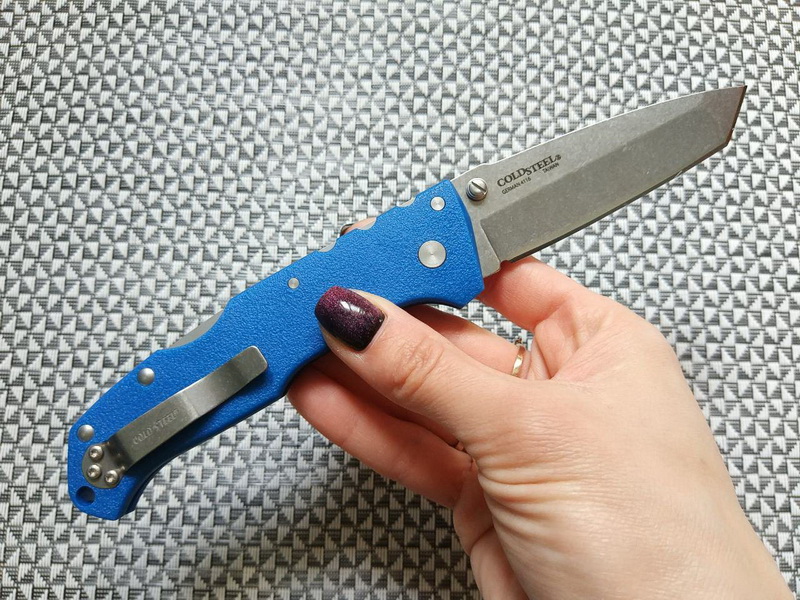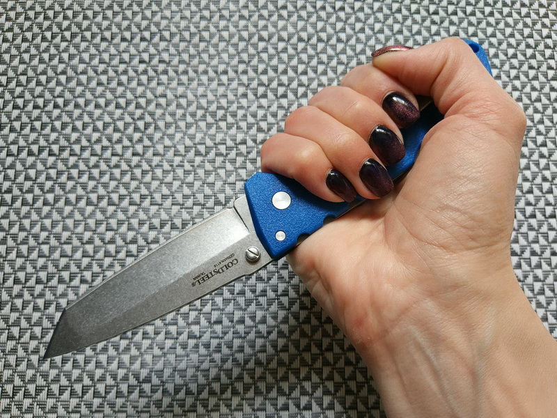 Предлагаю складной нож от компании Cold Steel (Колд Стил). Модель Pro Lite Tanto (Blue) 20NSTLU. Оригинал. Новинка от Cold Steel 2017 года, нож Pro Lite Tanto Blue – в ярком синем цвете! Этот нож был разработан с одной целью – дать качество Колд Стил в доступном ценовом сегменте. Pro Lite Tanto Blue крепко сбитый «работяга», доступный, надёжный и неприхотливый. Его место в рабочем комбинезоне, повседневных джинсах, а может и в рюкзаке студента. Для того чтобы стать верным союзником при выполнении ежедневной работы нож Cold Steel Pro Lite Tanto Blue наделён всеми необходимыми качествами - прочная сталь, не требующая к себе повышенного внимания, практичный и прочный материал рукояти, надёжный замок и небольшой вес. Дизайнер этой серии ножей – Эндрю (Андрей) Демко (Andrew Demko). Старая, добрая сталь 4116 Krupp служит материалом для клинка Pro Lite. Мартенситная нержавеющая сталь 4116 Krupp производится фирмой Тиссен Крупп Нироста (Thyssen Krupp Nirosta). Сталь содержит в своём составе: Углерод – 0,45%, Хром – 14,00%, Ванадий – 0,10%, Молибден – 0,7%, и по свойствам наиболее схожа с Sandvik 12C27. А дополнительная крио обработка, которой подвергает эту сталь компания Колд Стил, позволяет «вытащить максимум возможного» из неё. Клинок Pro Lite Tanto выполненный из стали 4116 обладает высокой коррозионной стойкостью, механической прочностью и стойкостью режущей кромки. Как следствие - нож долгое время остаётся острым, а режущая кромка не требует больших усилий для восстановления рабочей остроты. Клинки с профилем Tanto, активно продвигаемые Cold Steel, отличаются высокой прочностью острия и хорошей пробивной способностью. Слабовогнутые спуски, высотой в половину клинка позволяют ножу Pro Lite Tanto отлично резать. В целом танто-клинок «Про Лайта» вполне универсален и хорошо справляется с большинством повседневных задач. Наличие «дульки» (небольшая выемка, разделяющая пяту клинка и режущую кромку) облегчит жизнь владельца и позволит с удобством точить и править клинок. За открытие ножа отвечает двусторонний шпенёк, учитывая общую симметричность ножа Cold Steel Pro Lite Tanto, открывать его удобно как левой, так и правой рукой. Существует множество практичных современных материалов используемых для изготовления рукоятей складных ножей. Среди них пластик армированный стекловолокном Glass Filled Nylon (GFN) – это недорогой материал, обладающий определённой гибкостью, что положительно сказывается на стойкости к ударным нагрузкам. Рукоять ножа Cold Steel Pro Lite выполнена из такого пластика и текстурирована для лучшего сцепления с ладонью. В сечении, форма рукояти ближе к овальной, достаточная толщина обеспечивает хорошее заполнение ладони и надёжное удержание. Так же положительно сказывается на эргономике и подпальцевая выемка, вмещающая в себя два пальца. Клипса с логотипом Cold Steel может быть установлена на обе стороны рукояти в положении «tip up». Для расширения функционала в рукояти Cold Steel Pro Lite Tanto имеется темлячное отверстие. Одним из важнейших элементов складного ножа (если не самым важным) является элемент конструкции или иногда даже целый механизм запирающий клинок в открытом положении. Замок именуемый Tri-Ad Lock обеспечивает надёжную фиксацию клинка Pro Lite. Являясь продвинутой версией Back Lock, запатентованный Cold Steel замок Tri-Ad Lock выдерживает огромные нагрузки в разы превышающие рабочие. Ссылка модели на сайте производителя: http://www.coldsteel.com/pro-lite-tanto-blue.html Пара видео для наглядности