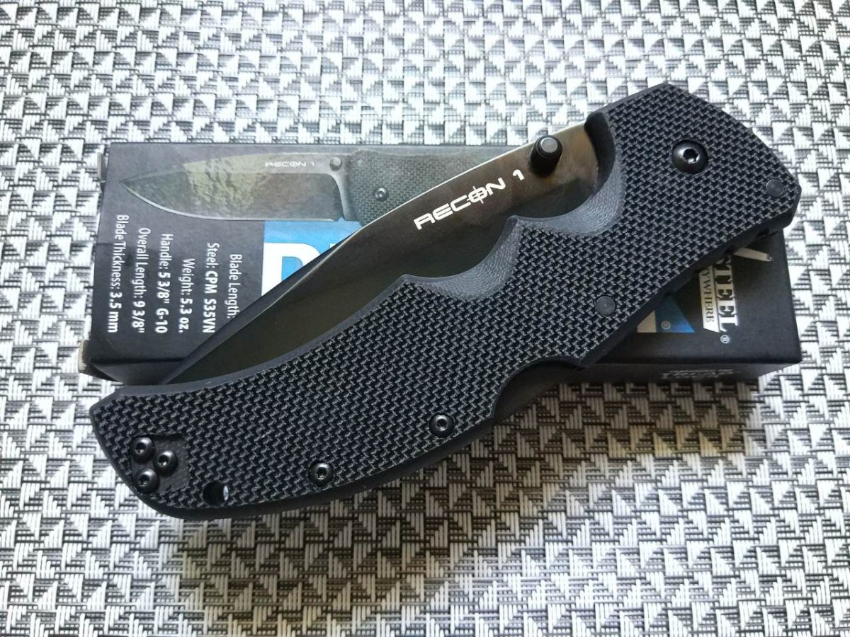 Предлагаю складной нож от компании Cold Steel (Колд Стил). Модель Recon 1 Spear Point Plain Edge (27BS) CPM S35VN. Оригинал. Ножи Cold Steel серии Recon-1 представители «старой школы» Колд Стил. Эта серия в различных вариантах выпускается более 10 лет (что, на мой взгляд, является очень хорошим показателем и о многом может «сказать»). Купить нож Cold Steel из серии Recon 1 имеет смысл в том случае, если вам нужен по-настоящему крепкий и не маленький «фолдер». Представленная версия, это новинка 2018 года. Основное отличие от предшественников - используемая сталь, поэтому остановимся на ней немного подробнее. Компания Crucible Indusriesl в Нью-Йорке создала сталь CPM-S30V как сталь, специально разработанную для ножевых клинков. Впервые усилия ножевой промышленности были направлены на достижения такой цели. Вскоре после выпуска CPM-S30V Chris Reeve (Chris Reeve Knives) начал работать с Dick Barber, металлургом в Crucible Steel (в настоящее время). Цель состояла в том, что бы создать еще лучшую версию стали, которая имела бы лучше механические свойства и другие полезные качества. Результатом нескольких лет тестирования и исследования и стала сталь CPM-S35VN. CPM S35VN является мартенситной нержавеющей сталью и разработана как улучшенный вариант CPMS30V по ударной вязкости. Кроме того, данную сталь легче обрабатывать и полировать, чем CPMS30V. Химический состав CPM S35VN сбалансирован таким образом, чтобы образовались карбиды ниобия ванадия и хрома. Это делает CPM S35VN на 15-20% тверже, чем CPMS30V без потери износостойкости. Улучшенная прочность CPMS35VN делает ее более устойчивой к выкрашиванию. Карбид ванадия и карбид ниобия по износостойкости эффективнее, чем карбид хрома, поэтому сталь лезвия лучше держит кромку по сравнению с обычными «высокохромированными» сталями. Сталь изготавливается по технологии аморфных металлических сплавов, более известной среди производителей и любителей ножей под аббревиатурой СРМ (Crucible Particle Metallurgy). Процесс CPM позволяет производить очень однородную, высококачественную сталь, которая характеризуется превосходной стабильностью, однородностью и жесткостью по сравнению со сталями традиционного производства плавок. В остальном же это «старый, добрый» и знакомый многим - «Рекон». Нож Recon 1 Spear Point позиционируется производителем как тактический складень высокой надежности. В нем использован мощнейший замок от Cold Steel под названием TRI-AD® Lock. Нож Recon 1 можно использовать как в городе, так и вне его. Клинок модели Recon 1 в вариации спир поинт обладает отменной проникающей способностью, за счёт своего профиля, а толщина клинка в 3,5 мм, обеспечивает приличный запас прочности. Высокие спуски клинка в сочетании с используемой сталью являются залогом отличного реза. Финиш клинка - черное DLC покрытие. Рукоять этого ножа имеет характерный изгиб и ярко выраженные подпальцевые выемки. Рукоять одинаково удобна и для работы голой рукой и в перчатке. Конструктив ножа позволяет пользоваться им как правше, так и левше (что для компании явление уже привычное), нож абсолютно симметричен. Ссылка модели на сайте производителя: http://www.coldsteel.com/recon1-spear-point-s35vn.html Несколько видео по этой серии от производителя: Обзоров, видео и разных тестов по этой серии ножей очень и очень много, желающие могут дополнительно поискать-посмотреть. Характеристики, заявленные производителем: Длина клинка: 101,6 мм. Общая длина: 238,1 мм. Толщина клинка: 3,5 мм. Материал клинка: Cr