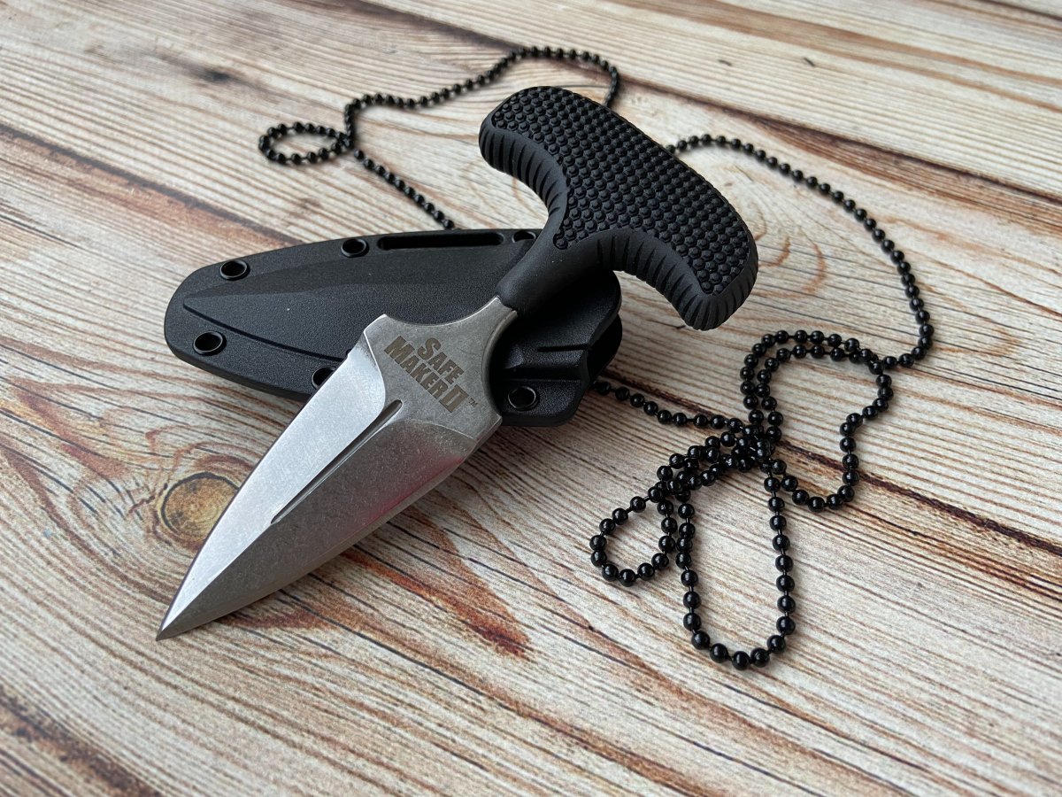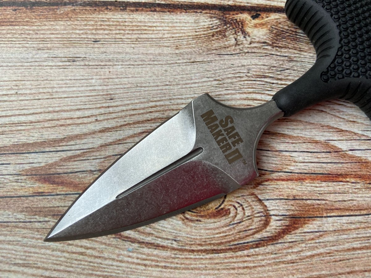 Предлагаю нож с фиксированным клинком от компании Cold Steel (Колд Стил). Модель Safe Maker II (12DCST). Оригинал. Safe Maker 2 относится к ножам так называемого тычкового типа (push dagger). Это ножи Т-образной формы, с рукоятью, расположенной перпендикулярно клинку. Поэтому нож в руке лежит таким необычным образом: лезвие находится между пальцев впереди кулака. Ножи тычкового типа были изобретены и широко использовались в эпоху золотой лихорадки XIX столетия. Основное их назначение — оружие самообороны. В настоящее время у профессиональных военных они пользуются популярностью в качестве «оружия последнего шанса». Благодаря своим компактным размерам, эти ножи особенно удобны для скрытого ношения. Компания Cold Steel достаточно долго экспериментировала с конструкцией тычковых ножей, и серия Safe Maker стала квинтэссенцией наработанного опыта производства и использования ножей данного типа. Легкий, компактный, надежный, незаметный, до того момента когда он Вам понадобится. На мой взгляд, это один из лучших, если не лучший нож такого типа на данный момент на рынке. Клинок, стебель и основа рукояти изготовлены целиком из одного куска стали AUS 8A, что, в сочетании с толщиной в 4,6 мм, обеспечивает конструкции необходимую прочность. Рукоять залита кратоном (Kray-Ex™), демонстрирующим отличные амортизационные свойства. Также кратон распространяется и на часть стебля, соединяющего клинок с рукоятью (на металлической части «рукояти» так же сняты все фаски и все максимально «сглажено и закруглено», а сам «стебель» в сечении овал, что позволяет максимально обезопасить пальцы при уколе и резе), текстура рукояти обеспечивает надежную фиксацию ножа в руке. Клинок Safe Maker 2 обоюдоострый, кинжального типа, со «стамесочной» заточкой. Ножны из пластика (Secure-Ex™) комплектуются съемной клипсой, позволяющей закрепить их на поясе, ботинке или любом другом снаряжении. Так же в комплекте идет цепочка для ношения на шее. Ножны компактны, что обеспечивает возможность максимально срытого ношения. В 2021 году было изменено клеймо на клинке. Ссылка модели на сайте производителя: https://www.coldsteel.com/safe-maker-ii/ Видео (от производителя): Еще одно, для наглядности: По этой модели обзоров, видео и тестов в сети довольно много, желающие могут дополнительно поискать-посмотреть. Характеристики, заявленные производителем: Длина клинка: 82,55 мм. Общая длина: 127 мм. Толщина клинка: 4,6 мм. Материал клинка: Japanese AUS 8A Stainless with Stone Washed Finish (57-59HRC). Материал рукояти: Kray-Ex™. Материал ножен: Secure-Ex™. Вес (с ножнами и клипсой): 94 г. Упаковка: Фирменная коробка. Артикул: 12DCST. Производитель: Cold Steel. Модель: Safe Maker II. Страна поставщик: США. Страна изготовления: Тайвань. Страна изготовитель стали: Япония. Комплект поставки: Нож, ножны, установленная на ножны съемная клипса, цепочка для ношения на шее, коробка. Нет в наличии, ожидаются. Стоимость: 2900 грн. Резервы в темке, вопросы, пожелания - в личку. Фото: В другие города отправляю Новой Почтой (оплата за доставку при получении, по тарифам перевозчика). Оплата на карту (Приват банк или Монобанк). Смотрите и другие мои темки о продаже: https://reibert.info/search/member?user_id=98289&content=thread