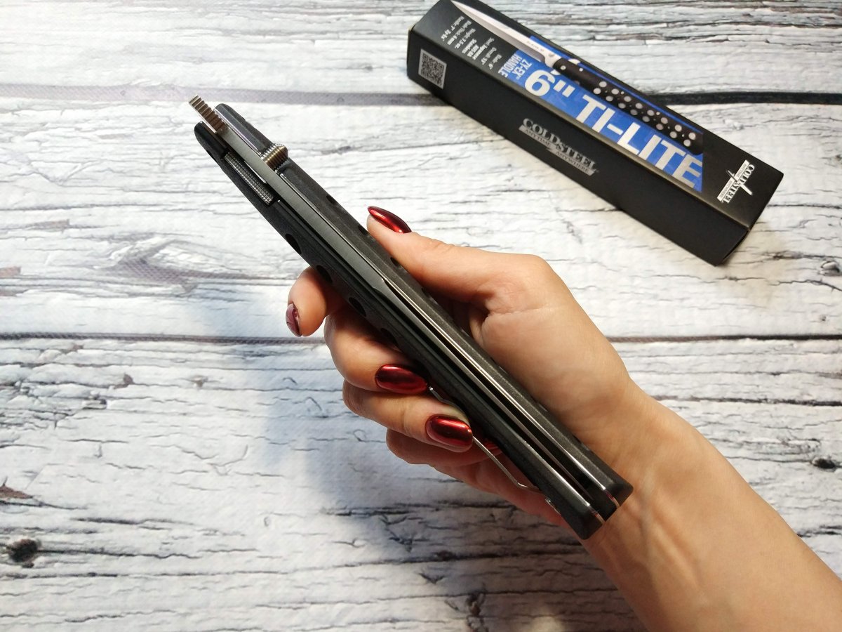 Явара, куботан, тактическая ручка и сложенный Ti Lite - это всё одного поля ягоды. Орудие кулачного боя. Практически цилиндрическая форма, острая выступающая пятка клинка - всё это сделано для обеспечения безопасности владельца в крайне сжатые сроки. Даже в самой крупной руке TiLite VI выступает с обеих сторон кулака, что позволяет нанести несколько, крайне болезненных тычков, даже не открывая нож. Выступающий за кулак фрагмент ножа может помочь быстро освободиться от нежелательного захвата, а в крайней ситуации может помочь разбить автомобильное стекло и выбраться из машины с заклинившими дверьми. Применений у «Ти Лайт» множество.