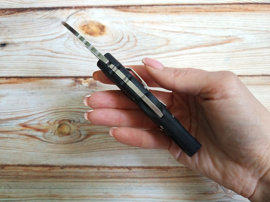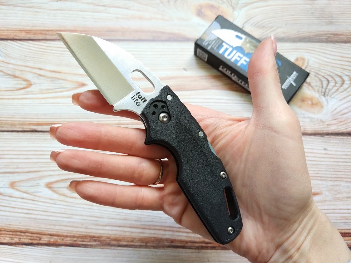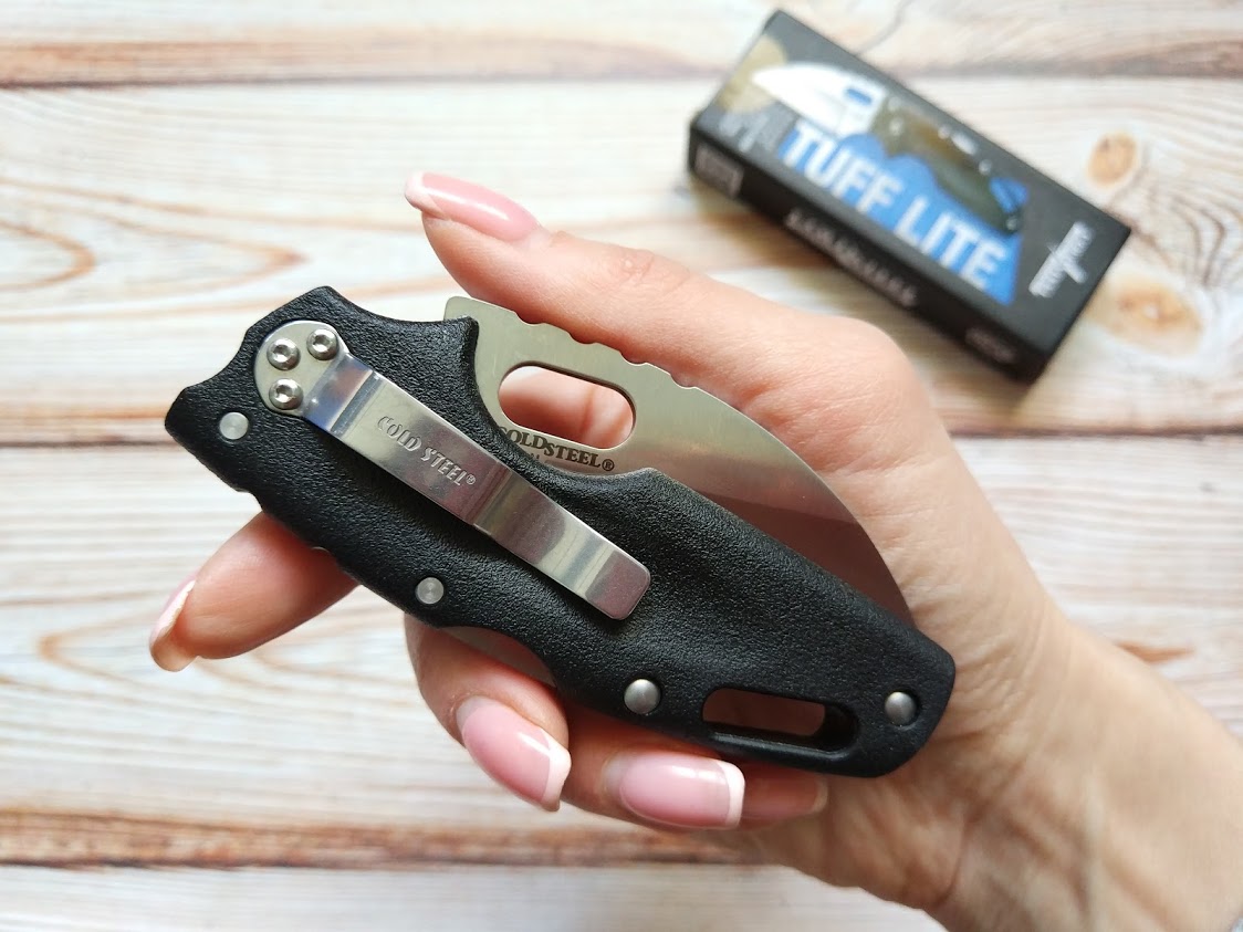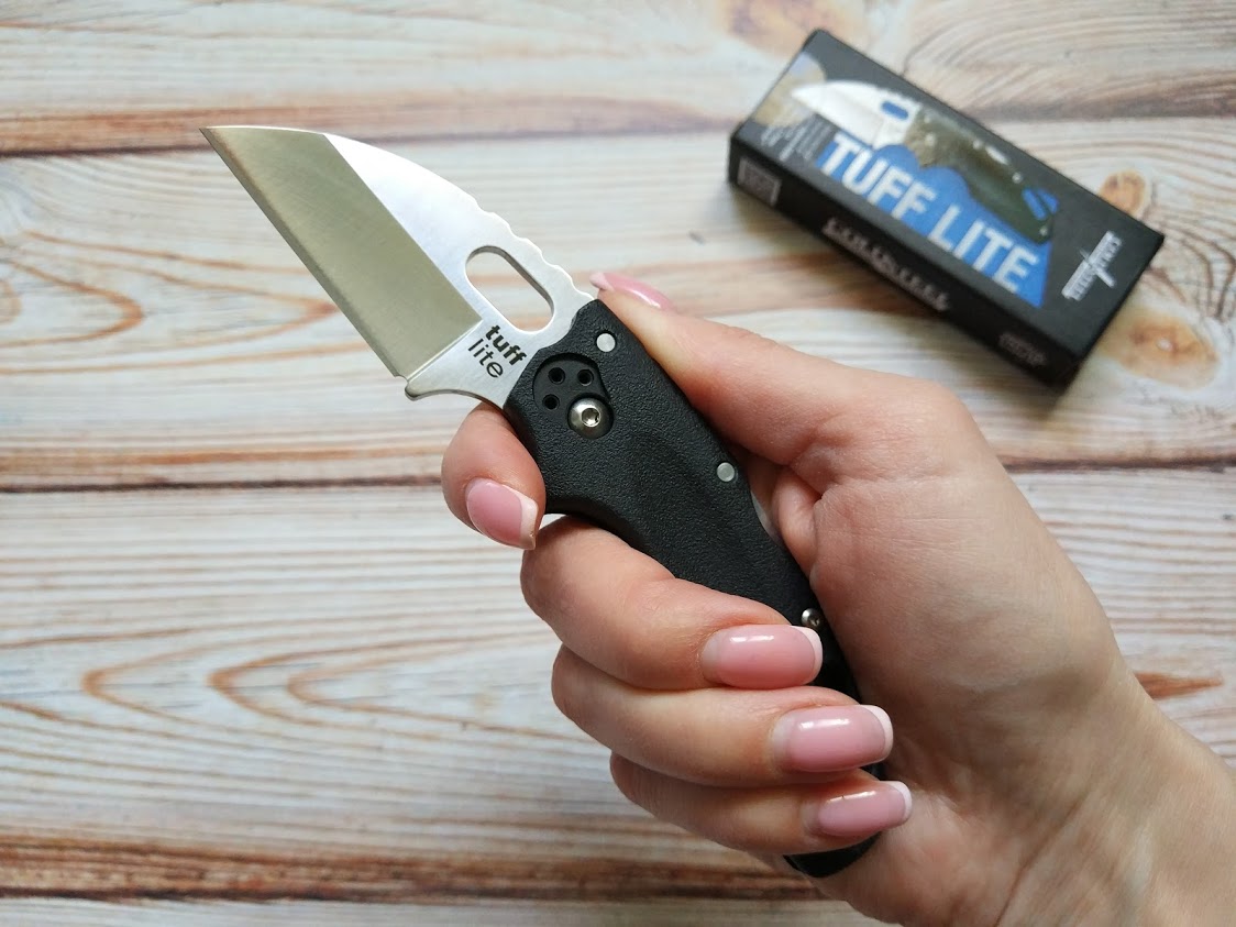 Предлагаю складной нож от компании Cold Steel (Колд Стил). Модель Tuff Lite (20LT). Оригинал. Модель Cold Steel Tuff Lite вполне заслуженно заняла свое место в числе популярных и удавшихся небольших EDC-девайсов. Нож, который сразу понравился огромному количеству пользователей, постоянно пользующихся именно небольшими ножами (в офисе, для разрезания упаковки, выполнения точных резов и иных подобных работ). Также этот нож отлично подойдет человеку, который обычно не пользуется ножом, но хорошо понимает необходимость обладания ним, для решения тех задах, которые могут возникнуть. Причем действительно это нож в первую очередь для реза. В обзорах этой модели Tuff Lite часто называют "бритвой в твоих руках". Клинок ножа Cold Steel Tuff Lite, выполнен из хорошо зарекомендовавшей себя, для выполнения ежедневных работ, японской нержавеющей стали AUS 8A с заявленной твердостью 58 HRC. Клинок изготовлен в промежуточной форме между Wharncliffe blade и Sheepsfoot blade с вогнутыми спусками от середины клинка, которые, можно смело назвать высокими. При таких спусках и толщине клинка в 2,8 мм, на режущей кромке формируется сведение толщиной 0,5 мм. Учитывая, что РК имеет форму прямой линии, становится понятно, что кончик клинка является довольно деликатным и не предназначен для «тяжелых» работ. Однако, из-за формы клинка, этот кончик способен успешно выполнять тонкие и точные работы. Клинок имеет вполне нормальную для EDC-ножа длину, но следует учесть, что часть его длины "съедает" «полу-чойл», формирующий из небольшой рукояти - комфортную полноразмерную рукоять. Тем не менее, учитывая задачи, для которых был разработан Cold Steel Tuff Lite это вполне достаточная длина. Комфортному выполнению работ способствует отличный обух, снабженный крупными неагрессивными насечками и позволяющий удобно располагать на нем большой палец. Извлекается клинок при помощи оригинального продолговатого отверстия, что позволяет открыть нож даже рукой в перчатке. Рукоять закрытого типа состоит из двух плашек из полимера Griv-Ex. При своей небольшой длине рукоять поразительно комфортна. В первую очередь это объясняется наличием чойла (частично сформированного формой клинка, частично формой рукояти), «виртуально» удлиняющим рукоять и обеспечивающим комфортное расположение на рукояти всех пальцев руки. Плашки имеют мелкое и слегка шероховатое текстурирование, пару продольных выборок и безупречное скругление по краям, что в комплексе обеспечивает ладони великолепные тактильные ощущения и максимальное удобство рабочих хватов. Tuff Lite комплектуется съемной, переставляемой на две стороны в положение tip-down клипсой (в меру жесткая она находится над небольшой выборкой на плашках, что позволяет легко сажать нож на карман). На рукояти так же имеется крупное продолговатое темлячное отверстие, выполненное в стиле отверстия на клинке. Замок используемый на ноже - уже известный Tri-Ad® Lock, надежность которого не вызывает сомнений, а в этой модели наверно даже слегка излишняя (но тем не менее приятно понимать, что у тебя в руке пусть и не большой нож, но с отличнейшим запасом прочности и надежности). На мой взгляд, Cold Steel Tuff Lite - крайне удачный, как в области функционала, так и по своей комфортности в работе и ношении, небольшой EDC-нож, выбираемый для специально обозначенных задач, либо совершенно необременительный запасной нож или «девайс на всякий 